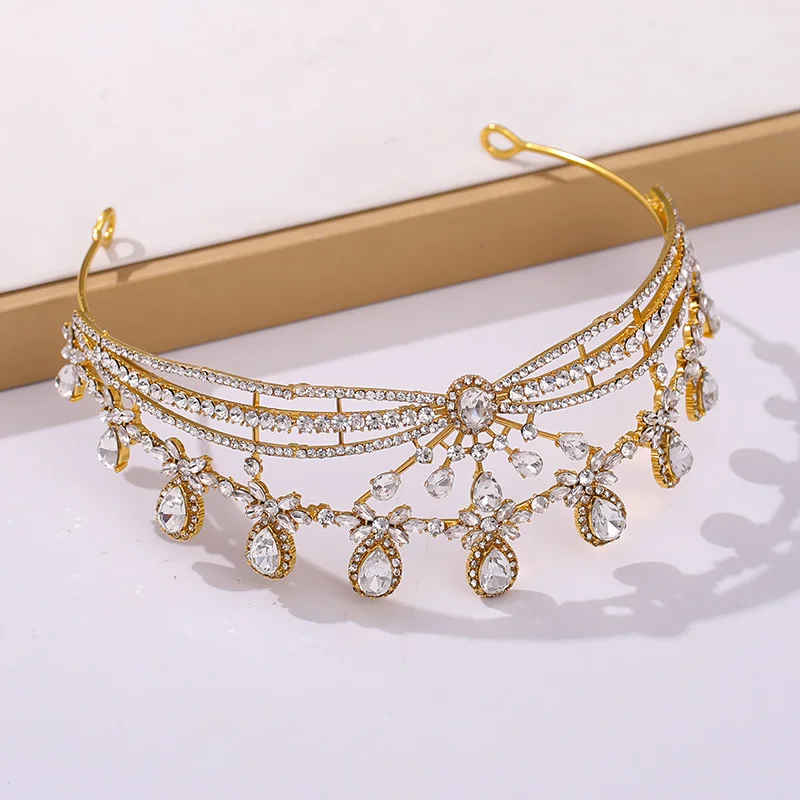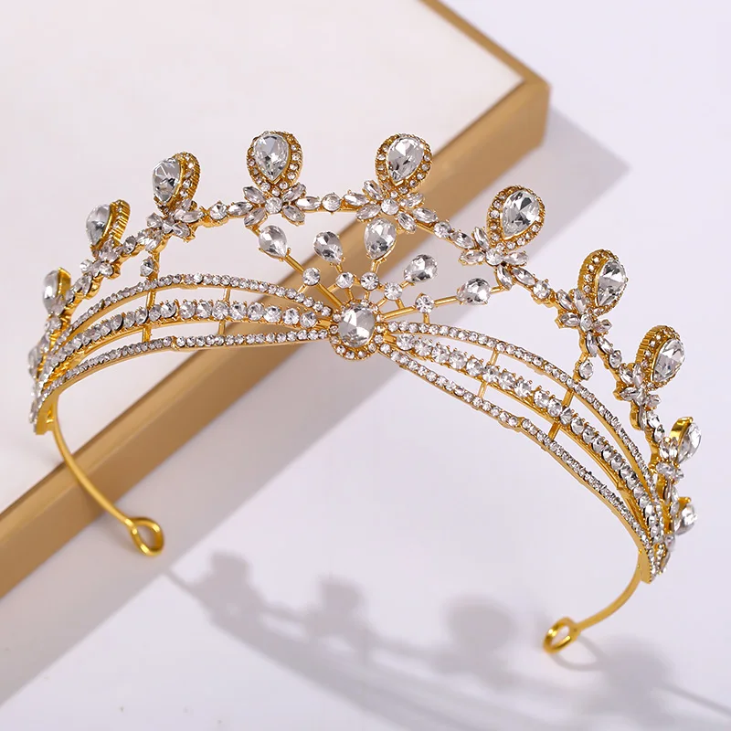 Golden Crown Decoration Headpiece Crystal Bride To Be Tiara Bridal Tiaras