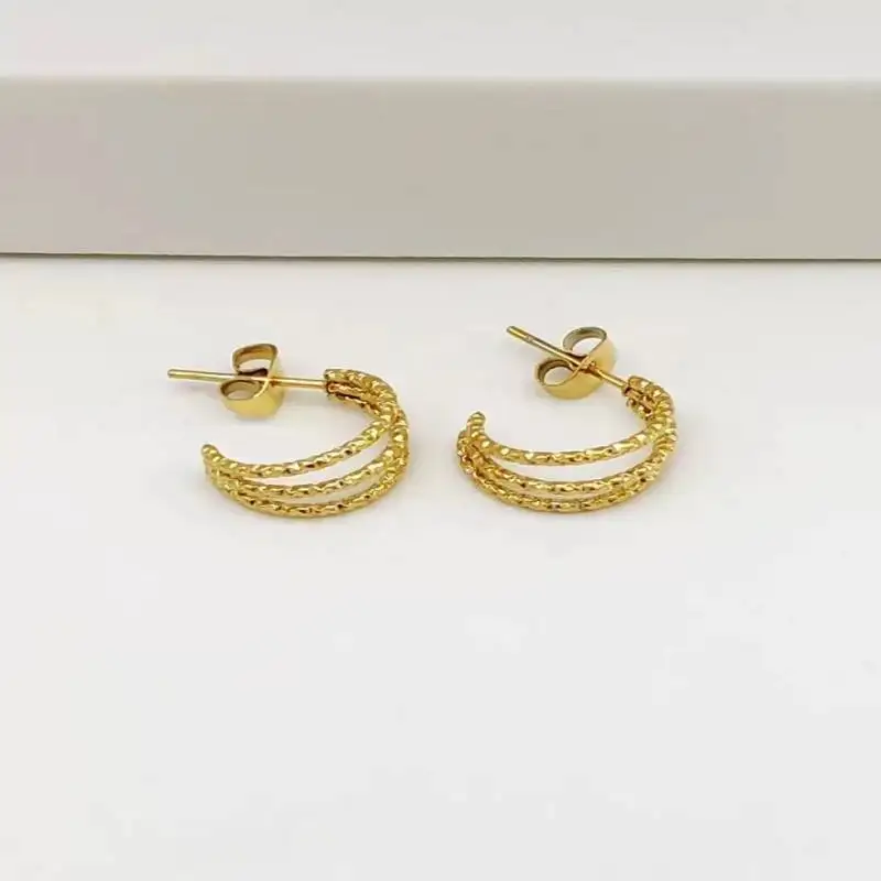 Golden Round Drop Hoop Earring for Women Alloy Three-layer Semiarc Studs Earrings Circle Ear Accessories
