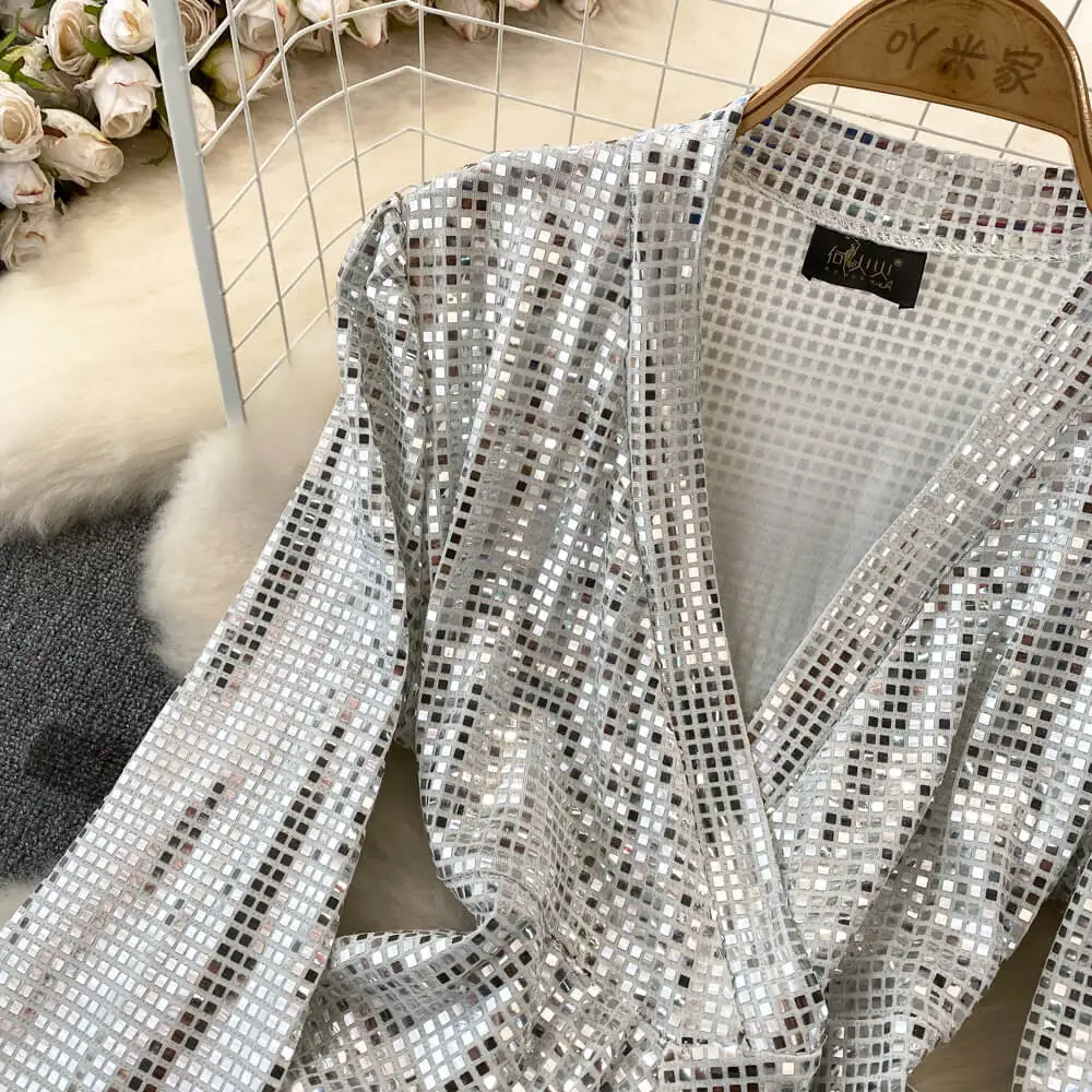 Good Quality Wholesale Women's Party Wear Shirt Dress Bandage Sequin Glitter Shirts For Female