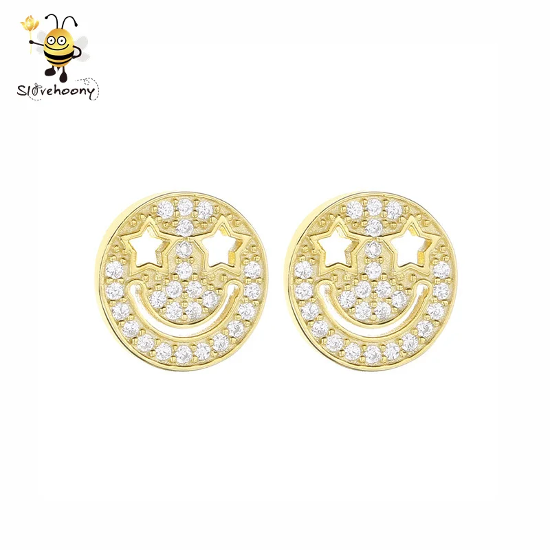 Good Quantity 18k Gold Plated 925 Silver Earring Smile Happy Symbol Earring Jewellery With Star Ear Party Jewelry Brincos