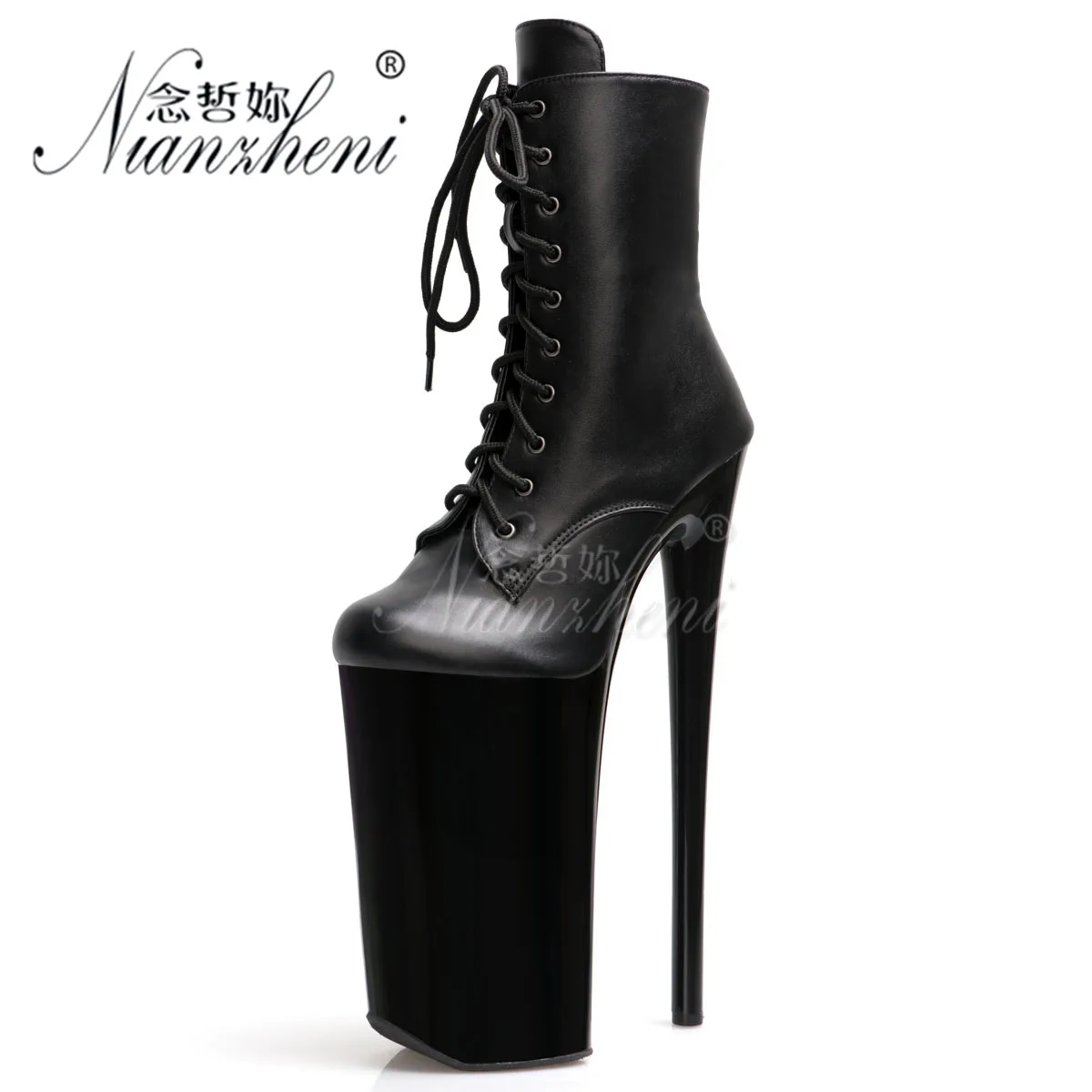 Gothic 26cm Patent Leather Low Tube Sexy Fetish Shoes Lace Up Black Exotic Dancer Boots Cross Dressing Pole Dance Shoes Classics