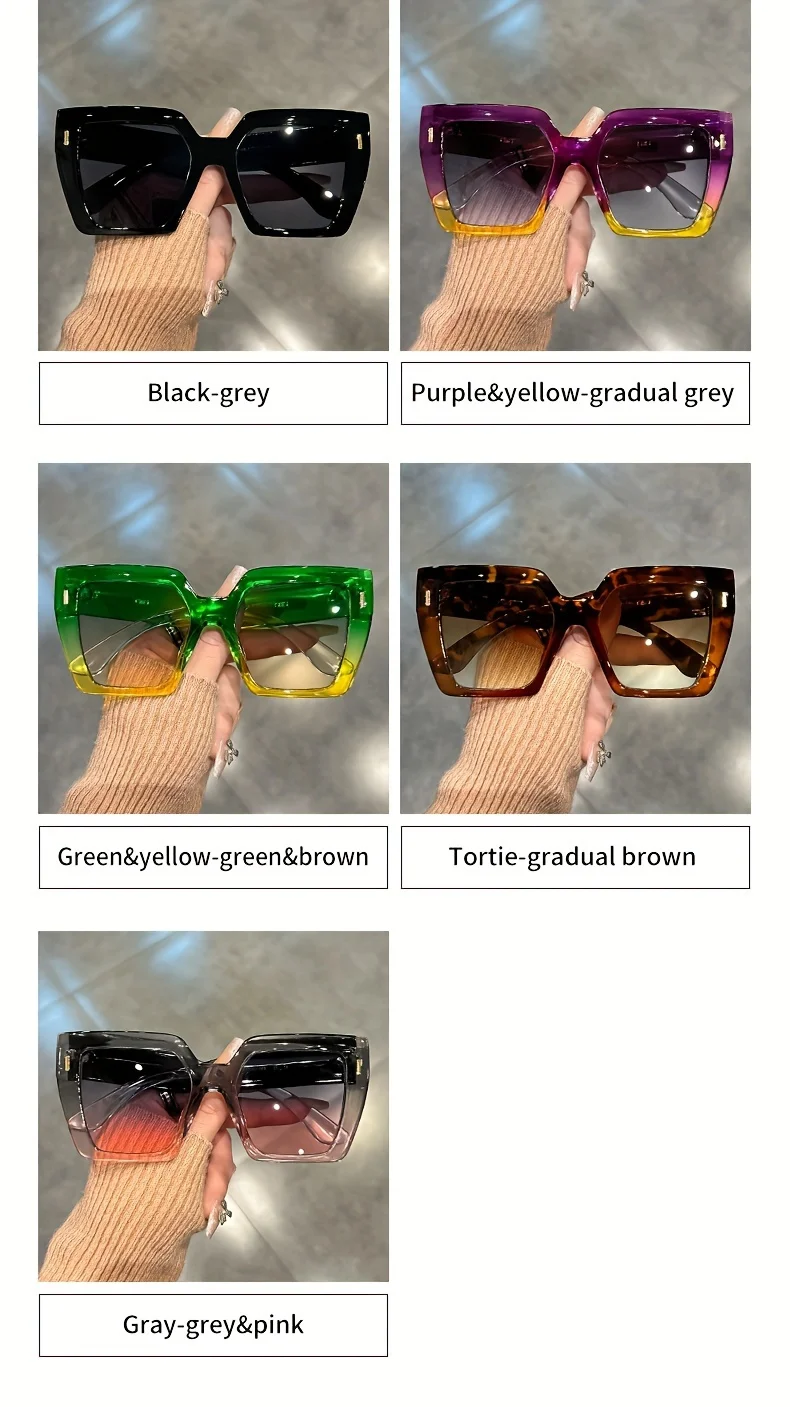 Gradient Fashion Sunglasses Large Square Rectangle Frame Anti-Reflective Lens Sport Eyewear Summer Beach Party Accessory