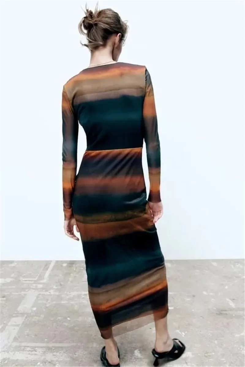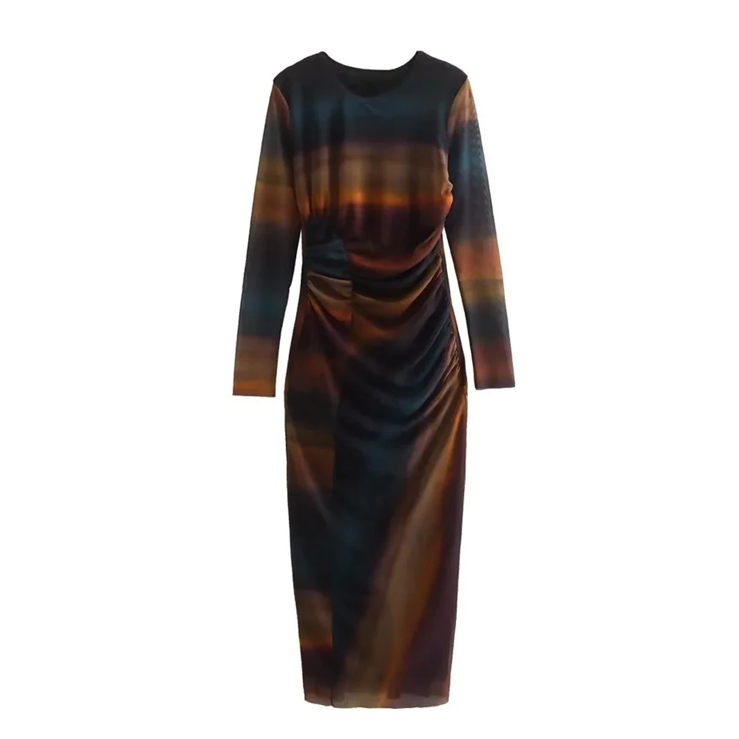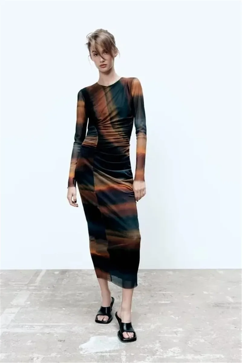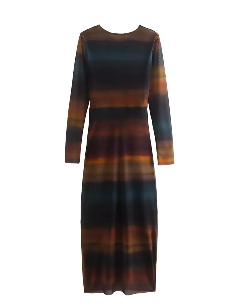 Graphic Printed Mesh Bodycon Dress Sexy Long Dress Party Club Streetwear Vacation Vintage Women Wholesale Outfit