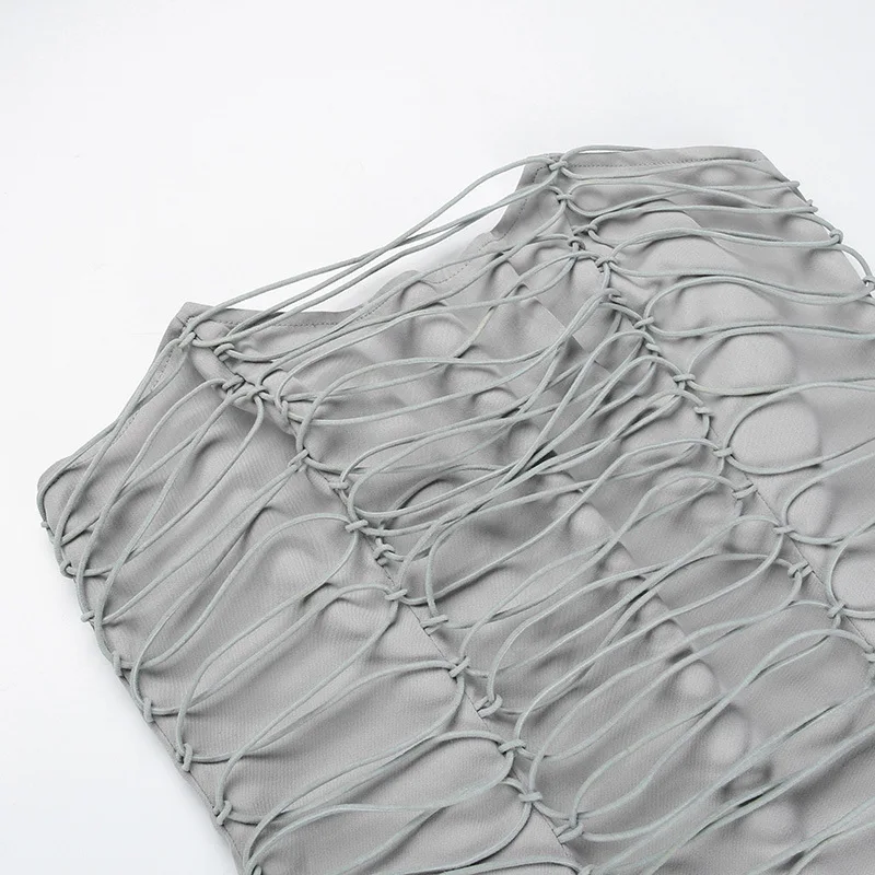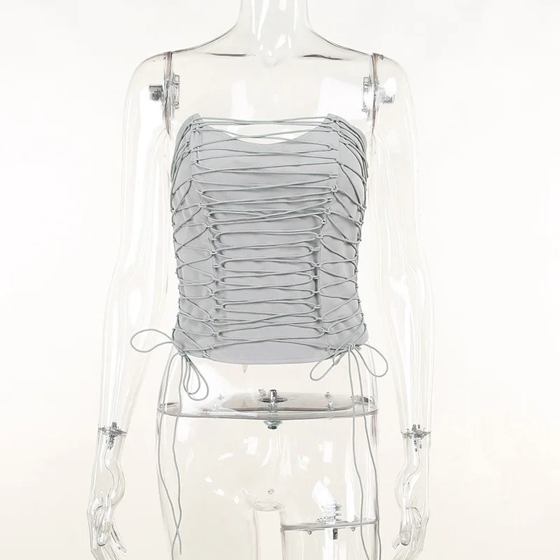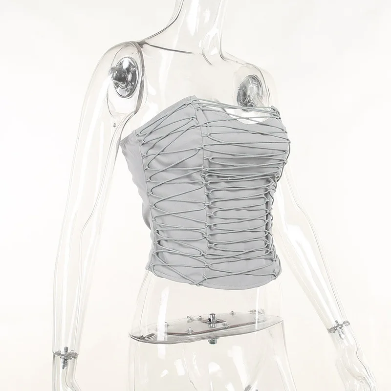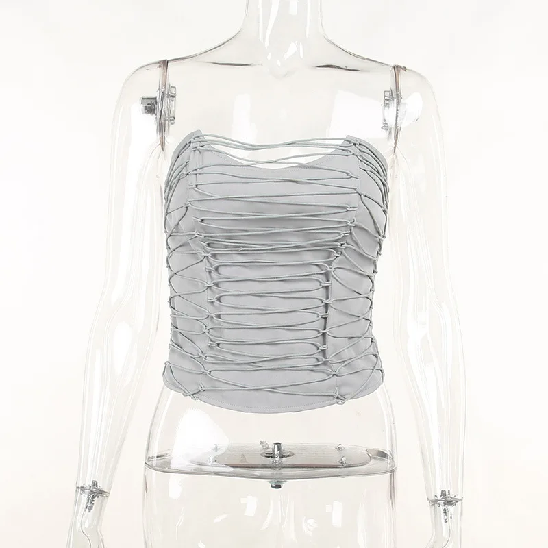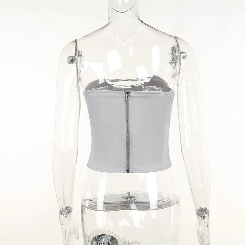 Gray Hollow Sexy Tank Tops Ladies Undershirt Zipper Strapless Crop Tops Women's Fashion Beauty Grey Corset Tops for Women