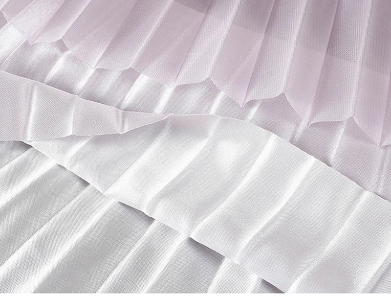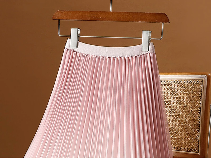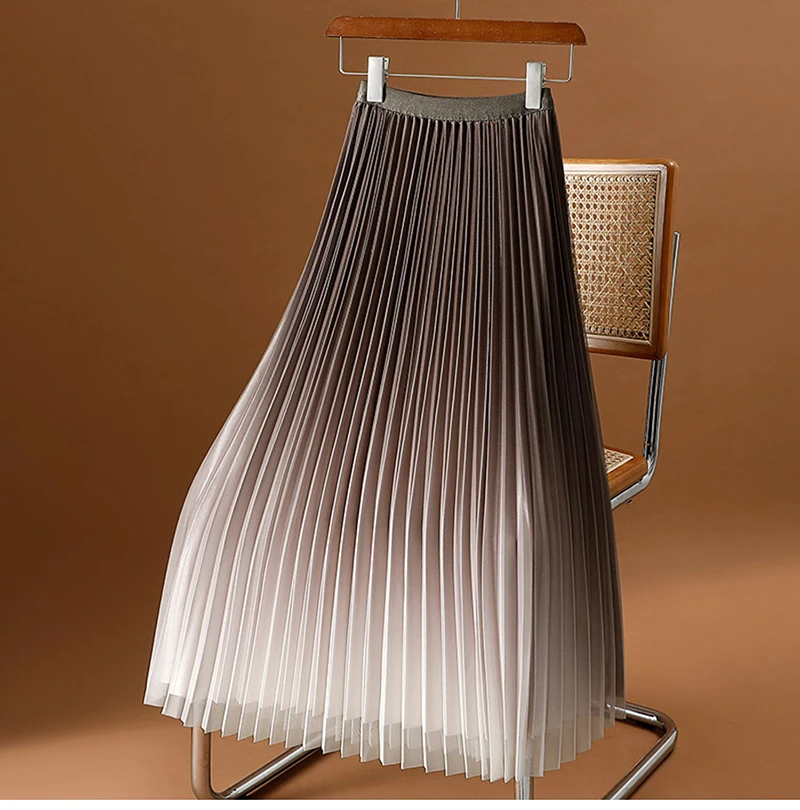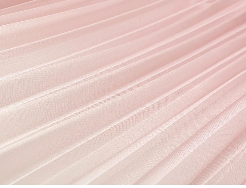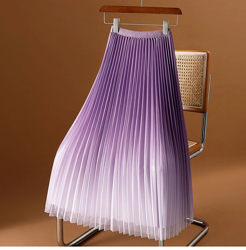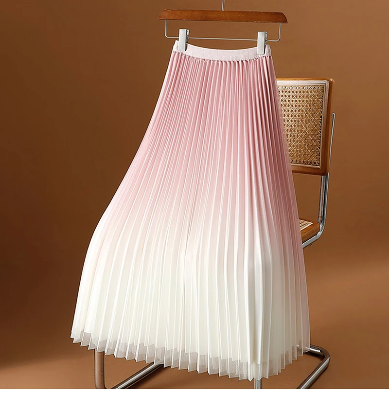 Green Luxury Elegant Korean Skirts for Ladies Chic Gradient Mesh Pleated Mid-Length Skirt Women Elastic Waist Tulle Skirts Pink