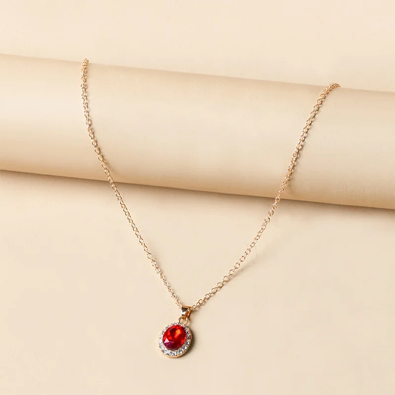 Green Red Crystal Pendant Necklace Gold Plated Fine Jewelry Gemstone Necklace Women Personalized Necklace