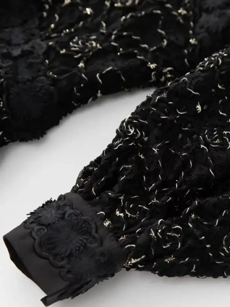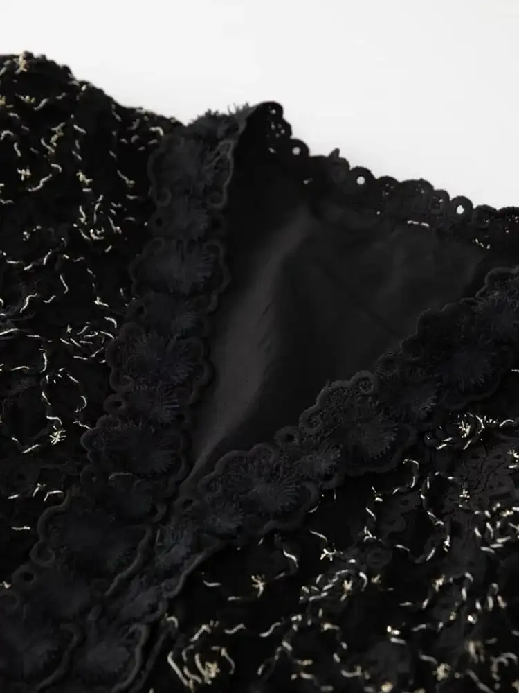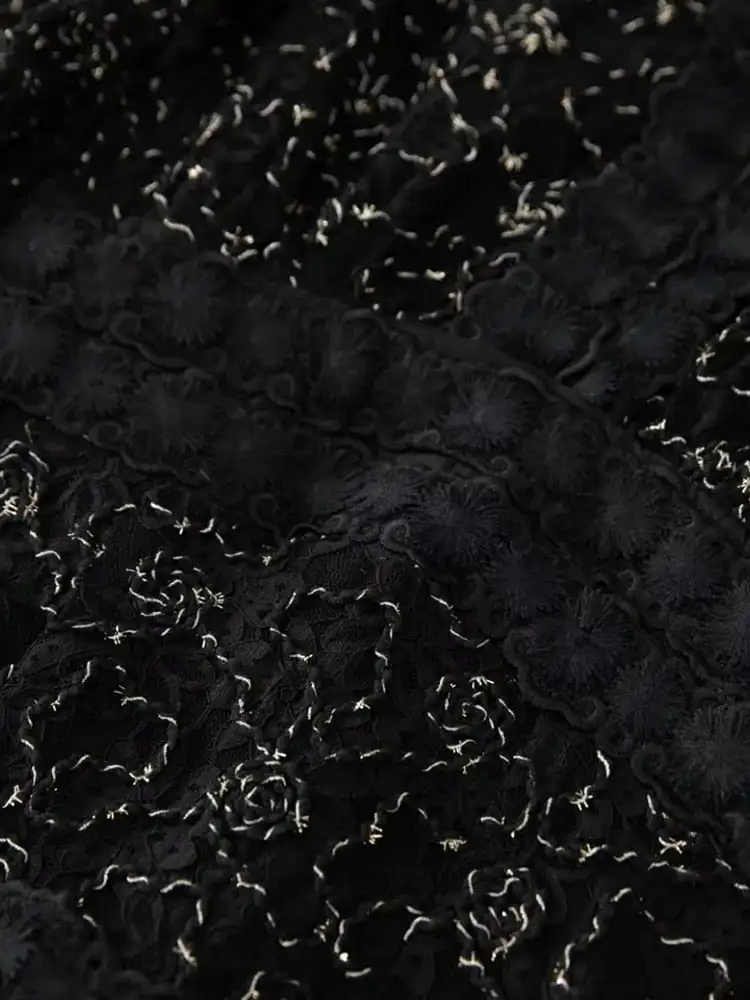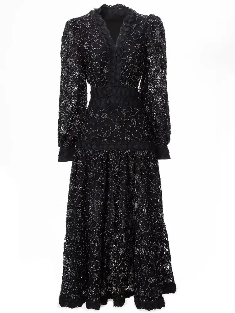 Guangzhou Bettergirl Fashion 2023 Long Lace Hollow Out Golden Thread Embroidery Elegant Dresses Women Black Long Dress