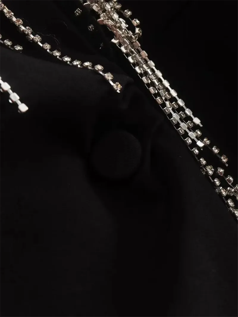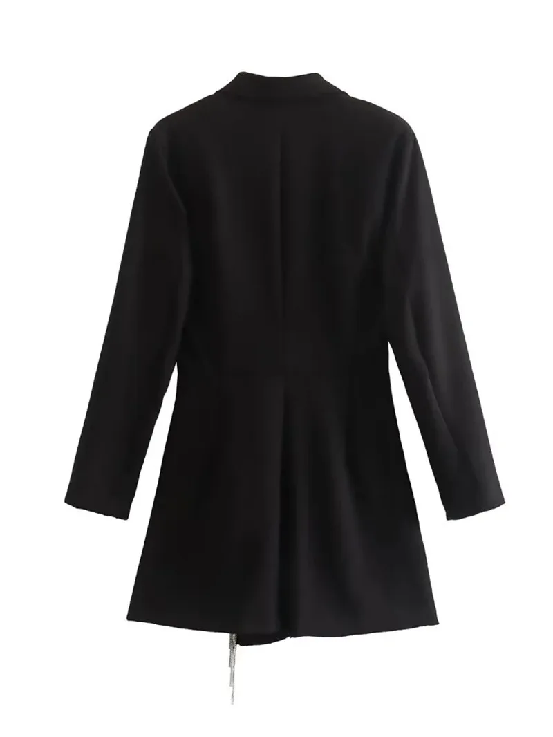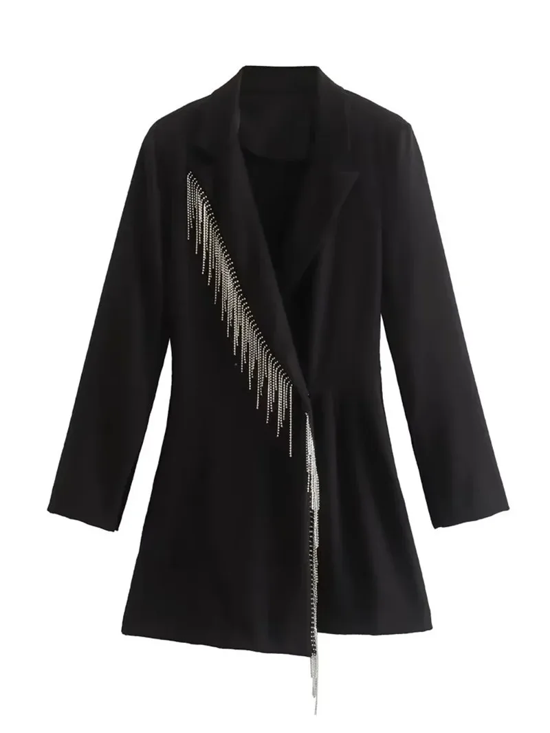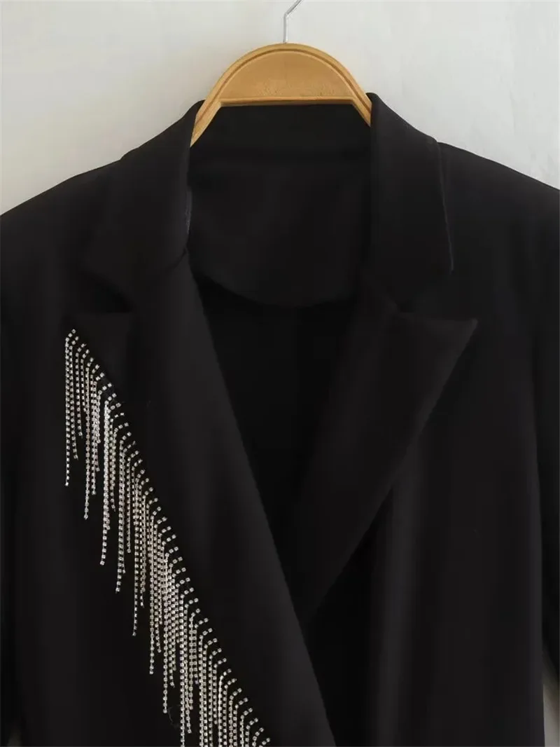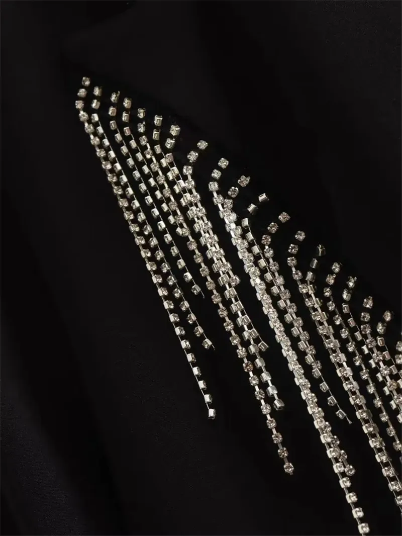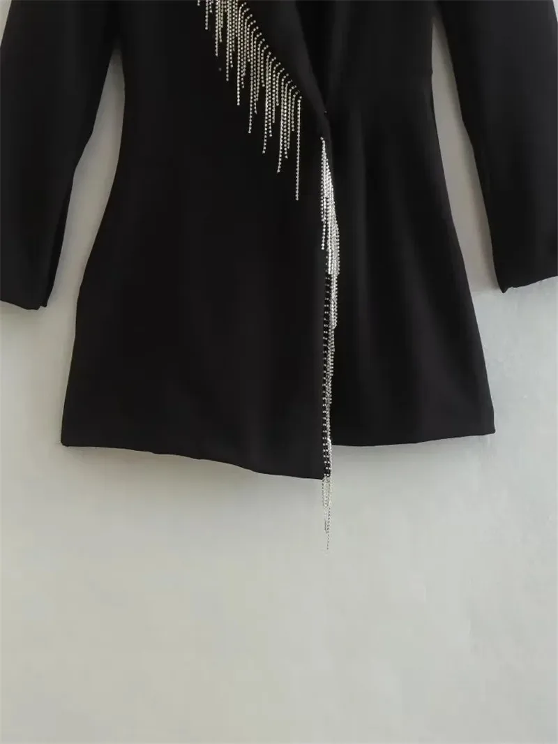 GX01M99 Fashion 2023 New Casual Style Lapel Long Sleeve Diamonds Tassel Black Bodysuit One Piece Women Romper and Jumpsuit