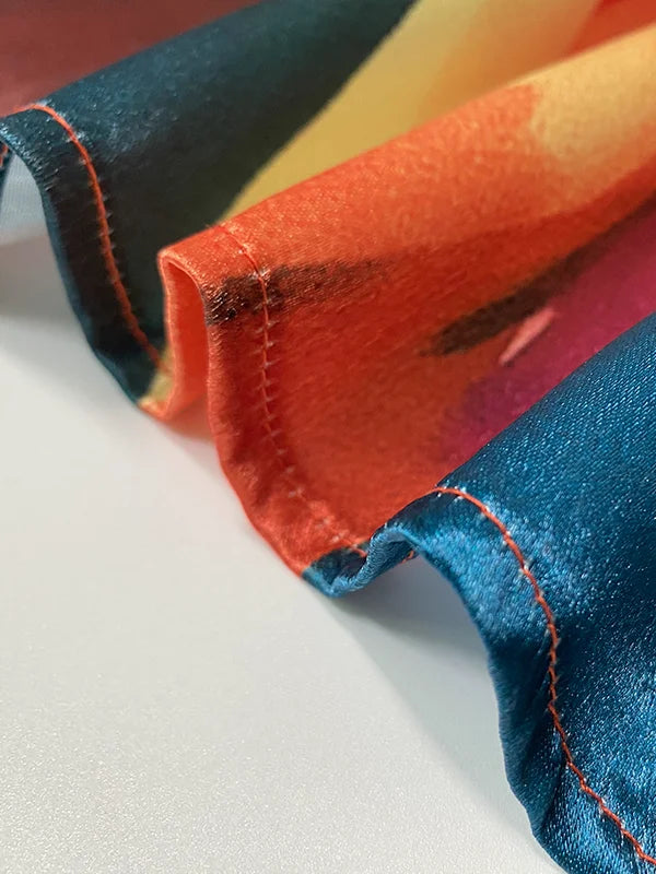 Gymystars Elegant Party Dresses Flower Print Maxi Dress Fashion Loose Puff Sleeves Split-Front Casual Red Evening Dress Ladies