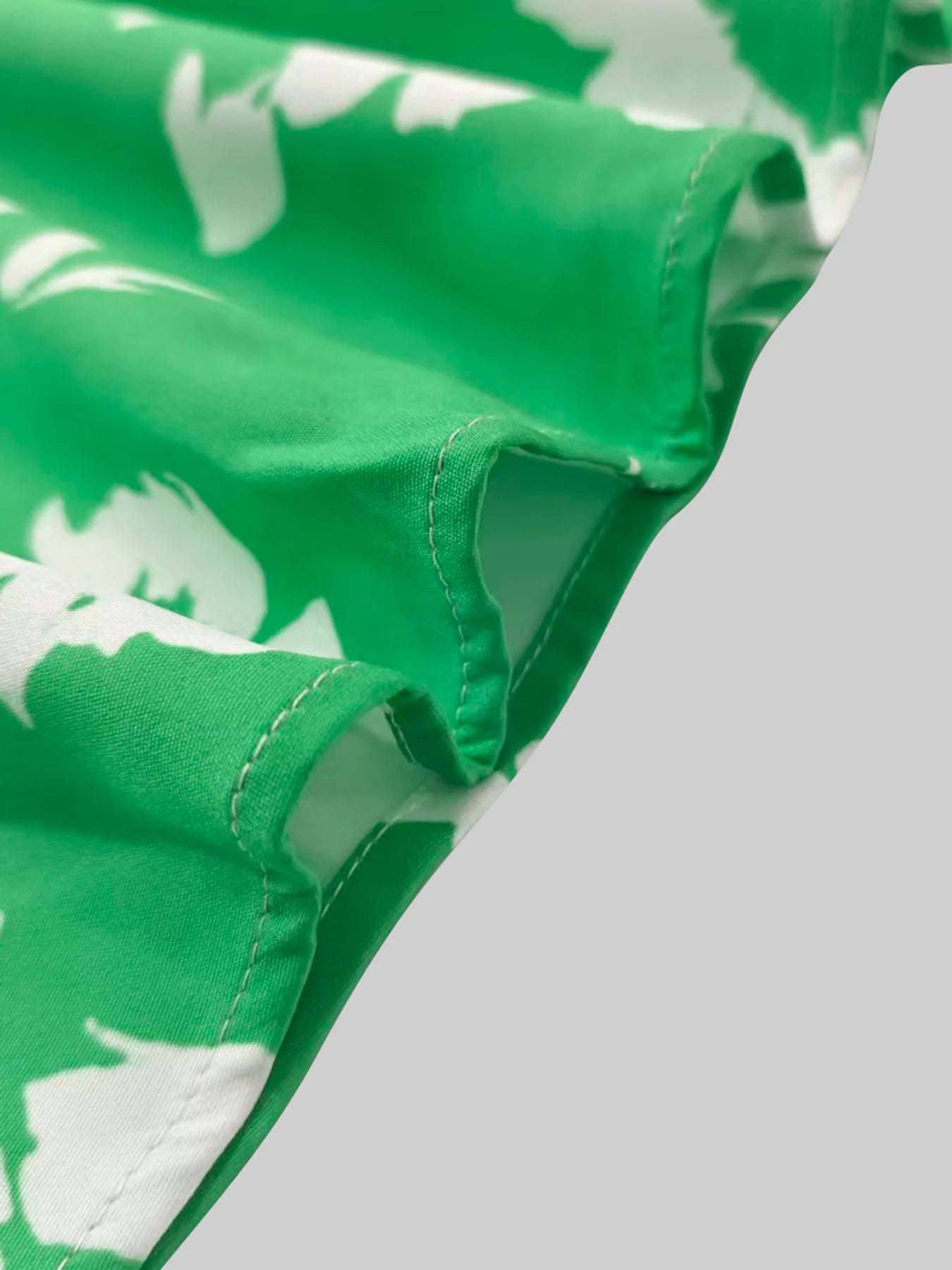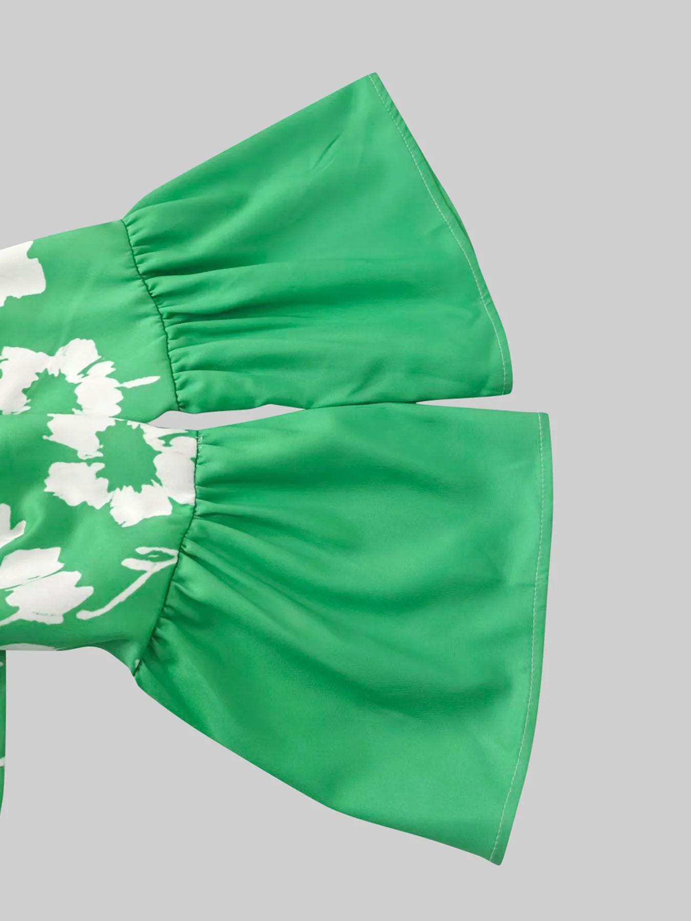 Gymystars Elegant Party Dresses V-Neck Maxi Dresses for Women Fashion Flared Sleeves Flower Print Casual Vacation Green Dresses