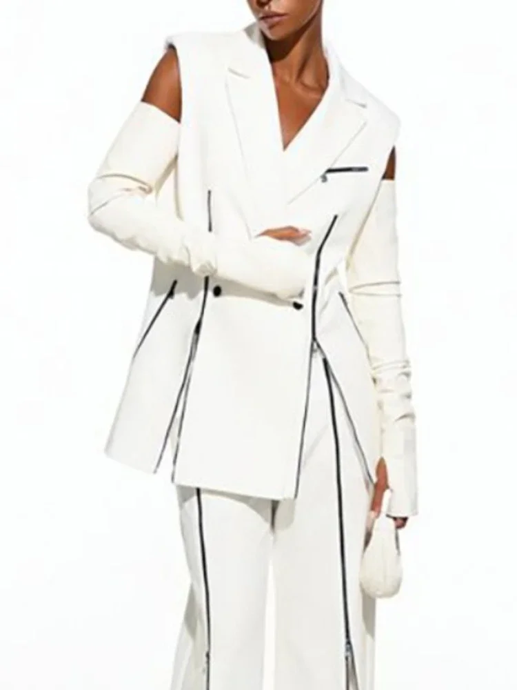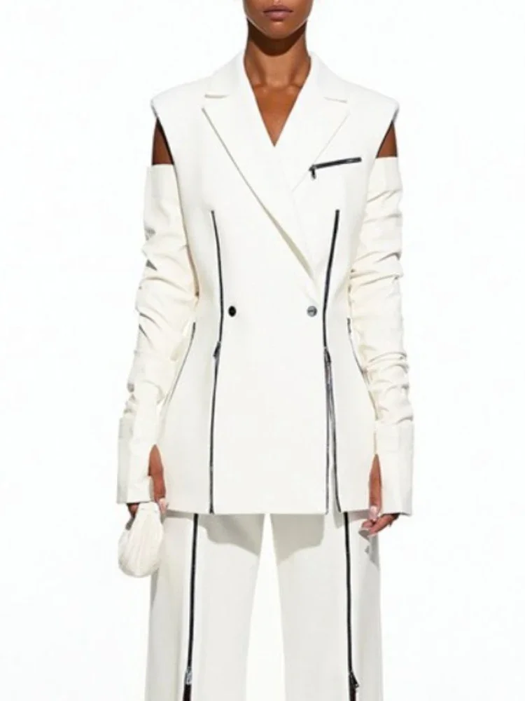 Gymystars New Women's White Suit Vest Top Sleeveless Suit Vest Coat for Women Vintage Shoulder Pad Zipper Casual Blazer Outwear