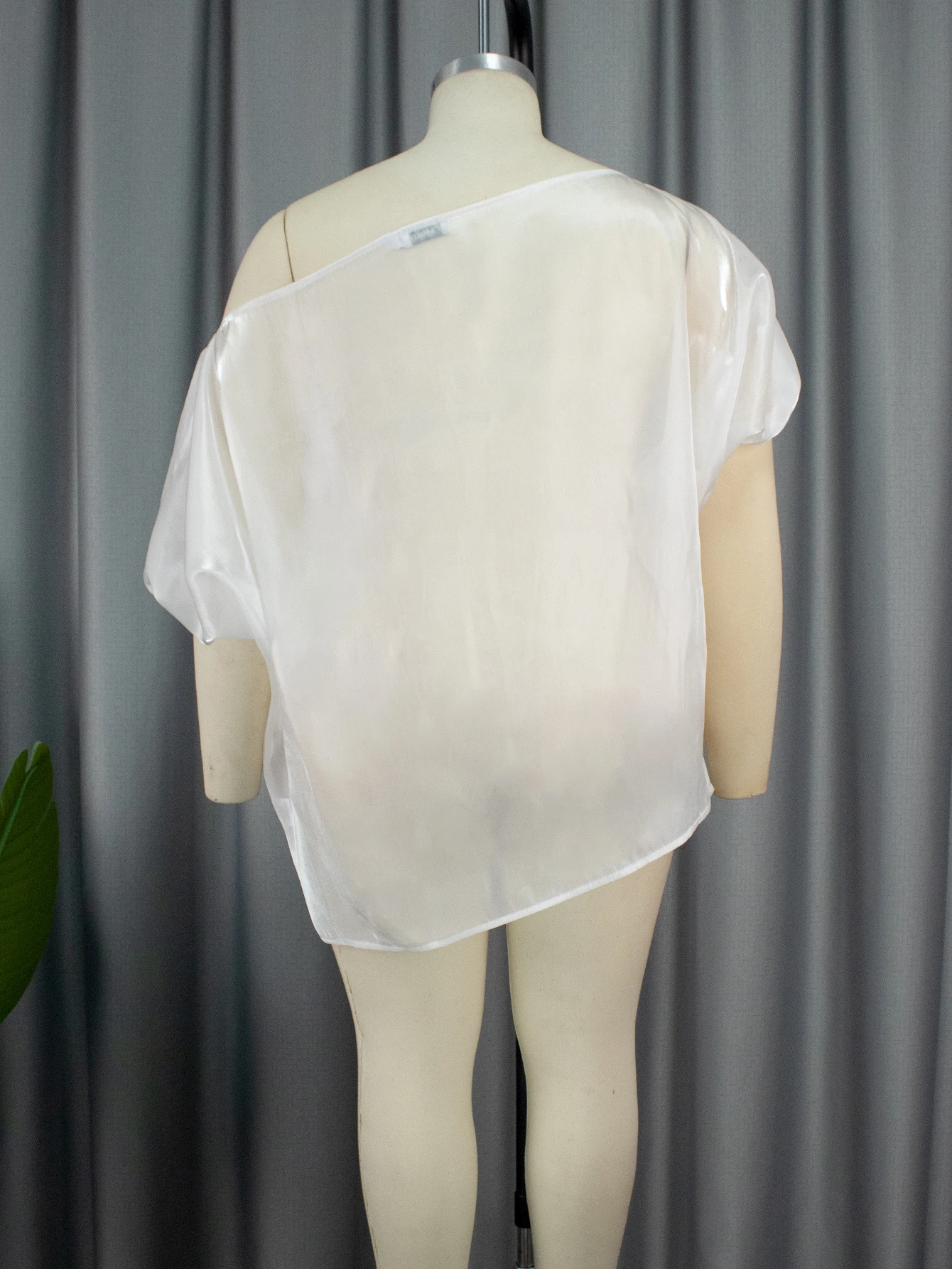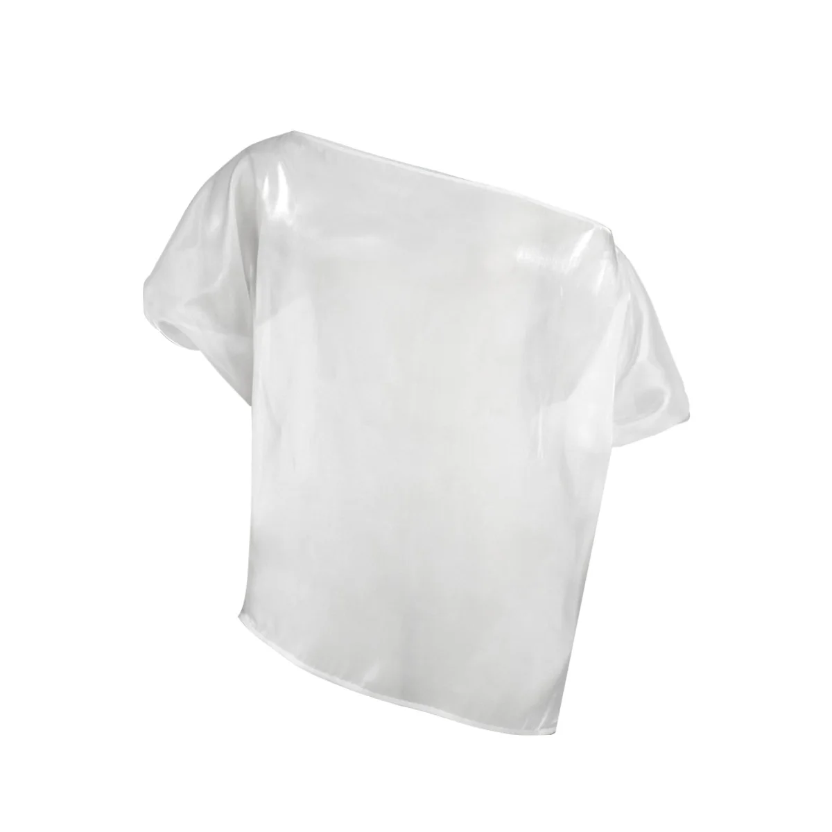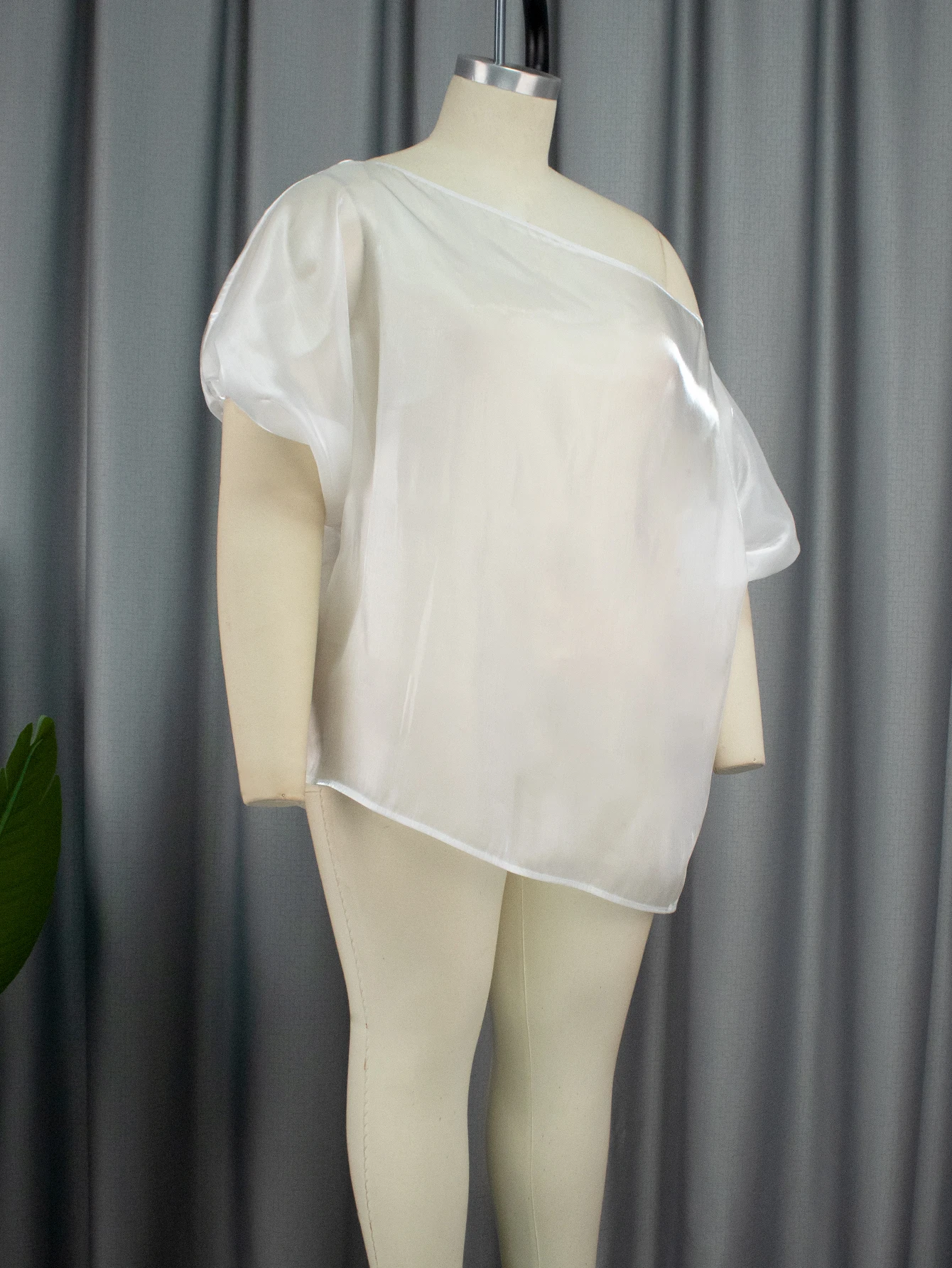 Producrt Name:Half Sleeve Fall See Through AOMEI Skew Collar Women Cute Satin Shirts