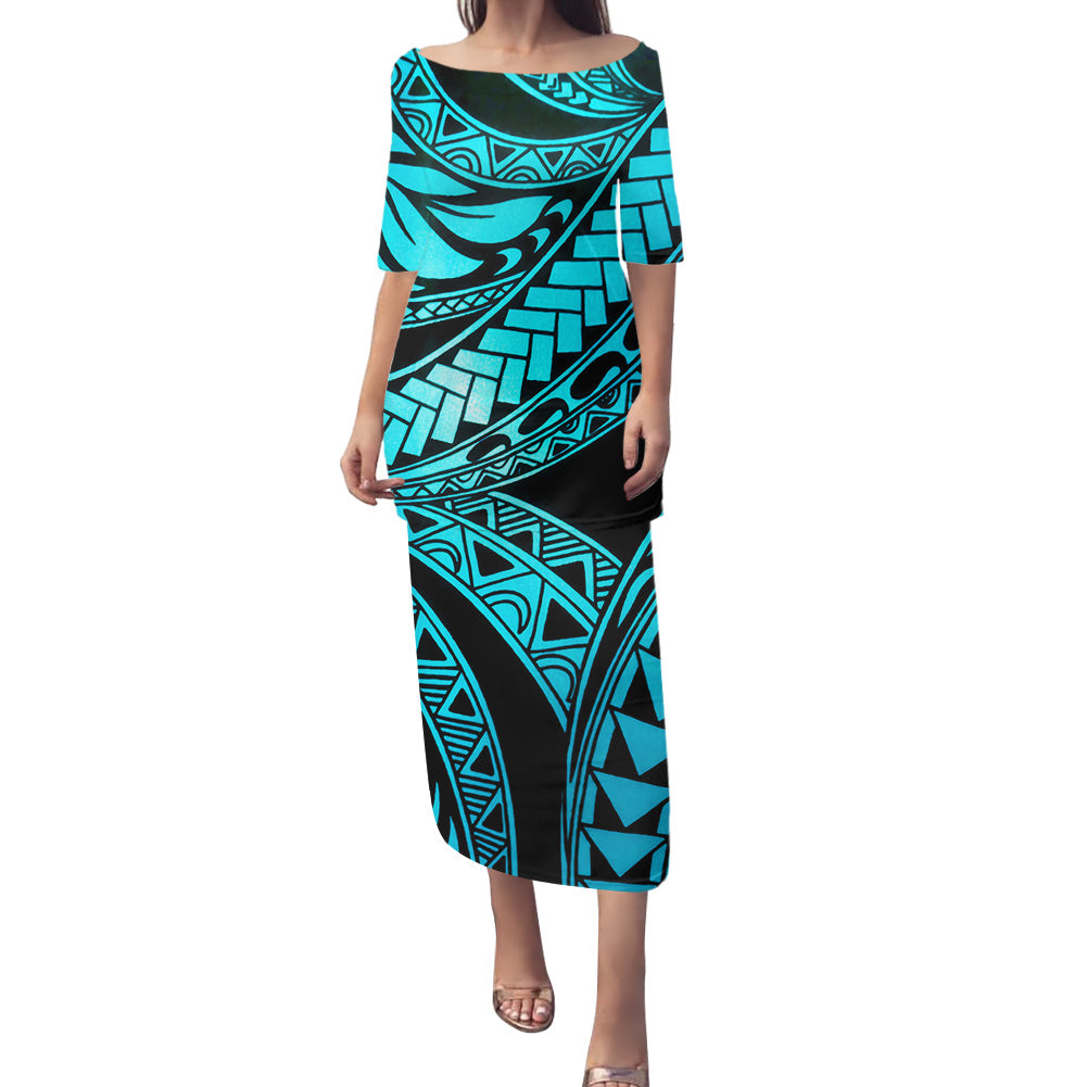 Half Sleeve Top Skirt Two Piece Set Polynesian Samoa Tribal Puletasi Tatau Causal Dresses Plus Size Women Clothing mermaid dress