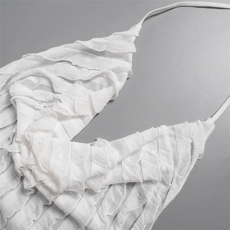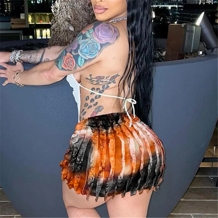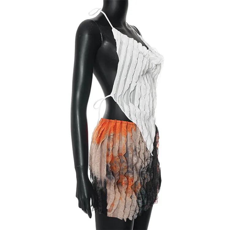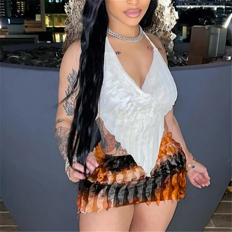 Halter Strap Backless Belly Pocket Mini Straight Pleated Cow Blinds Skirt Set Spicy Girls Sexy Party Dress 2Pcs