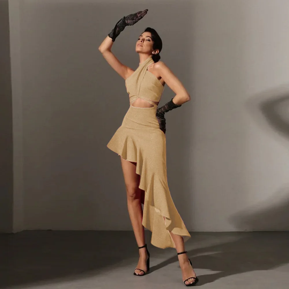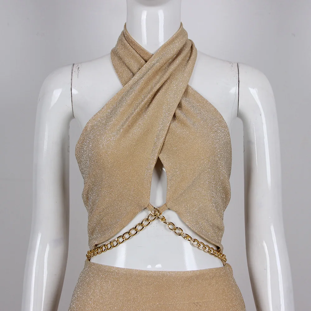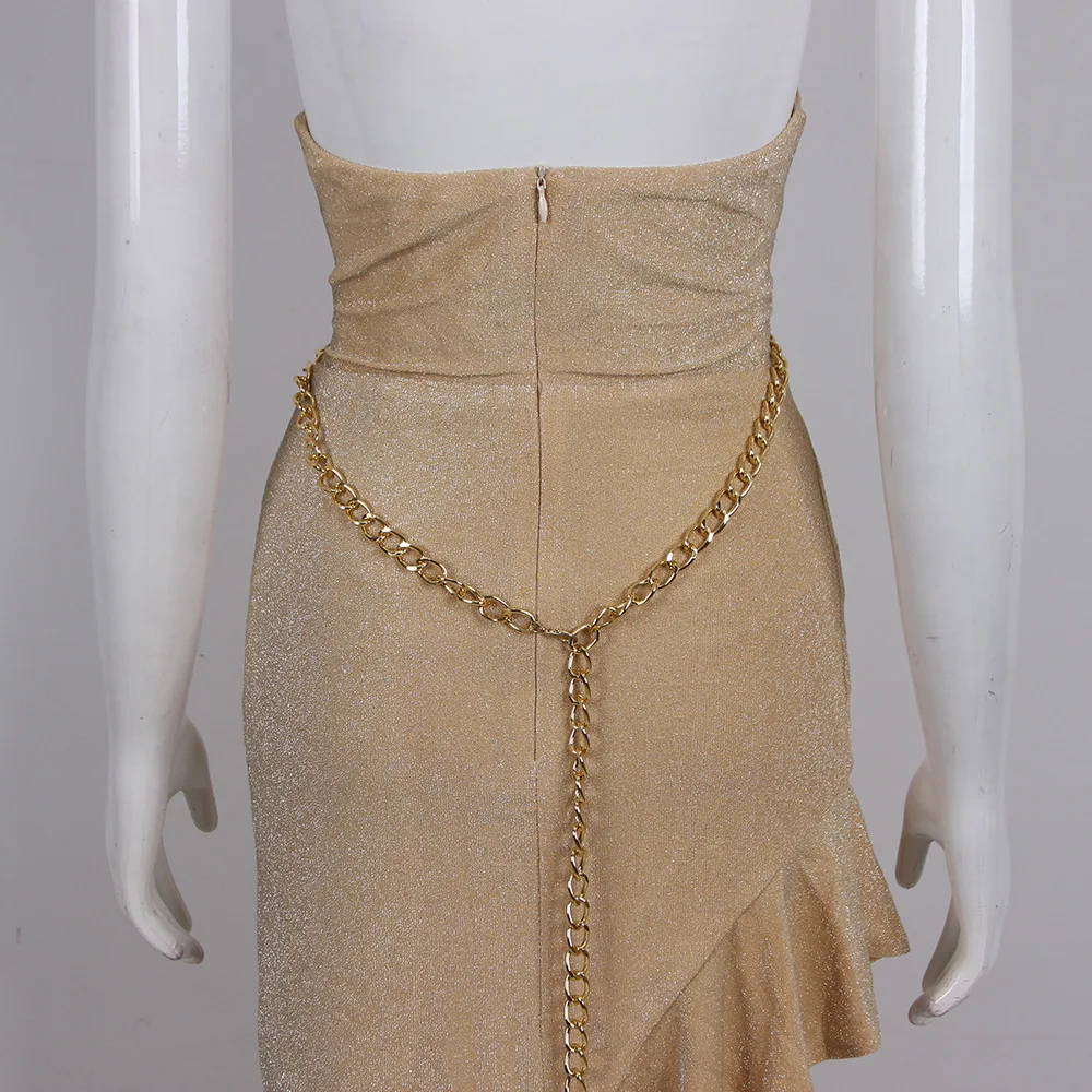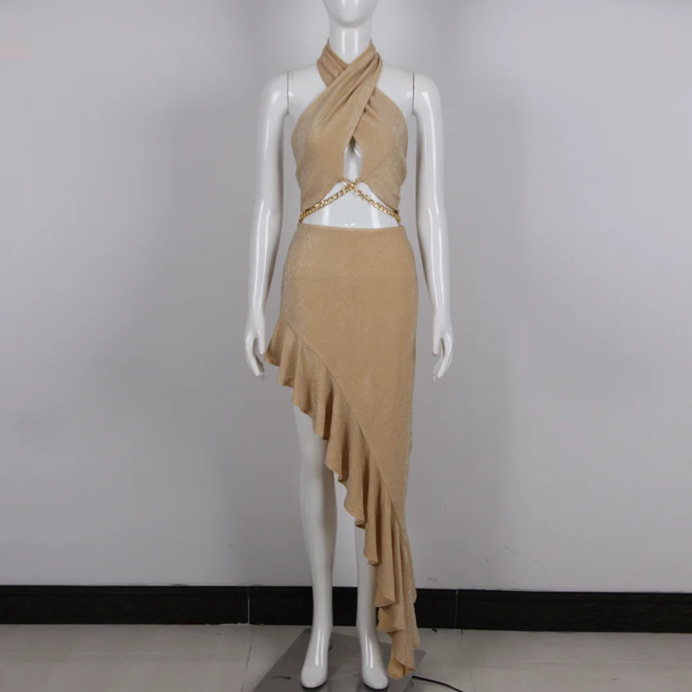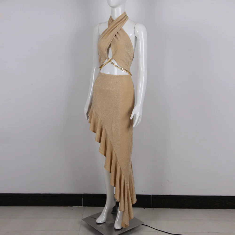 Halter Woman Dress Sexy Backless New Style Summer Ruffles Wrap Hip Long Vestidos Fashion Party Irregular Chain Evening Dresses