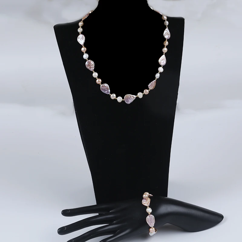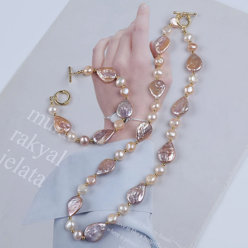 Handmade 18k gold plated drop shape freshwater pearl beads women jewelry set