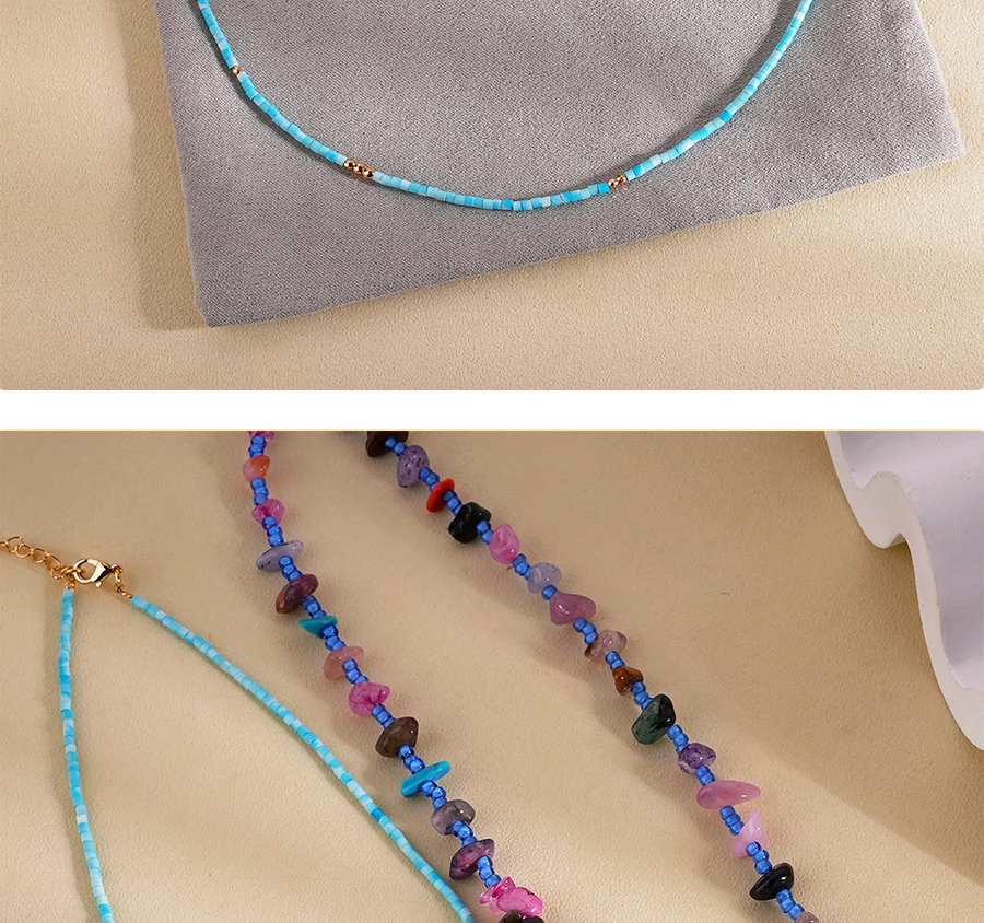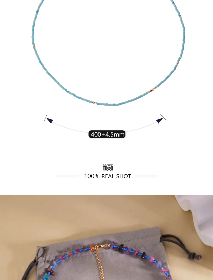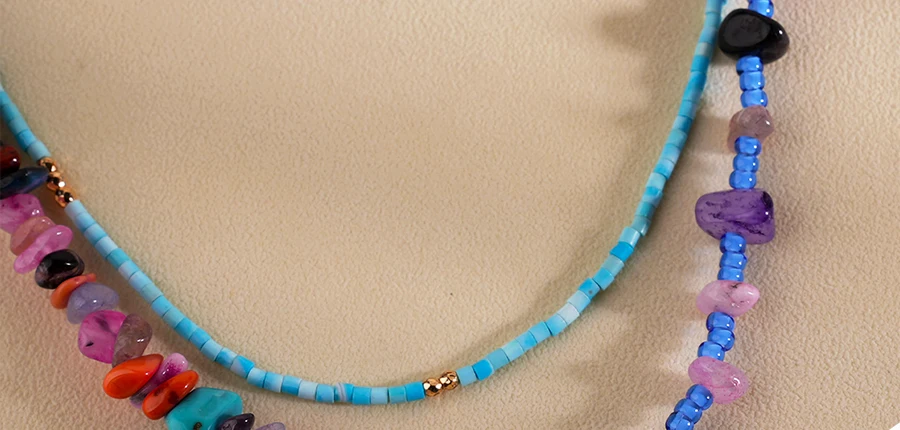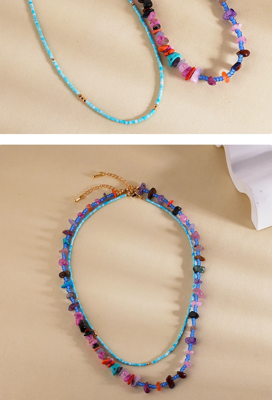 handmade colorful bohemian layers glass seed beads plastic beads stone chips beads charm multiple 2 layered necklace jewelry