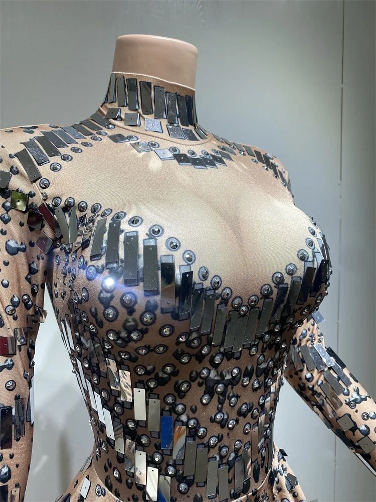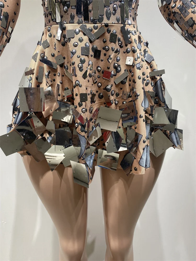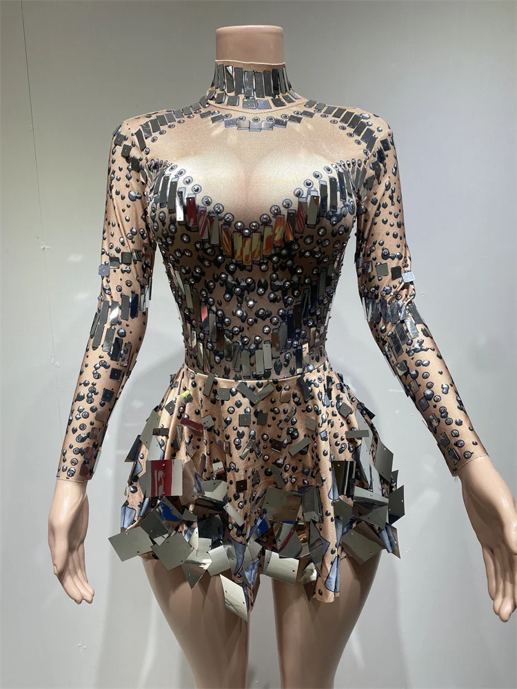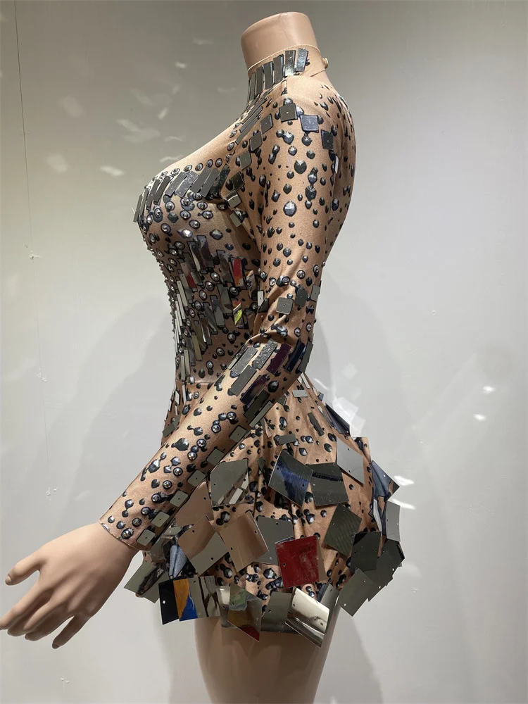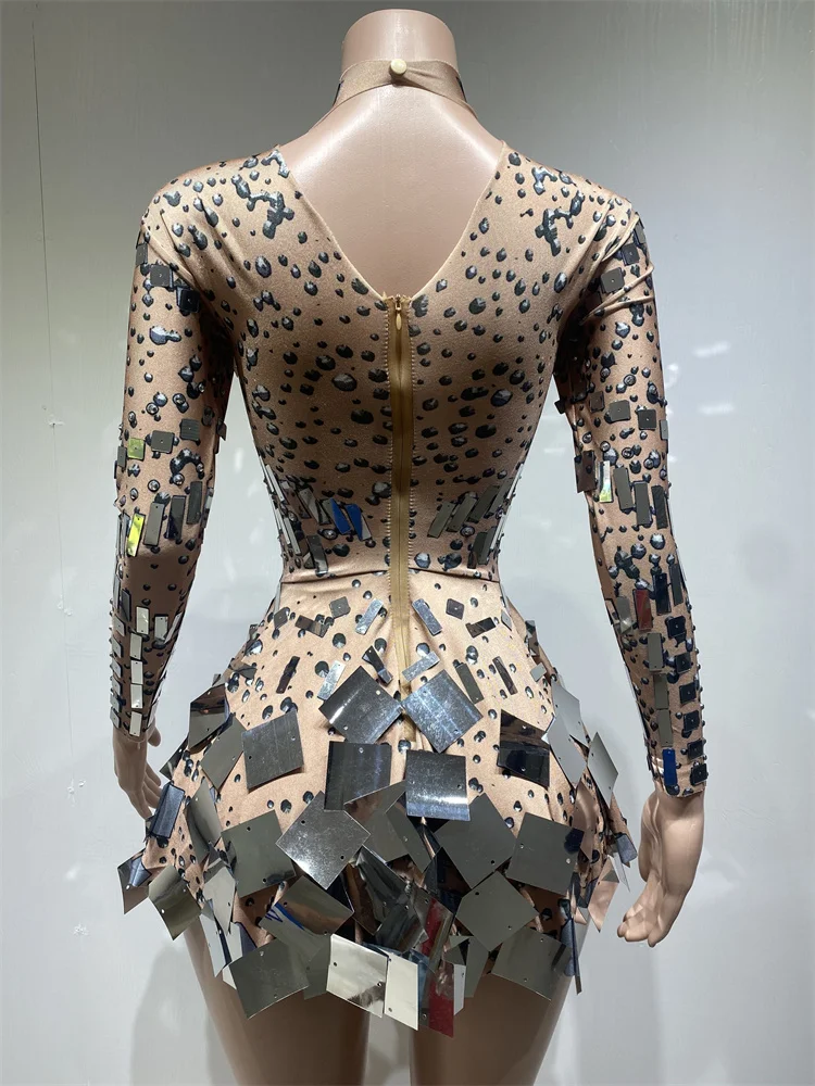 Handmade Sparkling Sequin Bling Dress Festival Long Sleeve Slimming Performance Wear Party Night Club Dress