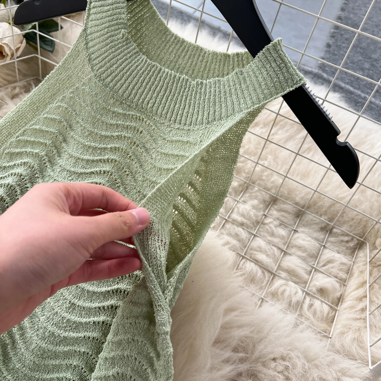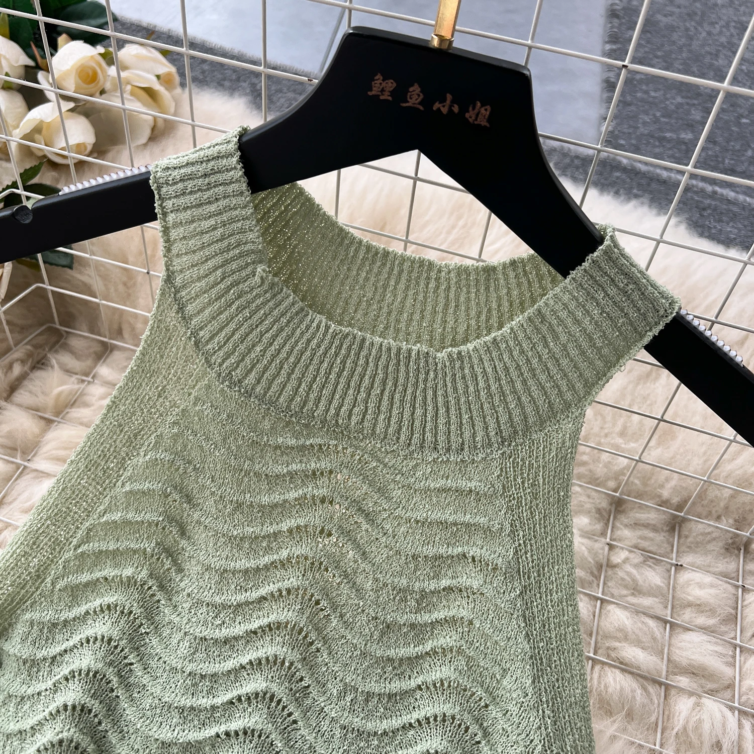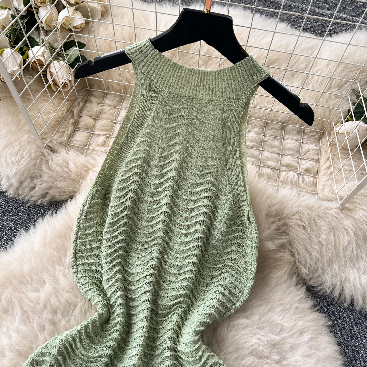 Hanging Neck Knitted Dress Female 2023 Summer Europe And The United States Wind Waist Slimming Spice Girl Bag Hip Dress