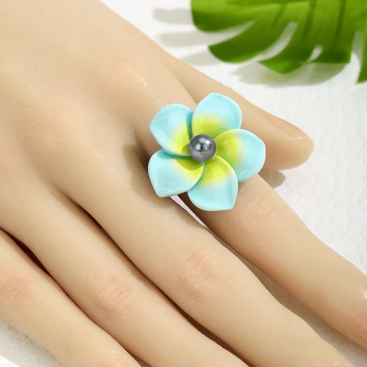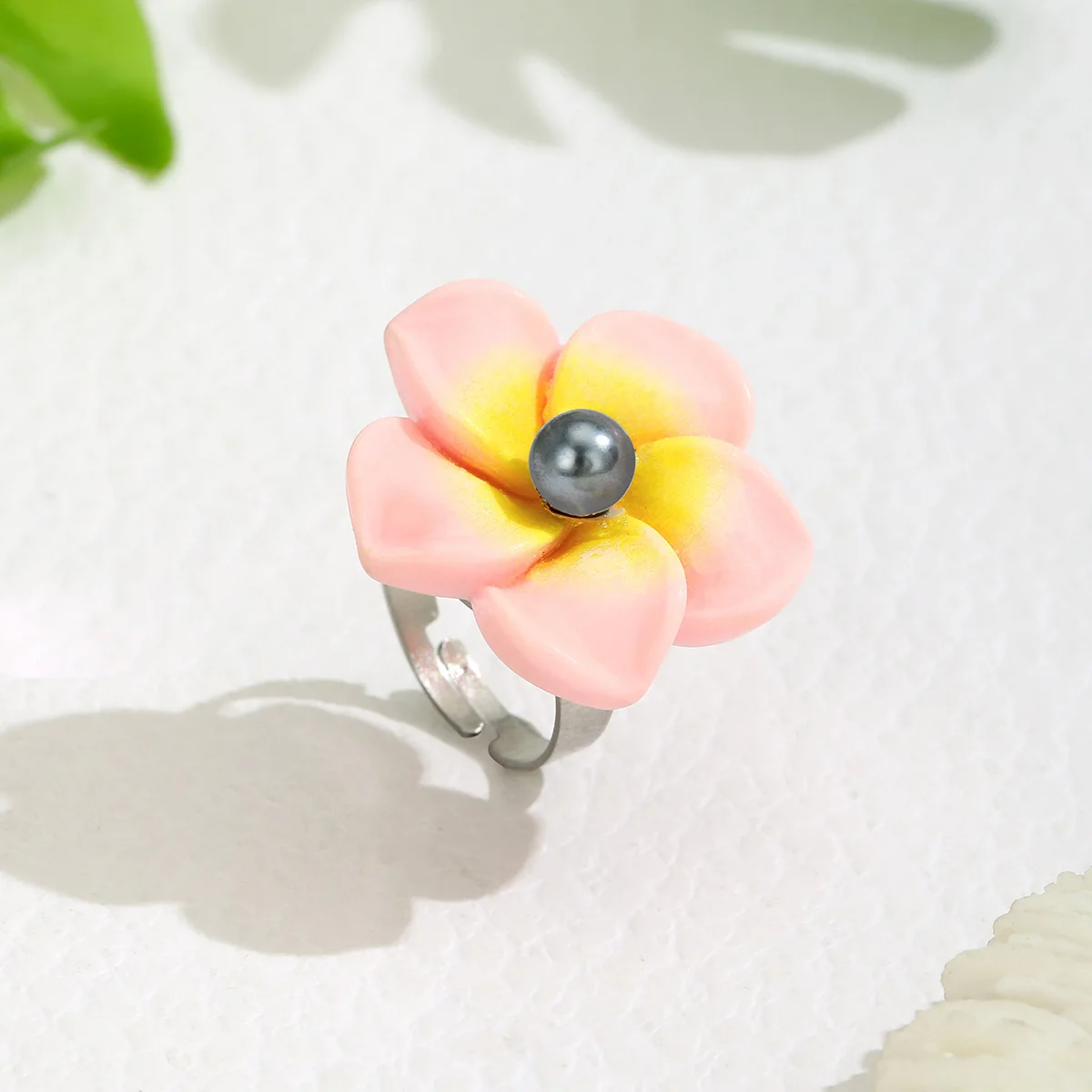hawaii jewelry stainless steel base plumeria flower shell Pearl Rings women flexible ring