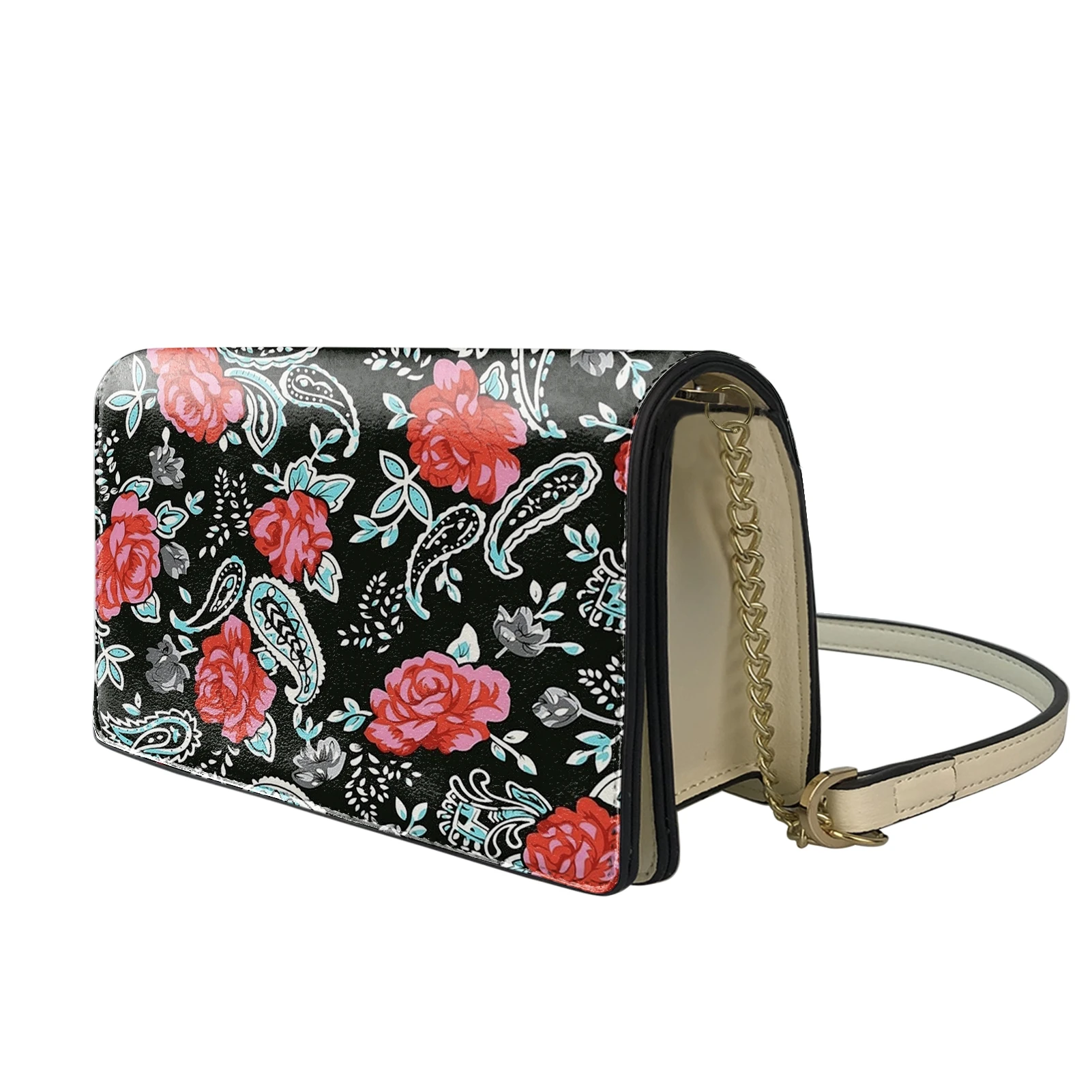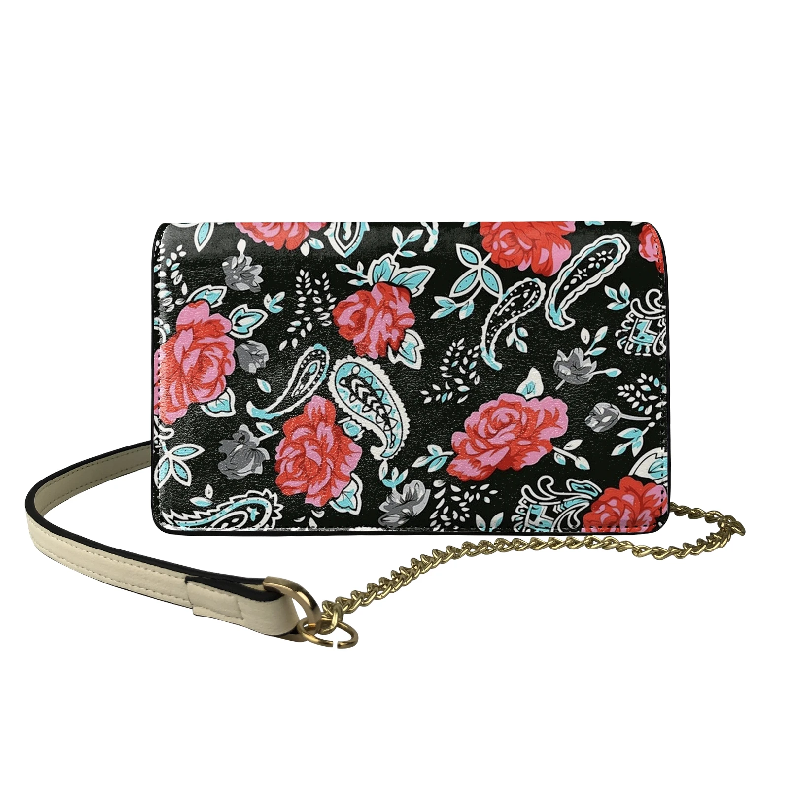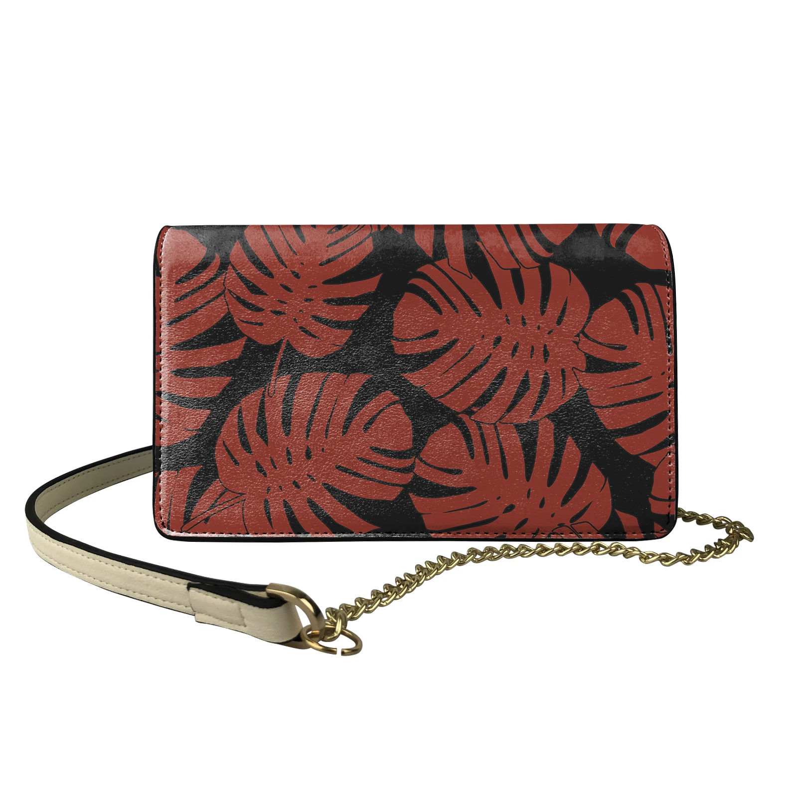 Hawaii Style Red and Black Leaf Print Waterproof Bag Wholesale Stylish Leather Women Bag Shoulder Strap Women Sling Bag Chain