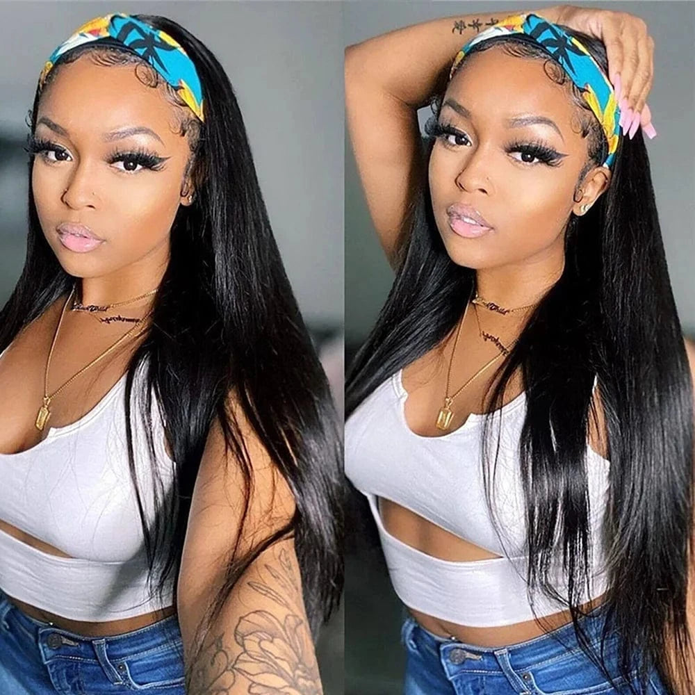 Headband Wig Human Hair Bone Straight Human Hair Wigs Full Machine Made Peruvian Human Hair Wigs For Black Women Easy to Go 180%