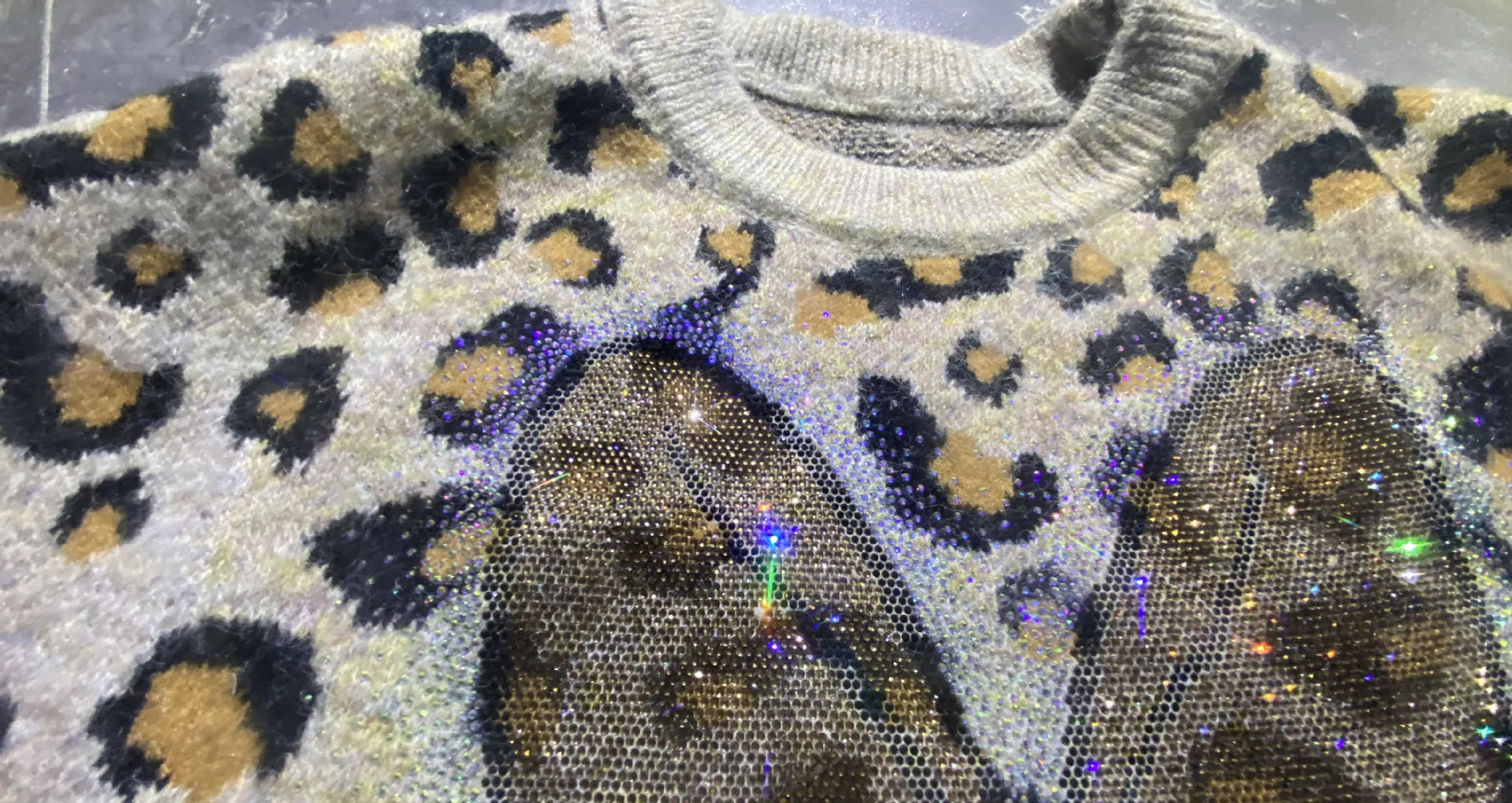 Heavy Industry Rhinestone Mid-length Sweater Coat Winter Leopard Print Thickened Knitted Top Jacket Long-sleeves O-neck Jumpers