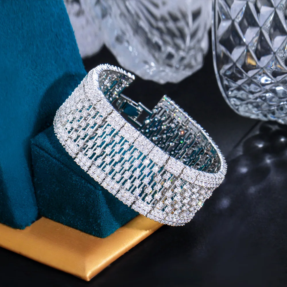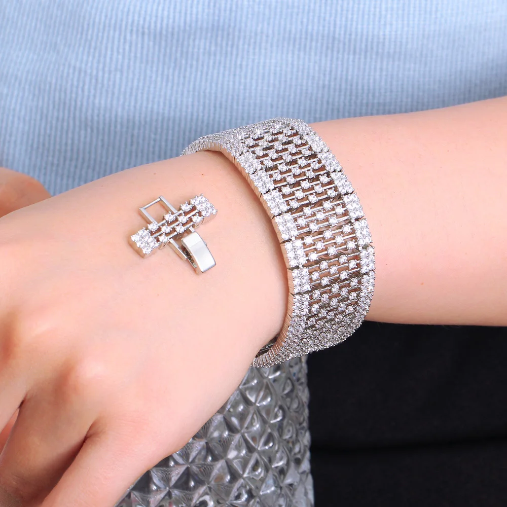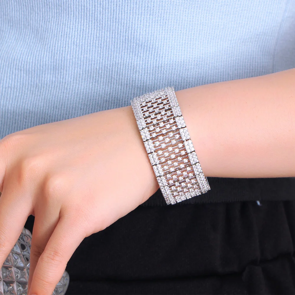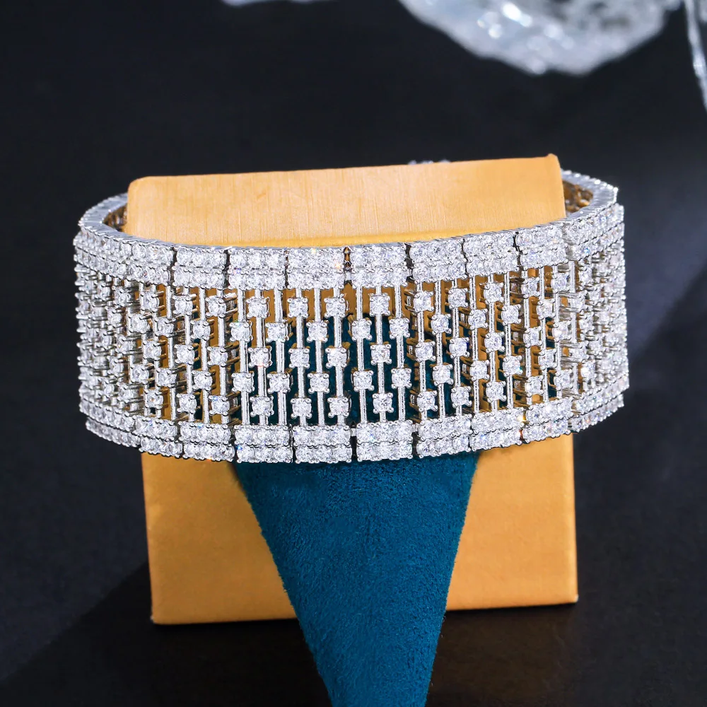 Heavy Stone Work Full Dubai Cubic Zircon All Match Bridal Wedding Pageant Big Bracelets Bangles Luxury Women Party Wear Jewelry