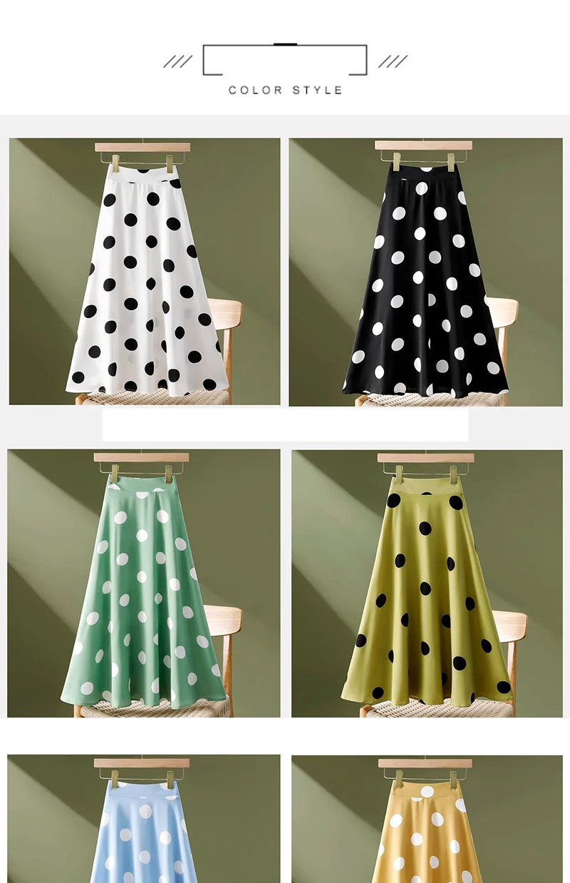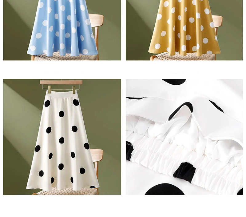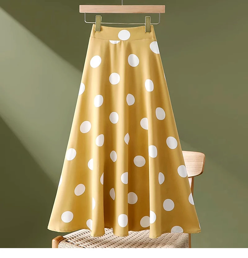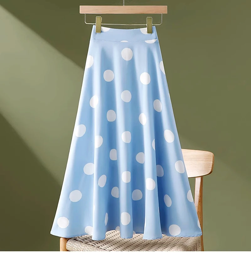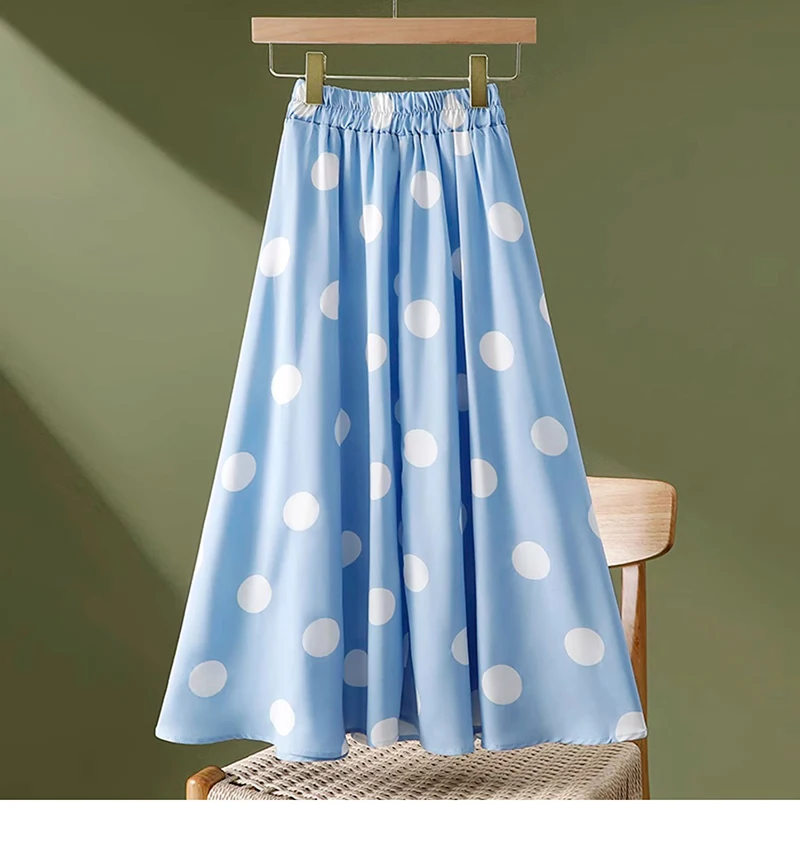 Hepburn Elegant Umbrella Skirt Women Polka Dot Printed Korean Chiffon Floral Printed High Waist Midi Skirts Ladies Spring Summer