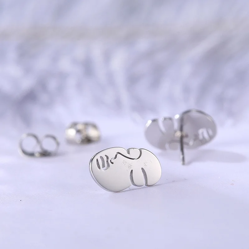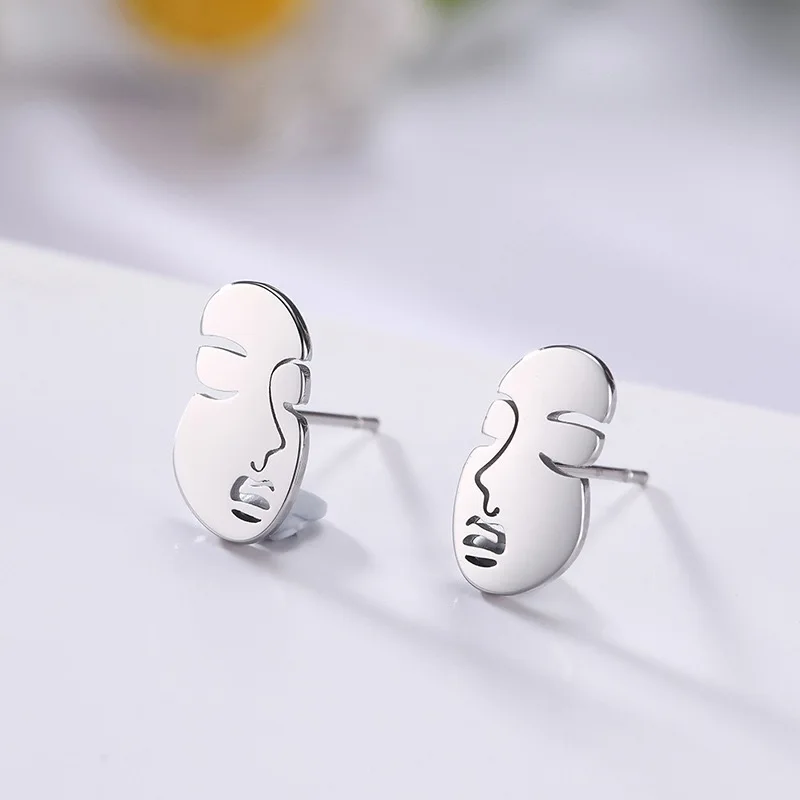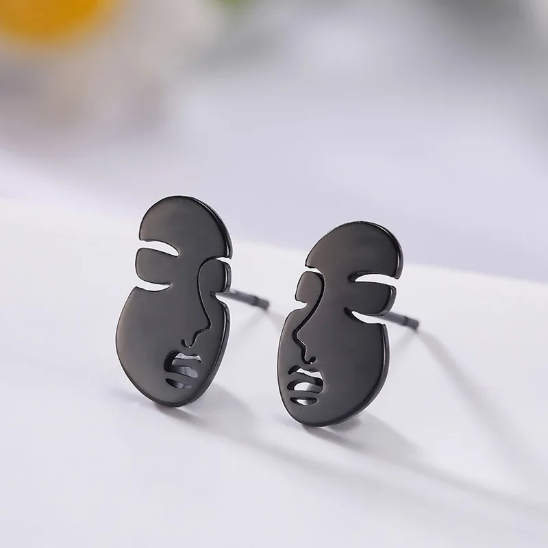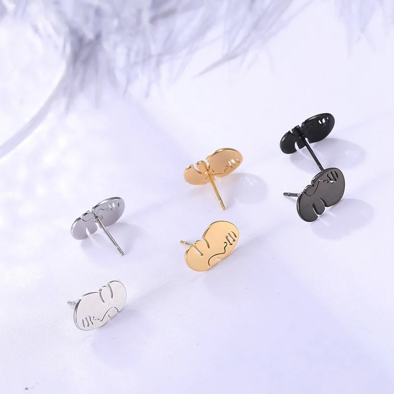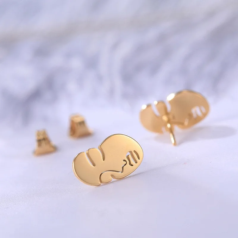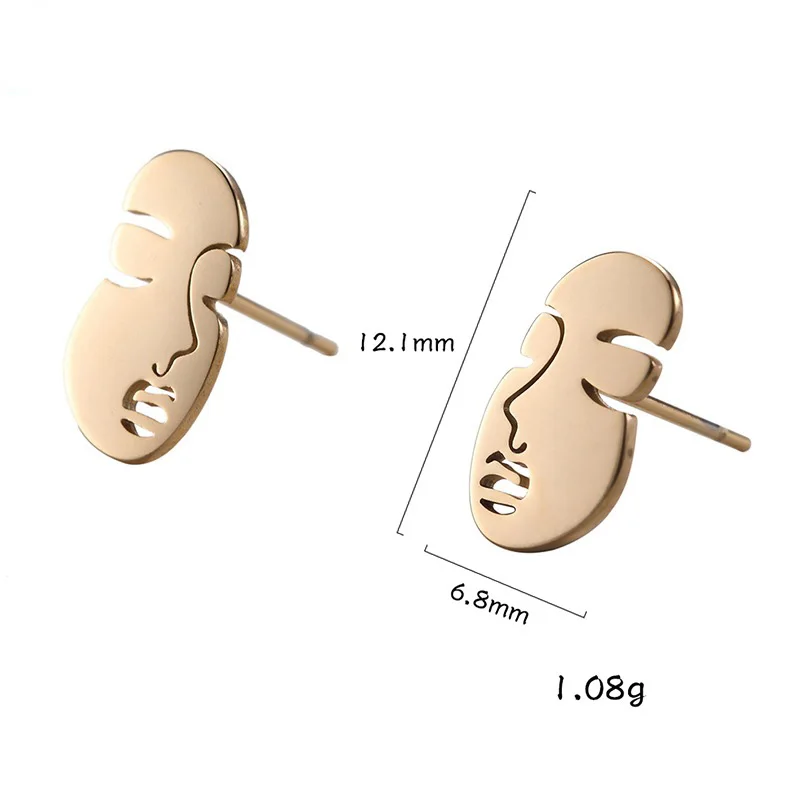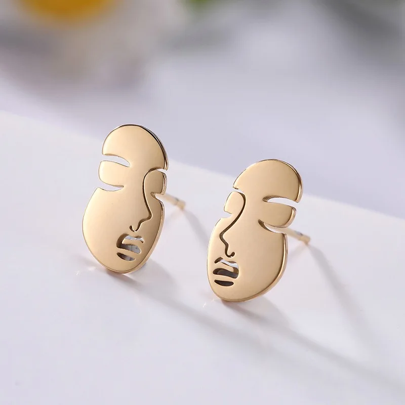 High End 18K Gold Plated Cute Face Stud Earrings Stainless Steel Jewelry