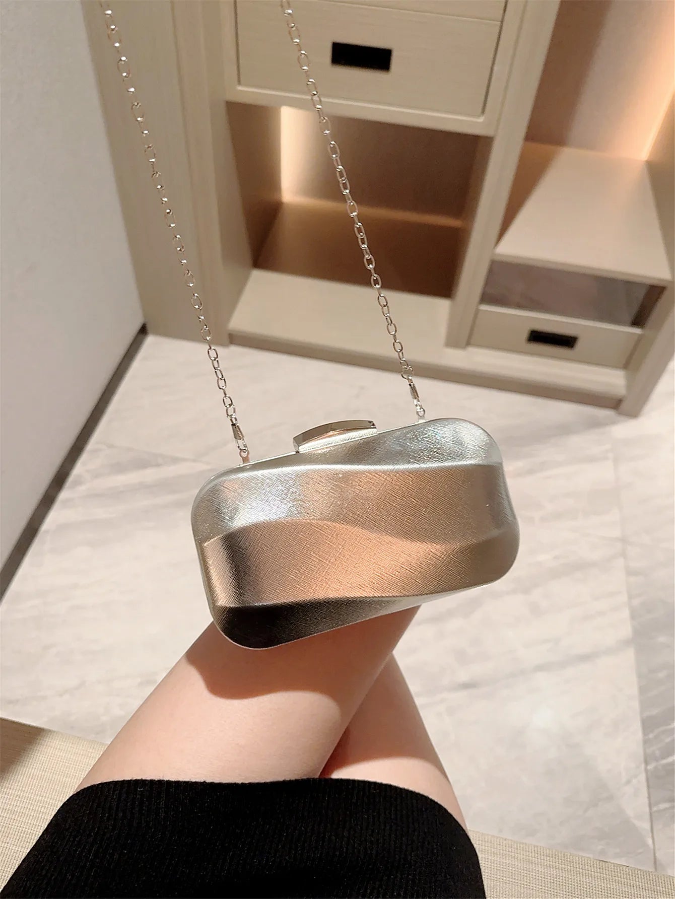 High-End Textured Square Box-Shaped Evening Bag Clutch Bag Chain Bag Banquet Bag Cheongsam Bag Evening Dress Bag Wedding Bag