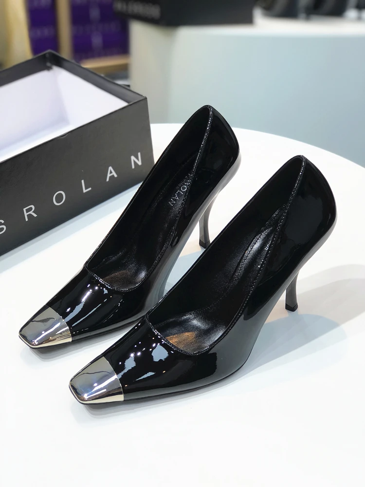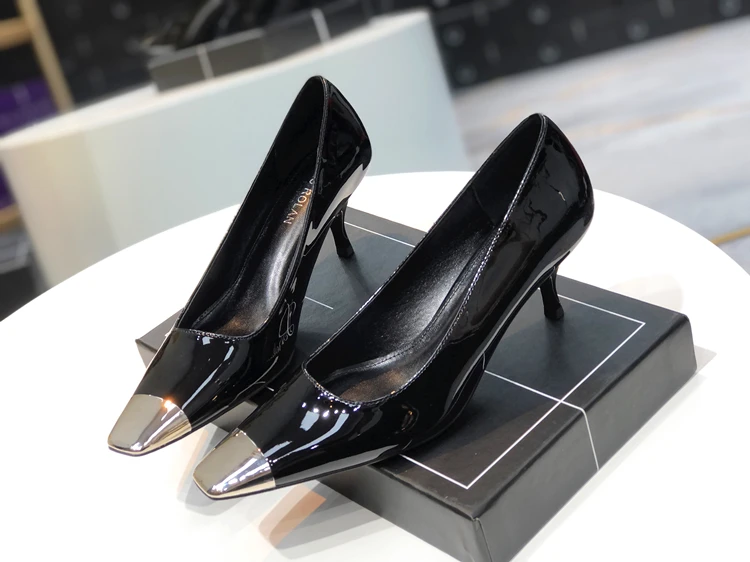 High heels women's 2022 new metal toe square toe stiletto women's shoes