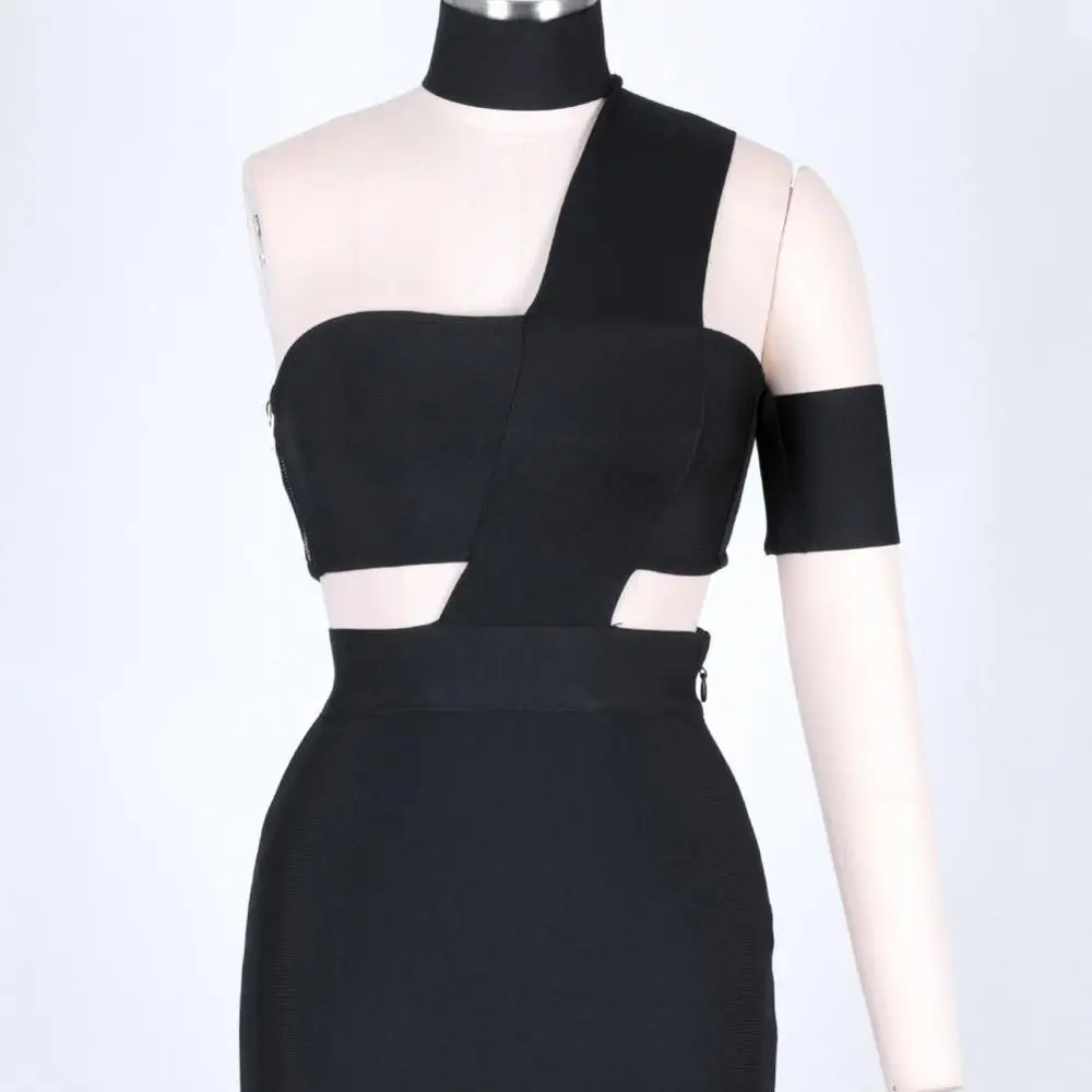 High Neck Strapless Black One Shoulder Black Sexy Dress