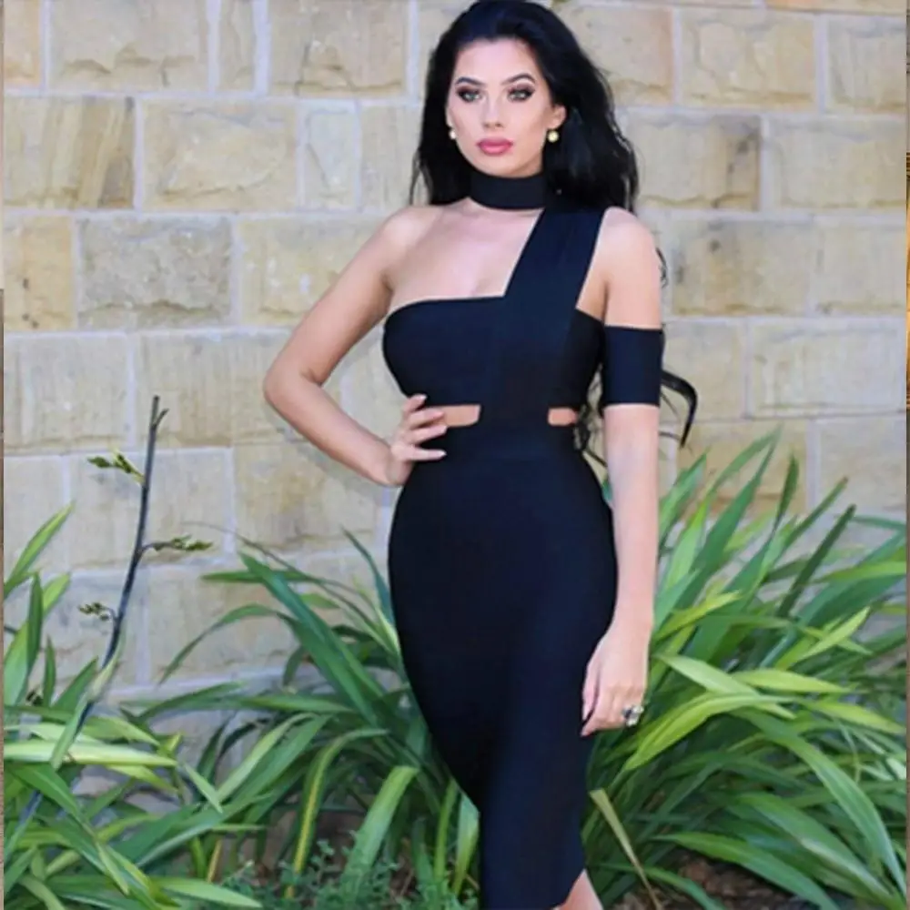 2019 High Neck Strapless Black One Shoulder Black Sexy Dress