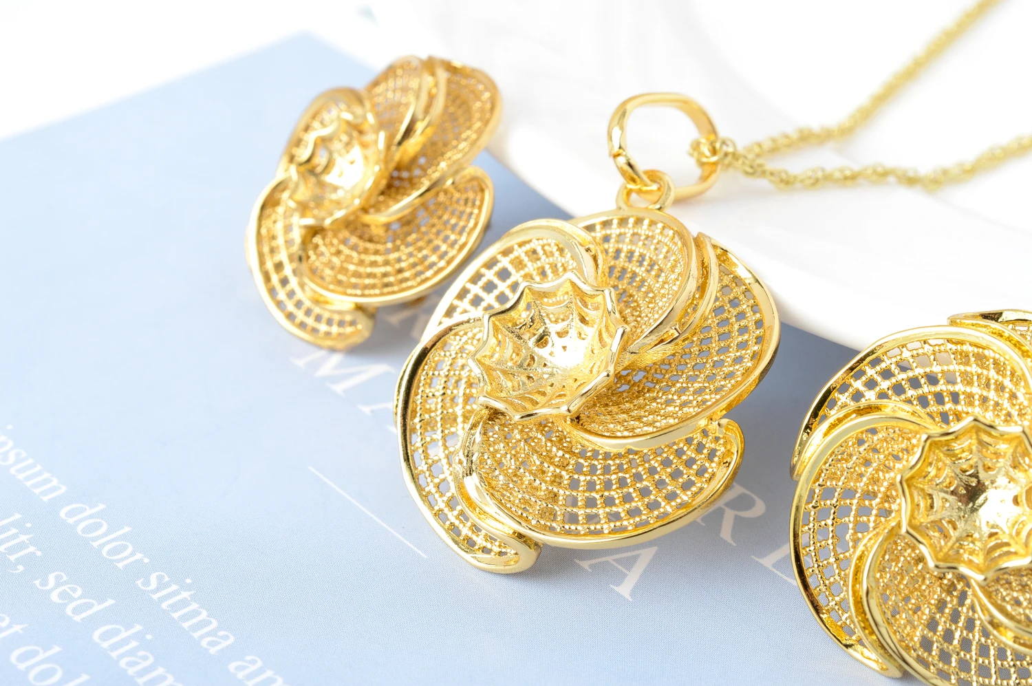 High quality 14k gold dubai jewelry set Women wedding party bride nigerian wedding jewelry set