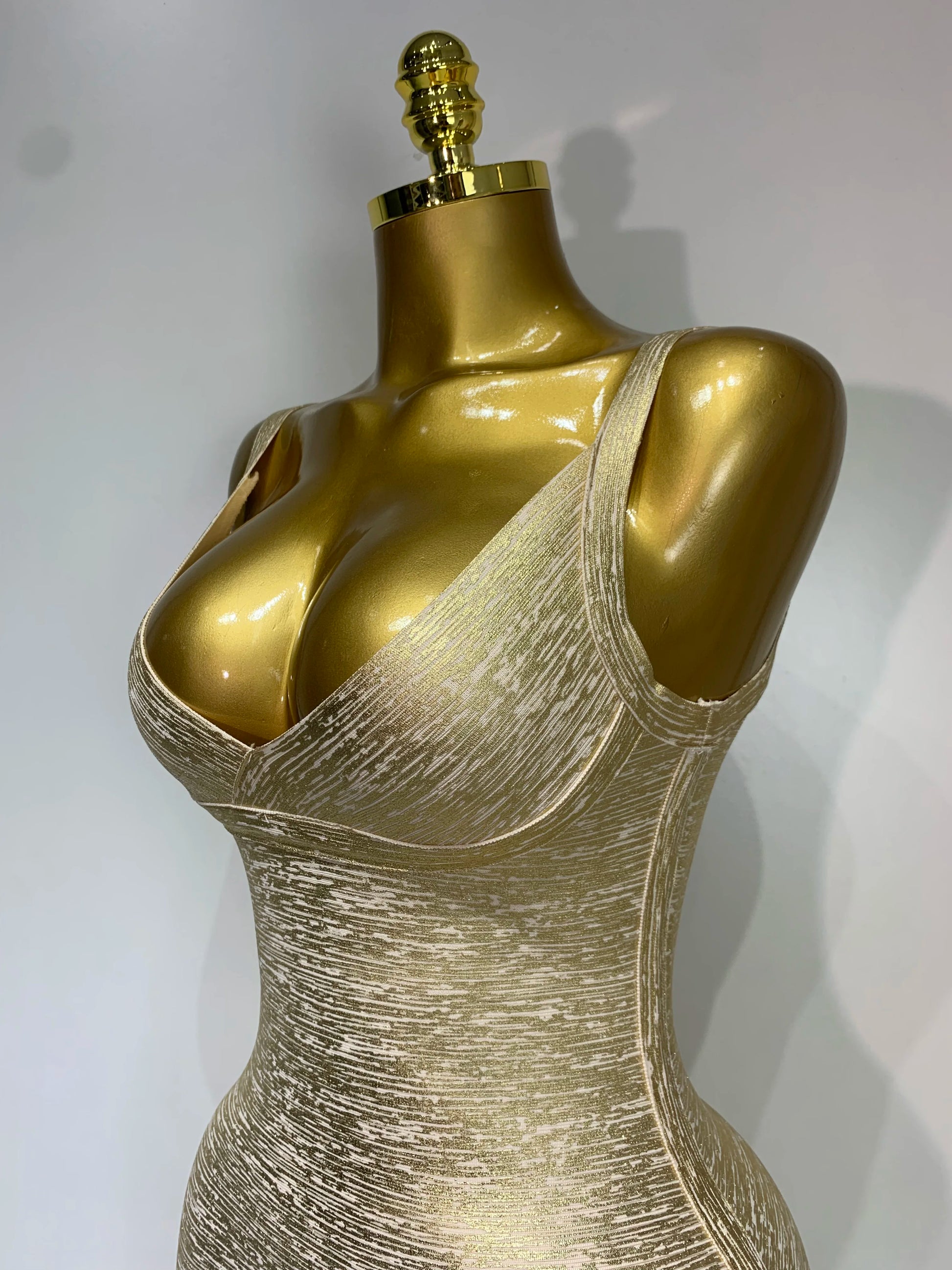 High Quality Celebrity Elegant Gold Bodycon Bandage Dress Women Sexy Nightclub Evening Party Luxury Birthday Dress Vestidos