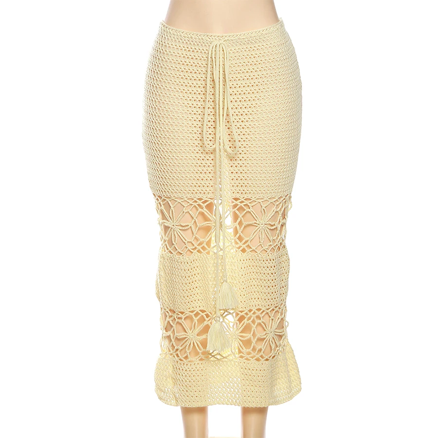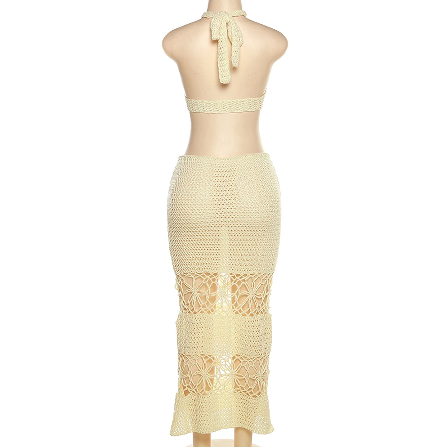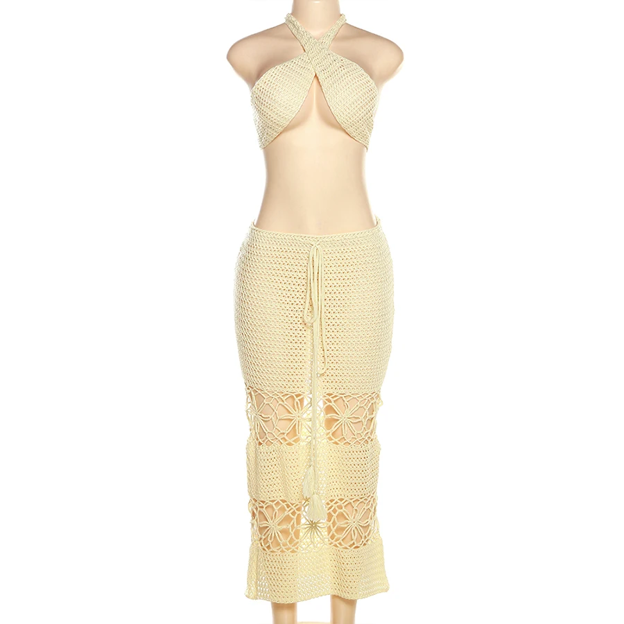 High Quality Crochet Midi Skirt Two Piece Sets Elegant Outfit 2 Piece Skirt Set Women