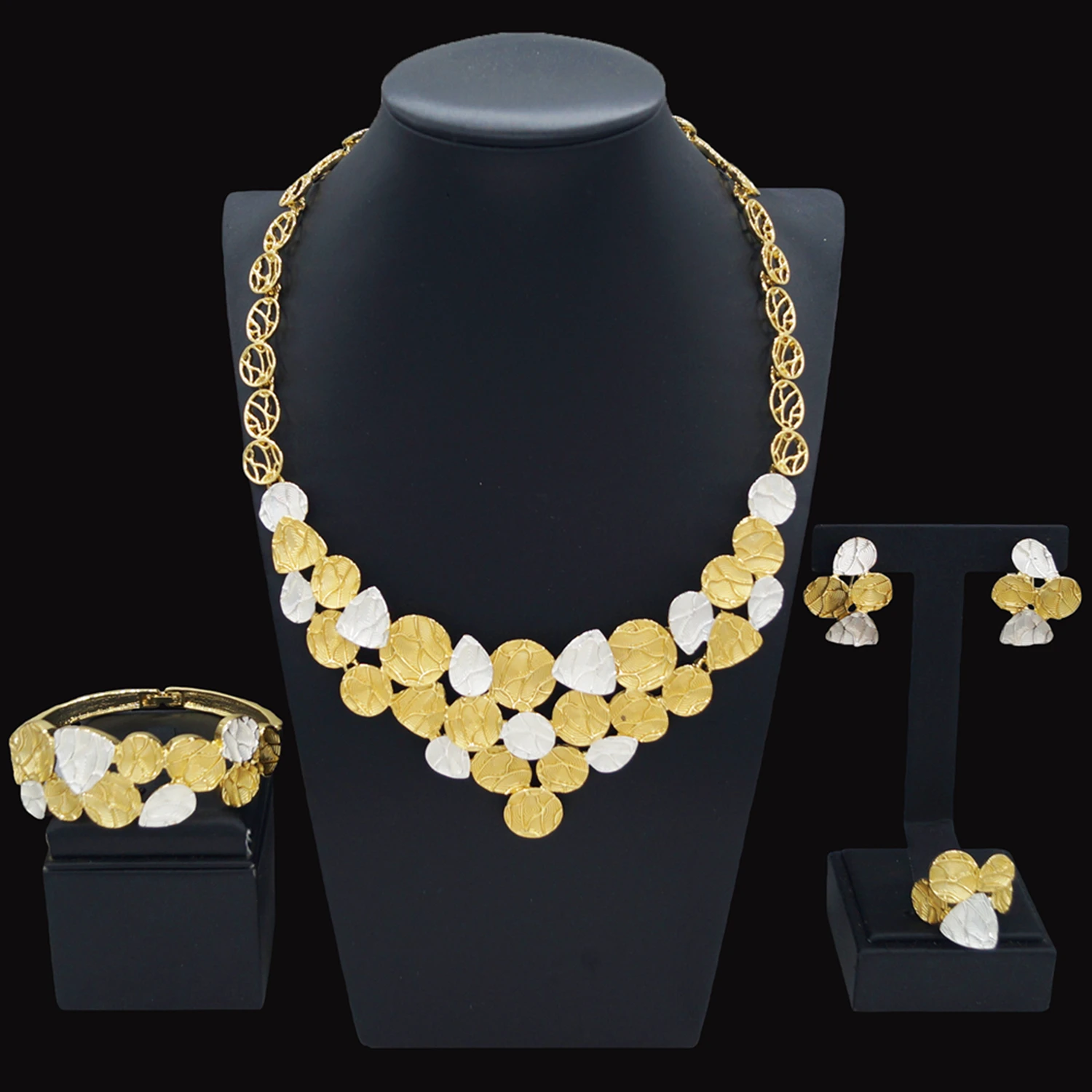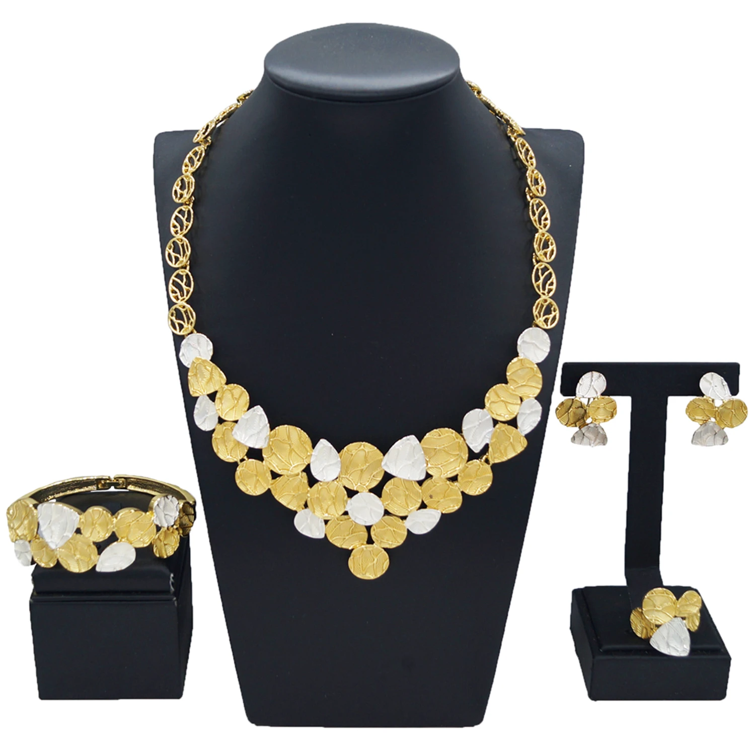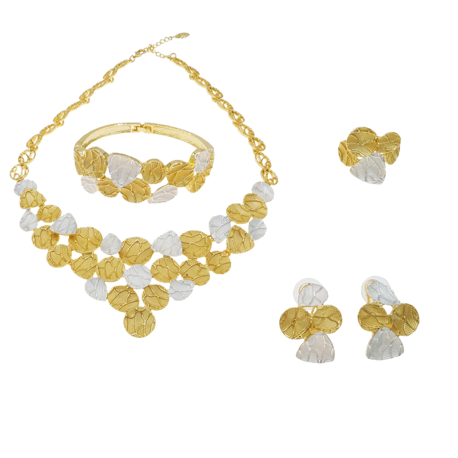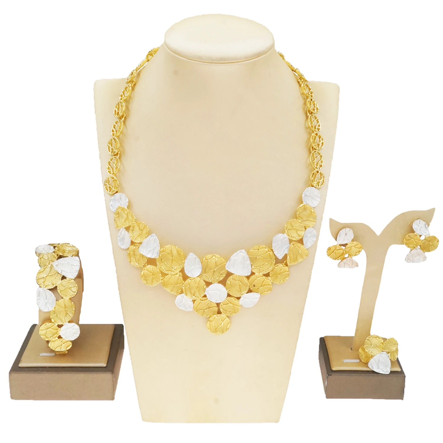 High Quality Dubai Jewelry Set Factory Supply African Jewelry For Woman Gold with Silver 2 Tons Necklace Set Earrings Bracelet