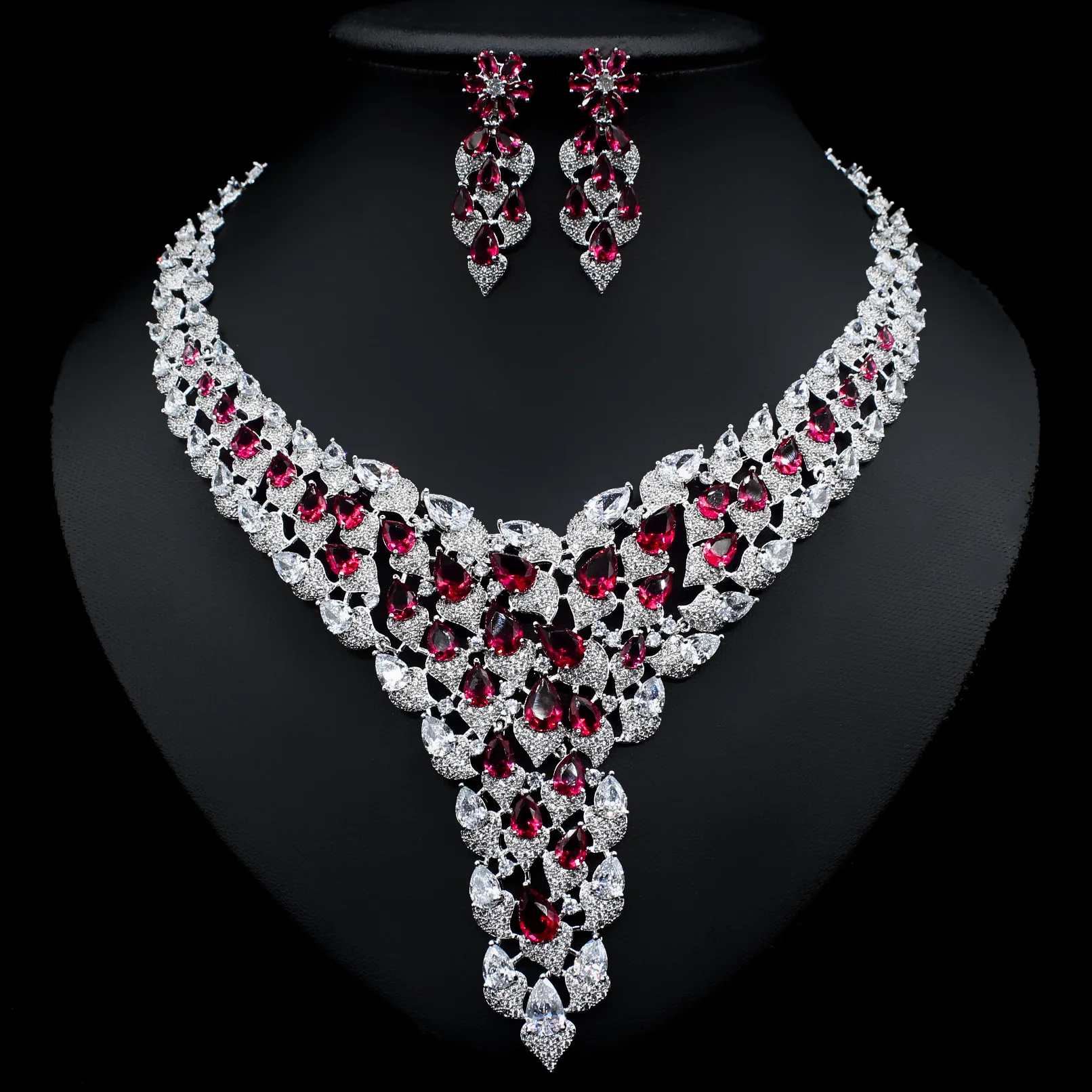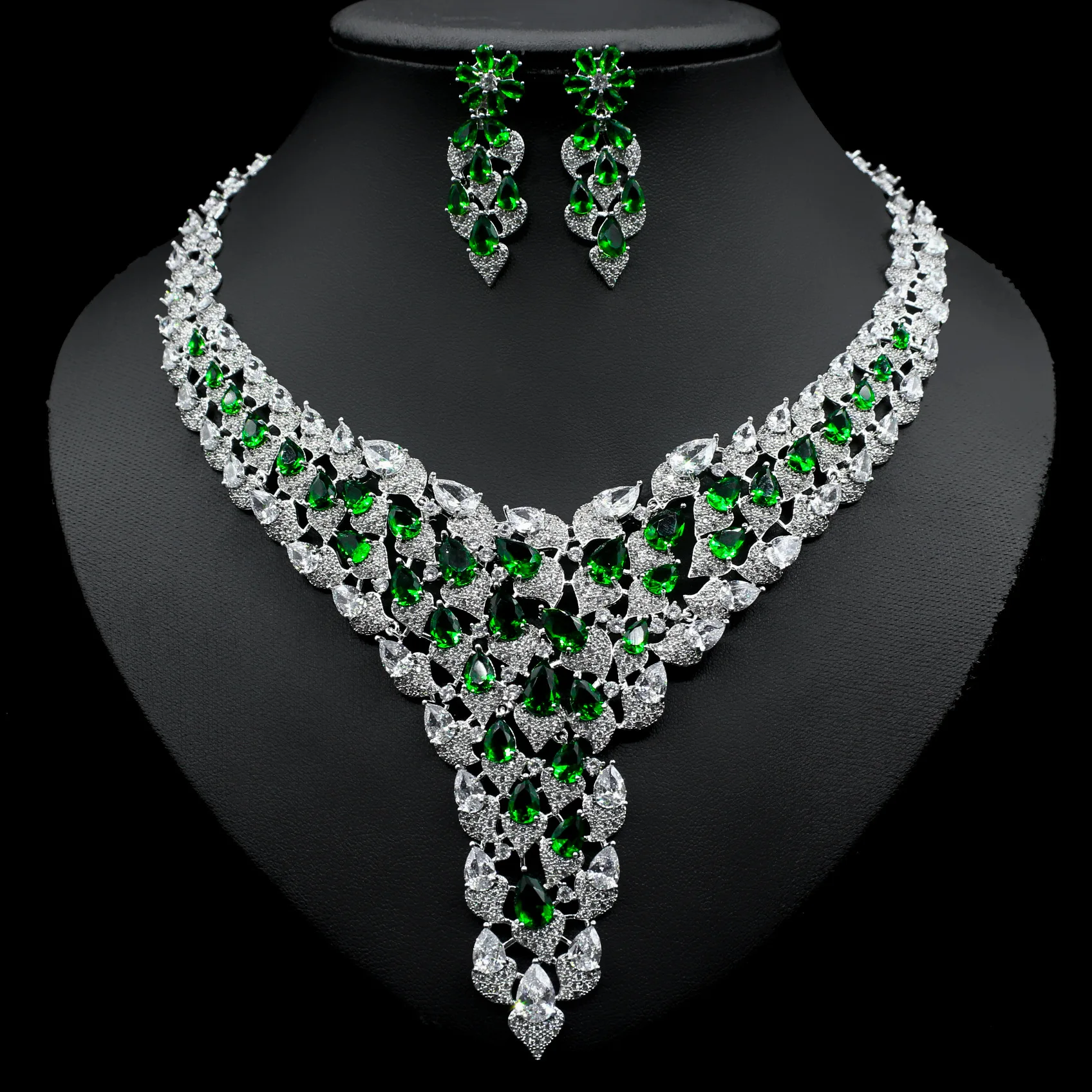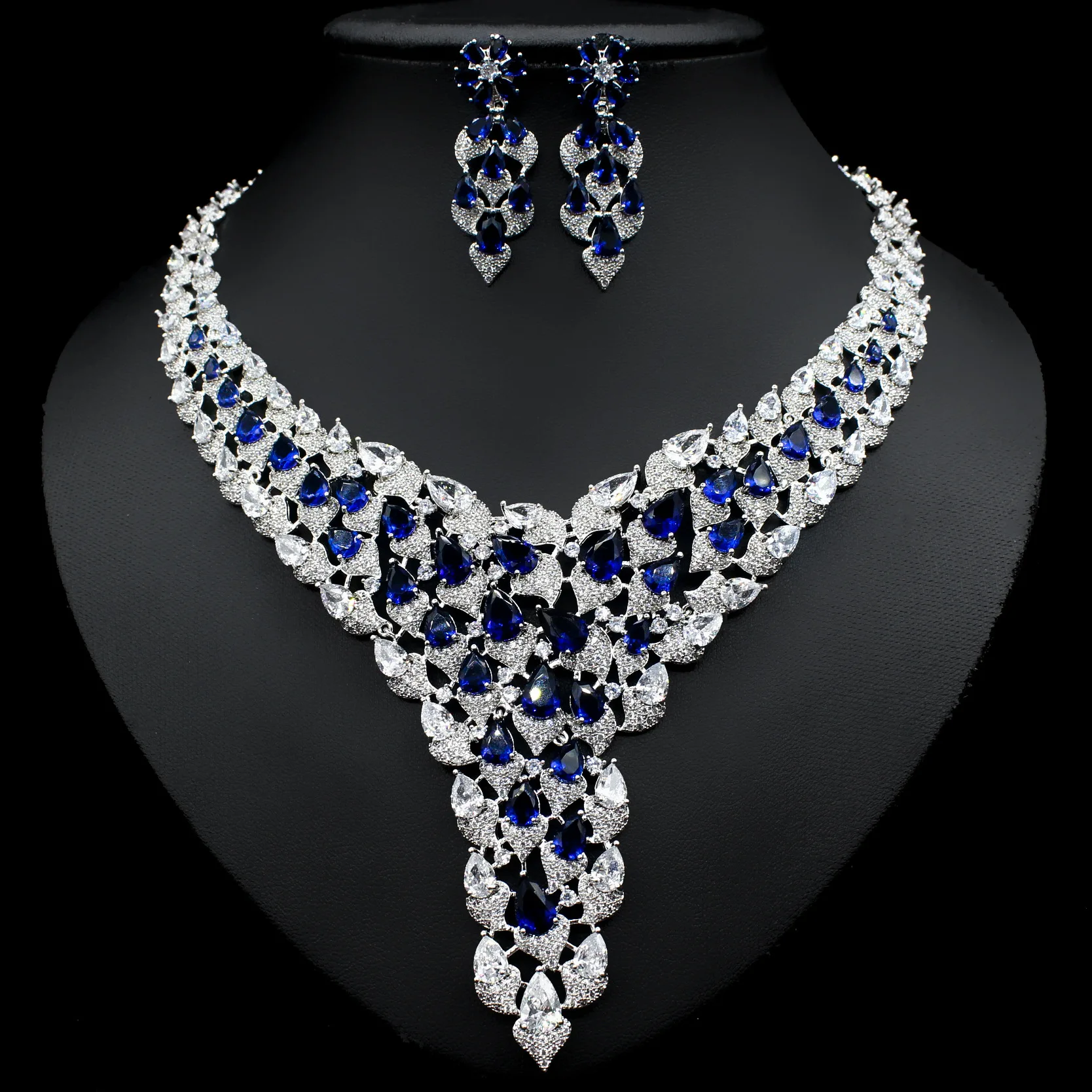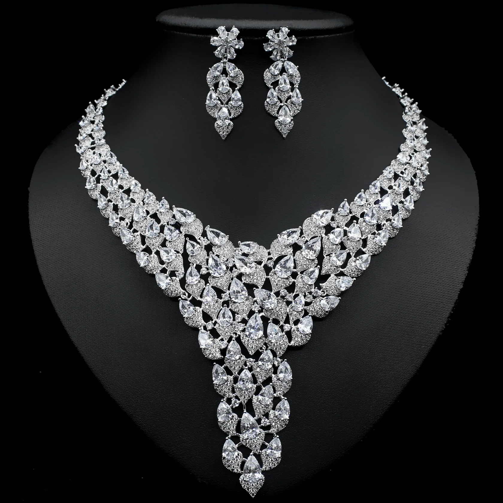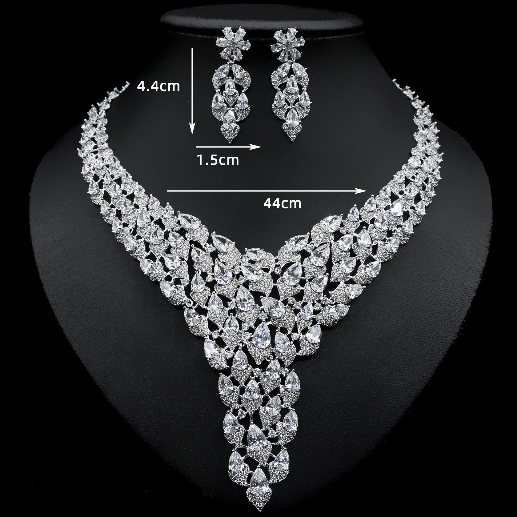 High Quality Inlay Full Zircon Jewelry Necklace Drop Earring Women Trendy Bridal Engagement Wedding Jewelry Set