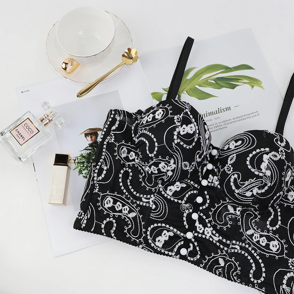 High Quality Ladies Floral embroidered corset tops,Soft and supple a Slim-fit corset for women