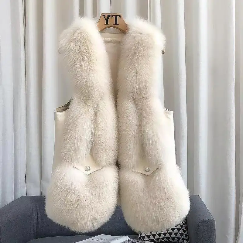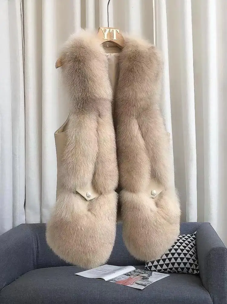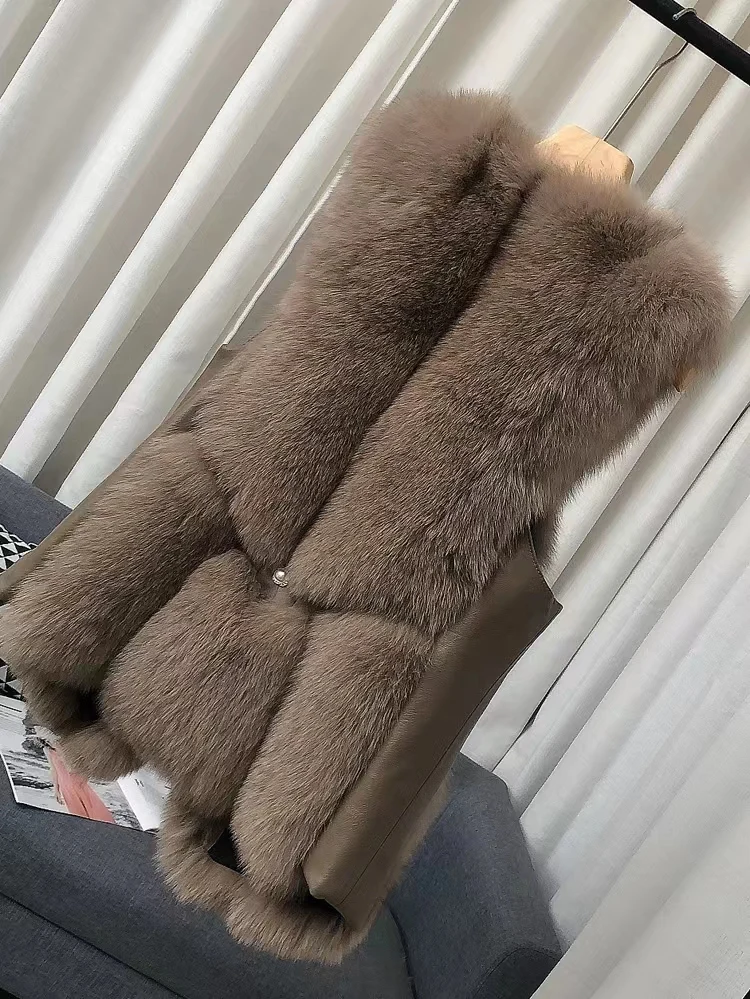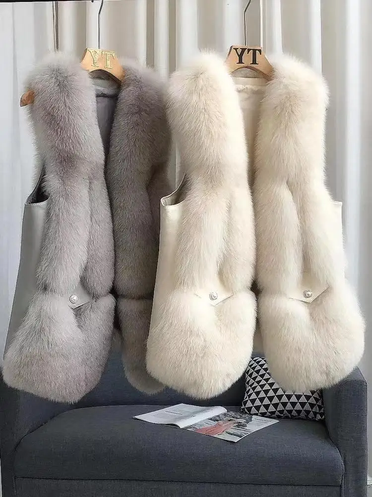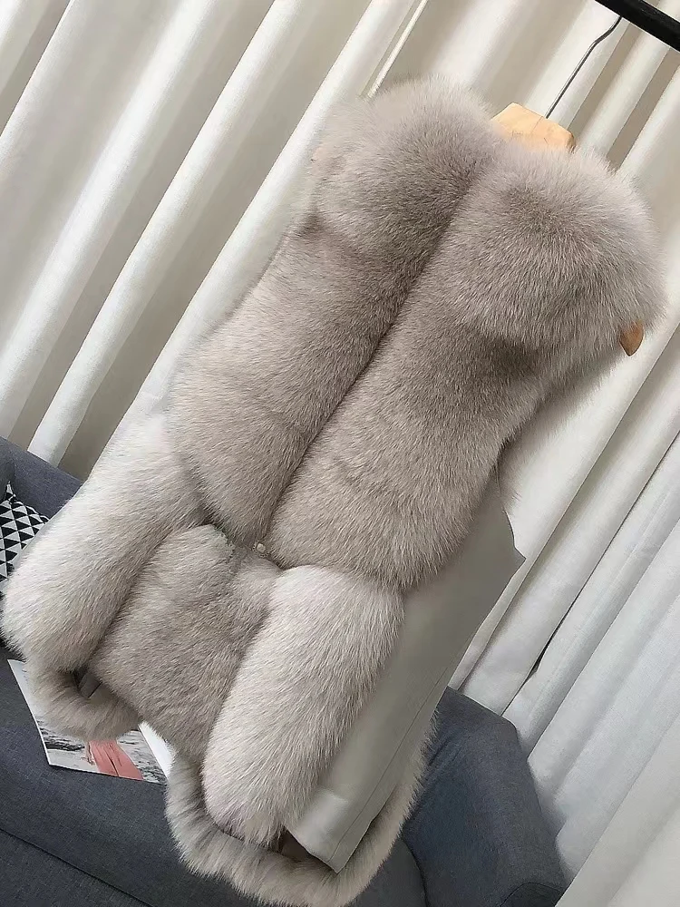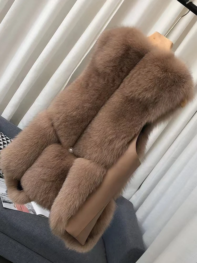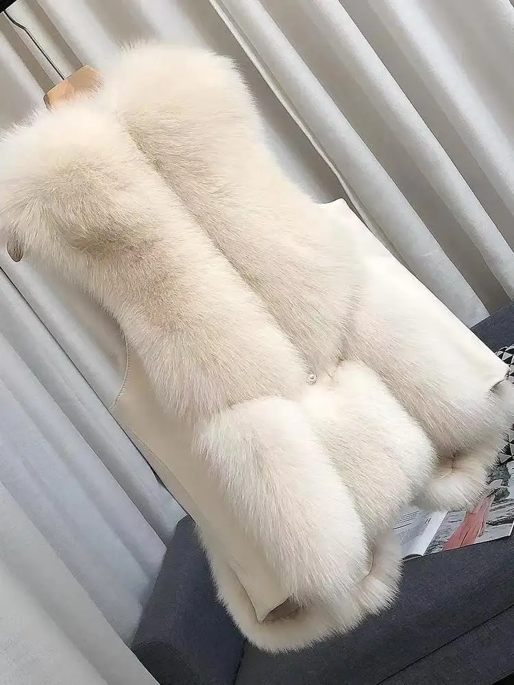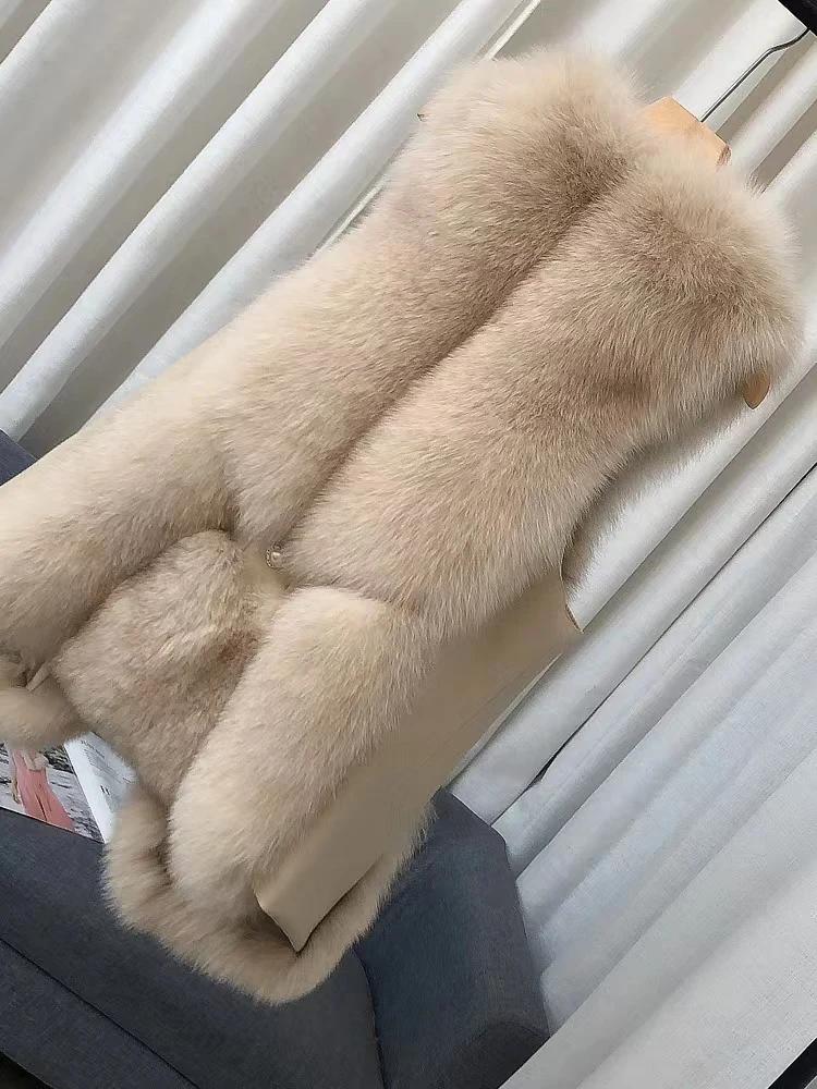 This is a fashionable fox fur vest. The raw materials are made of high-quality fox fur, fluffy, smooth, rich in bottom velvet, elastic, comfortable and warm, suitable for many occasions, leisure, vacation, party, etc