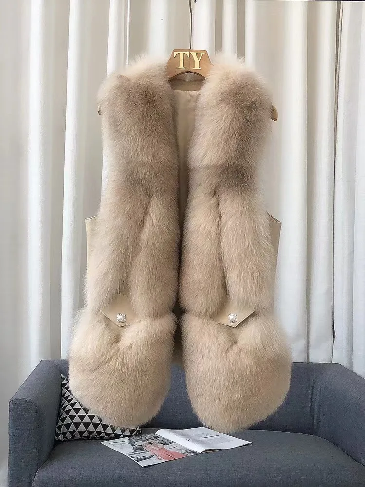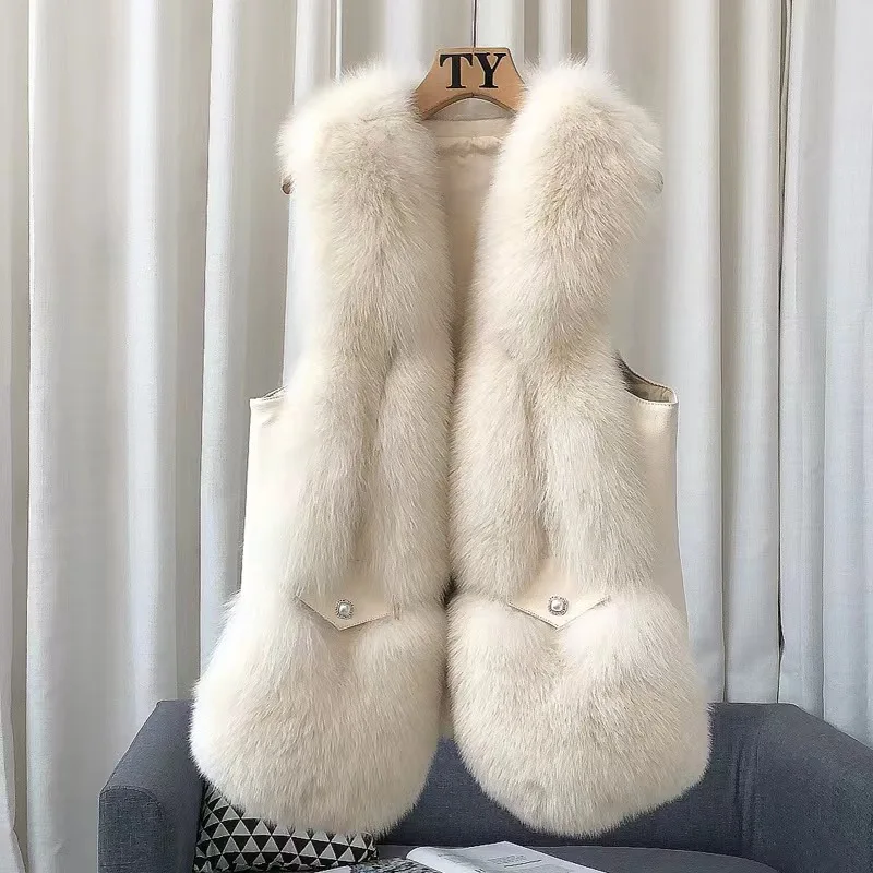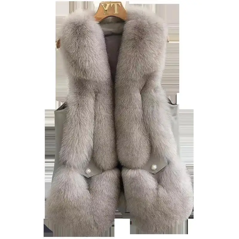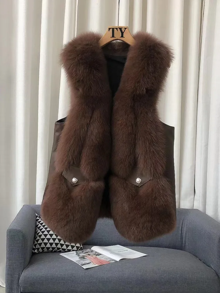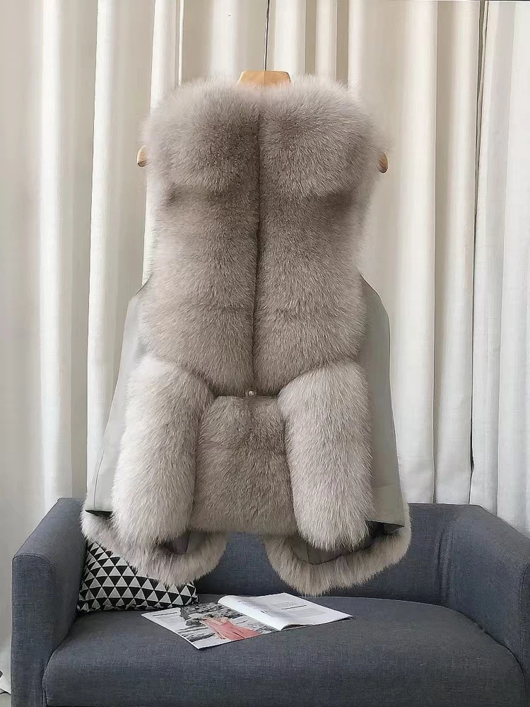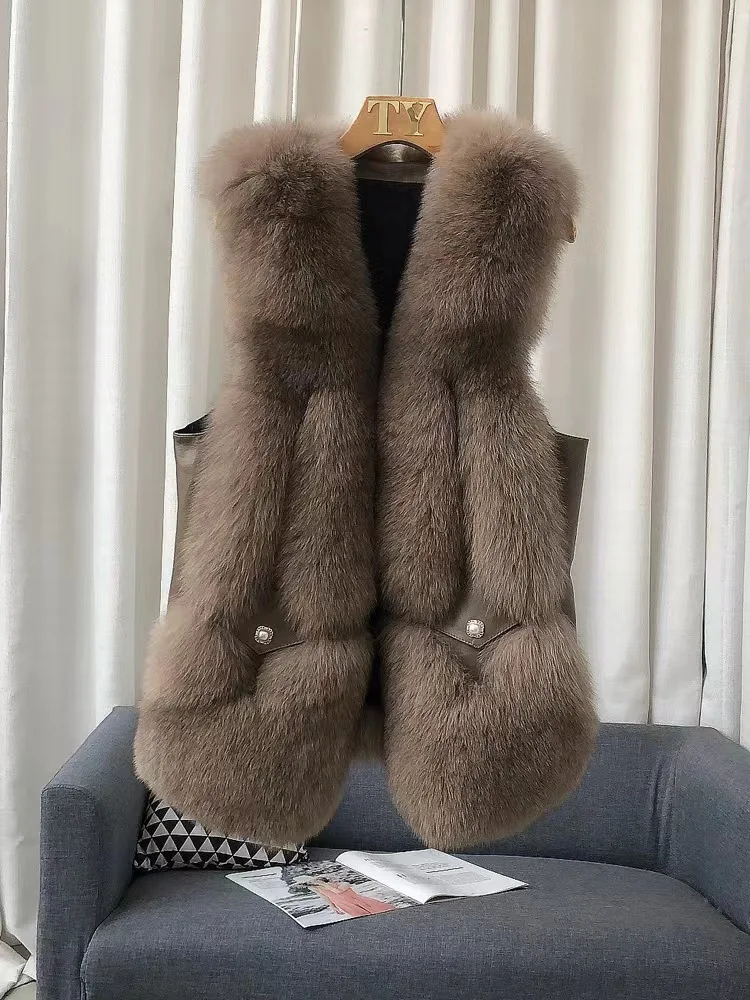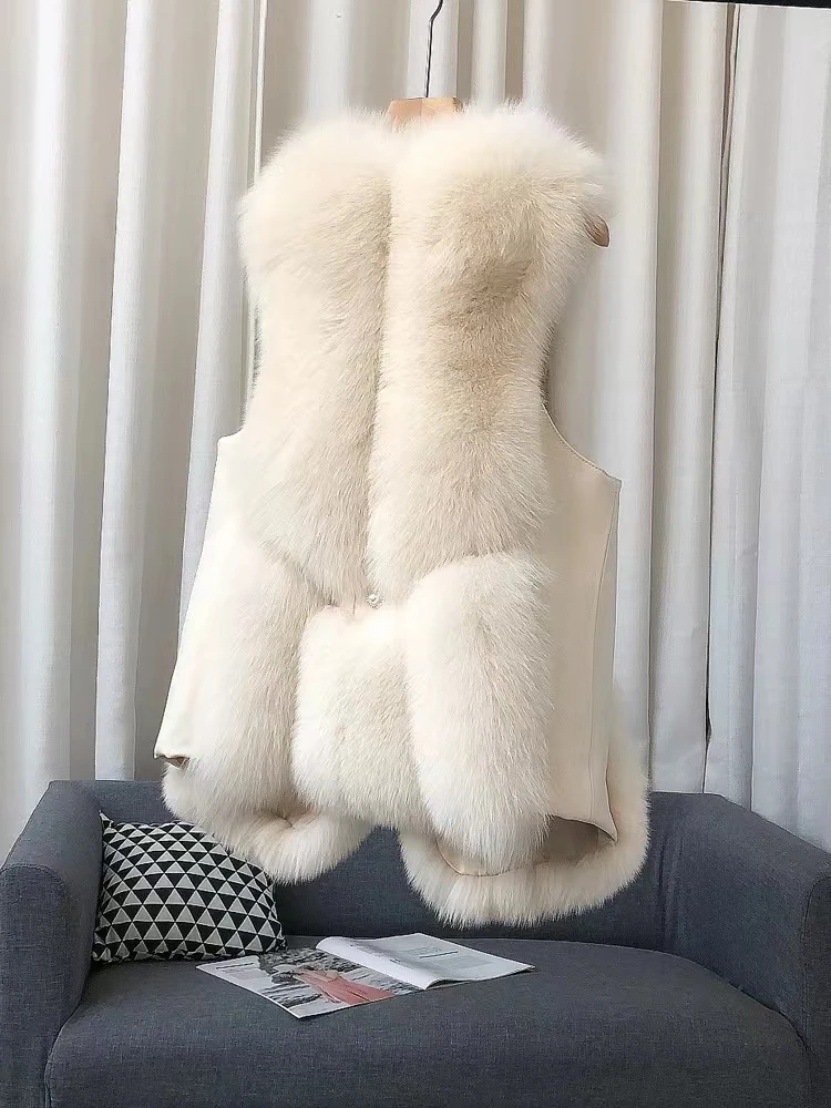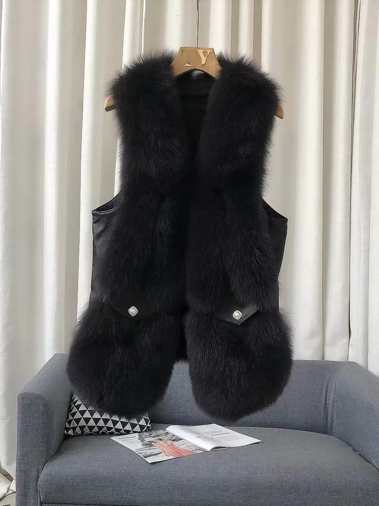 High Quality Luxury Crop Fur Gilet Winter Warm Real Fox Fur Vest Women