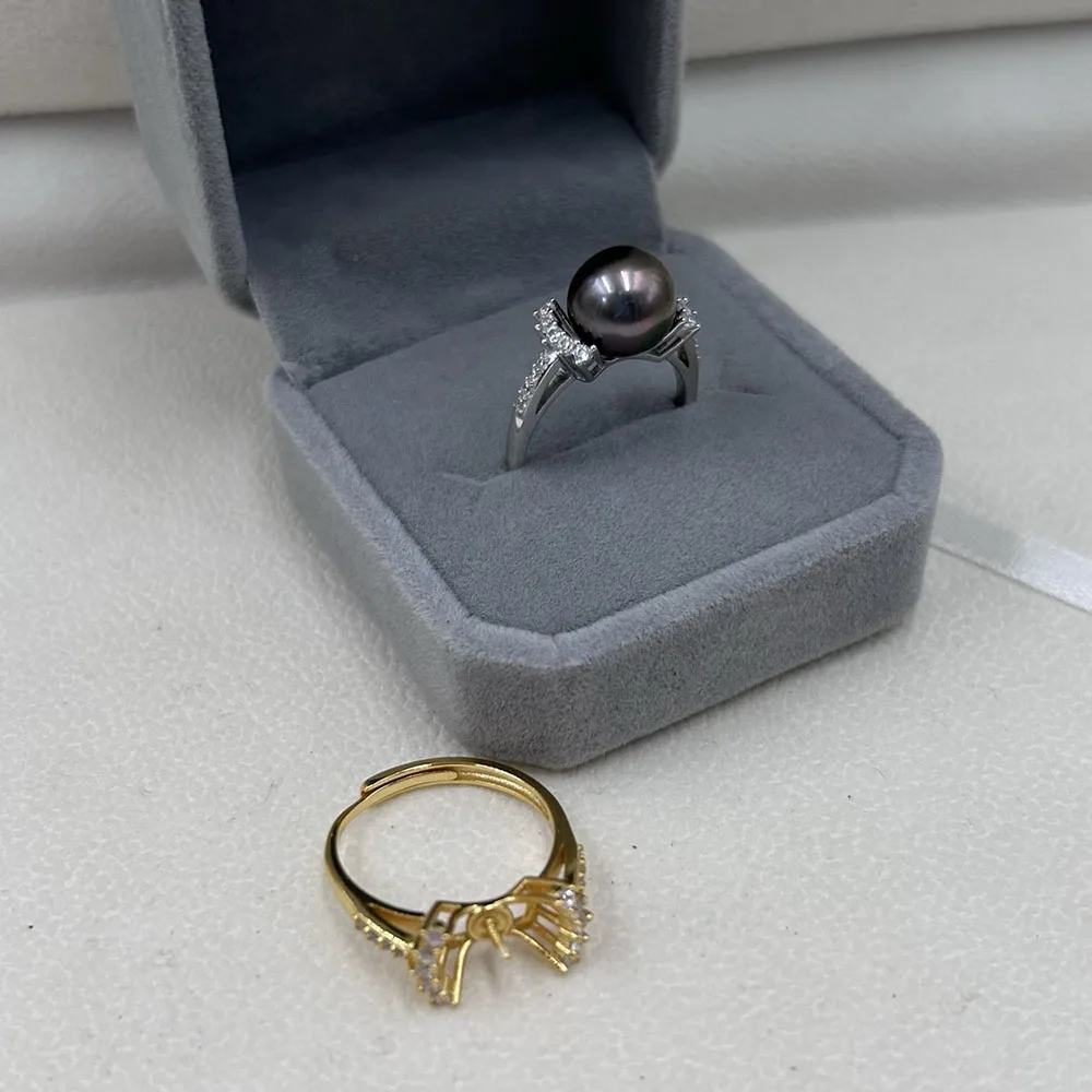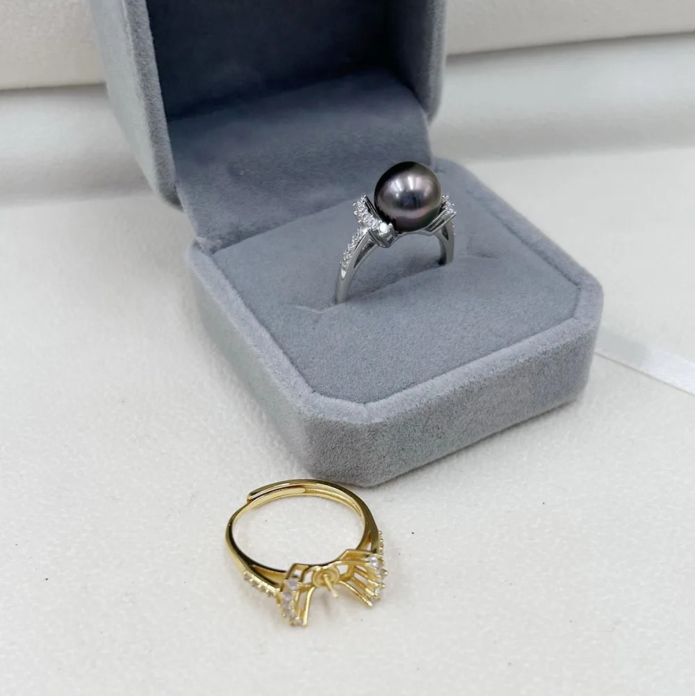 high quality new fashion 925 silver adjustable gold pearl ring,Jewelry Findings ring holder round nature pearl wholesale price