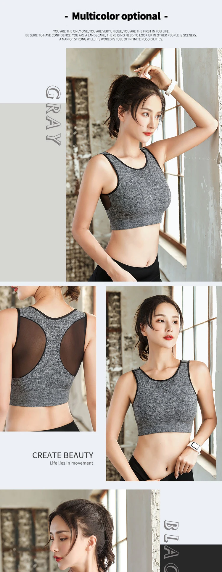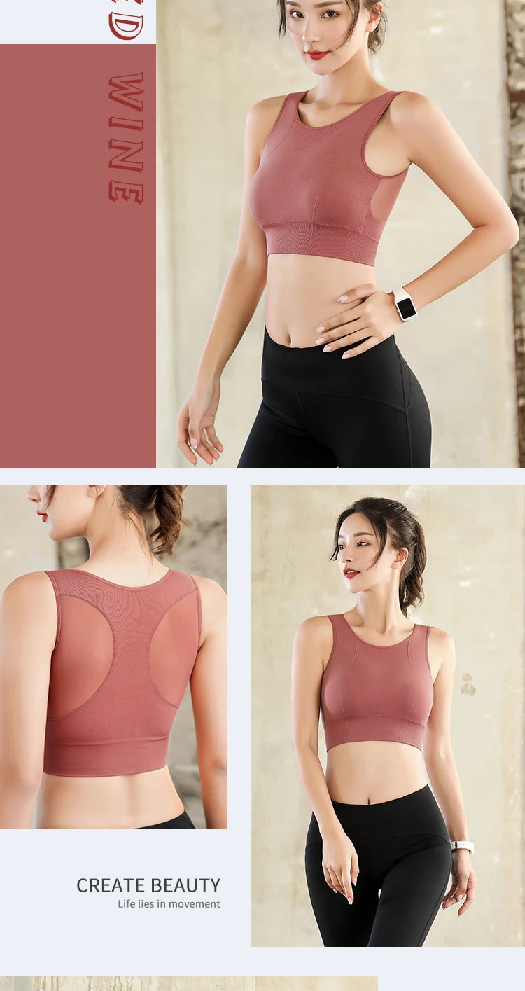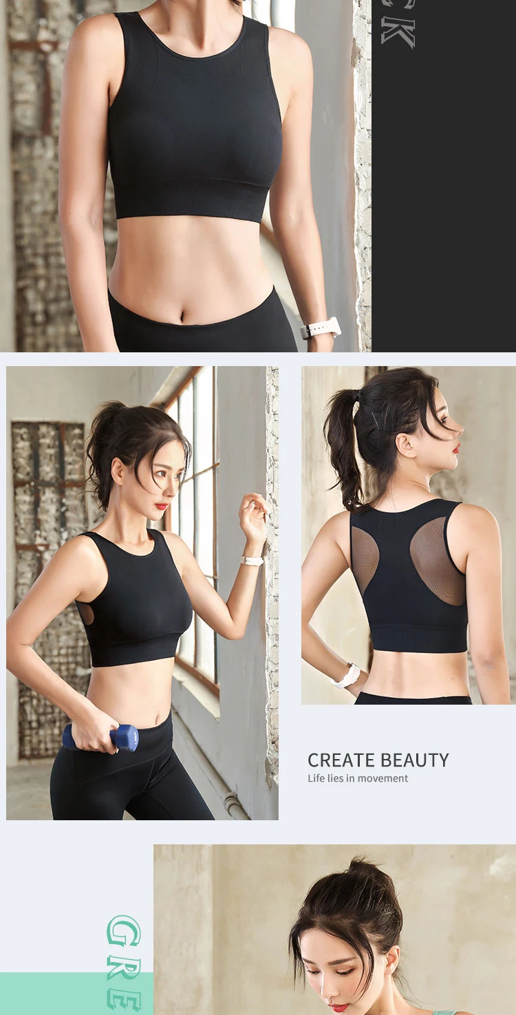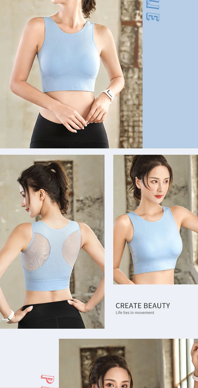High Quality Raised Neckline Seamless Wireless Sujetador Deportivo Running Workout Yoga Bra Mesh Sports Bras Crop Top For Womens