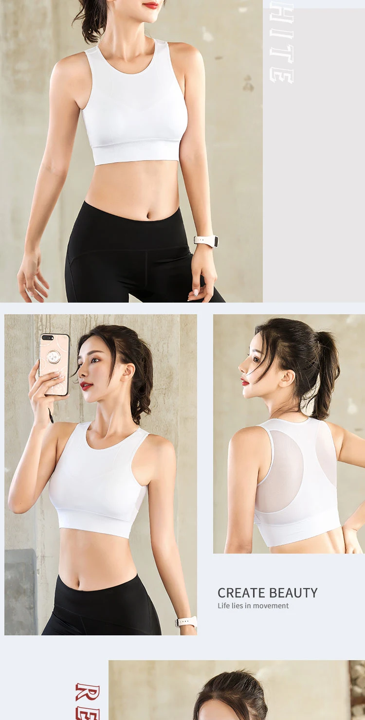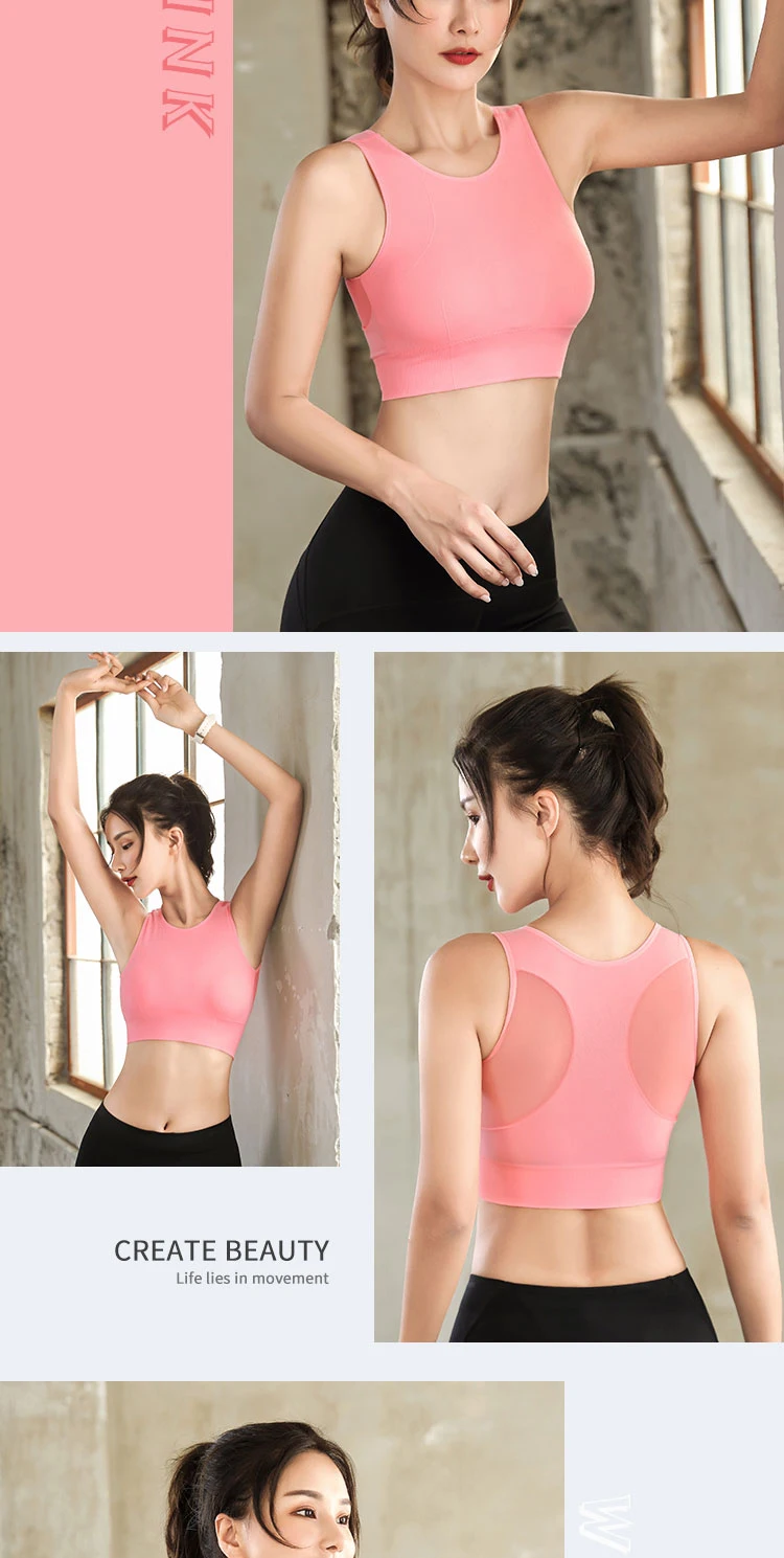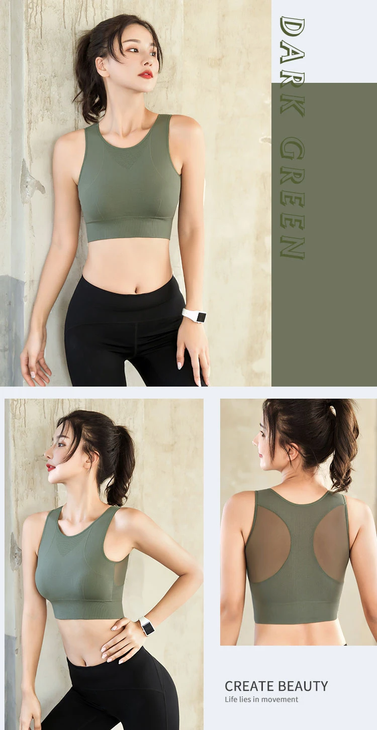 High Quality Raised Neckline Seamless Wireless Sujetador Deportivo Running Workout Yoga Bra Mesh Sports Bras Crop Top For Womens