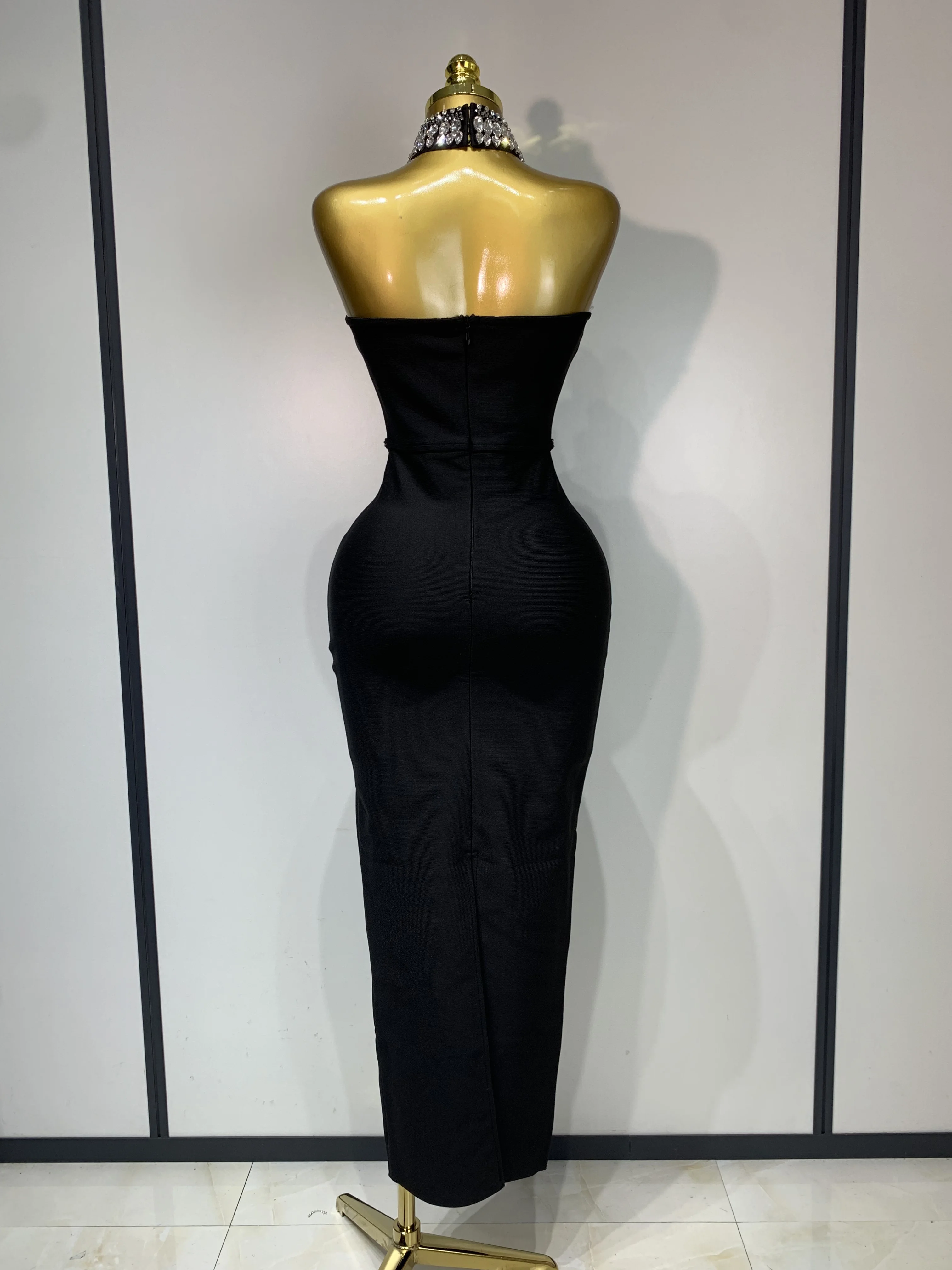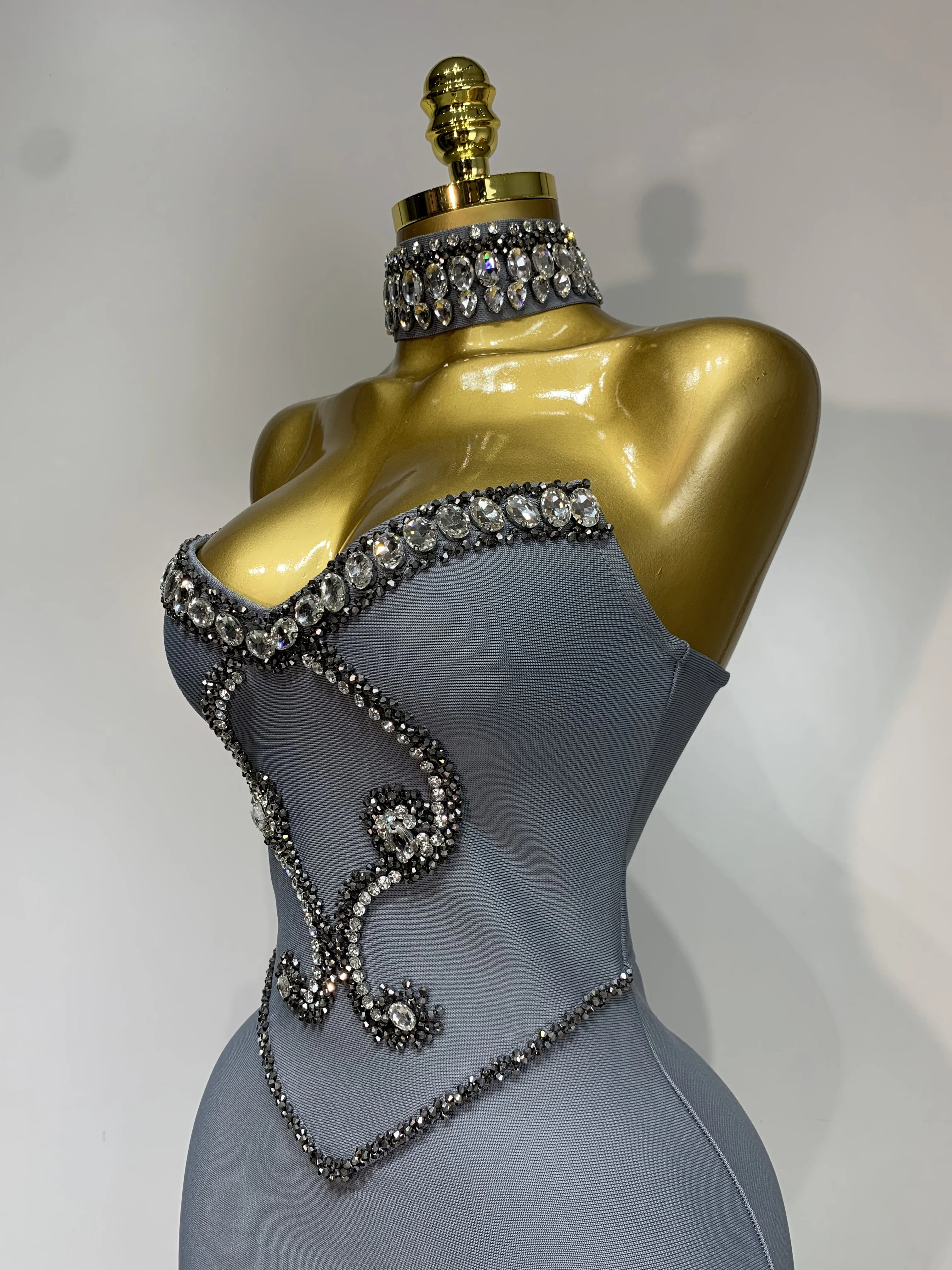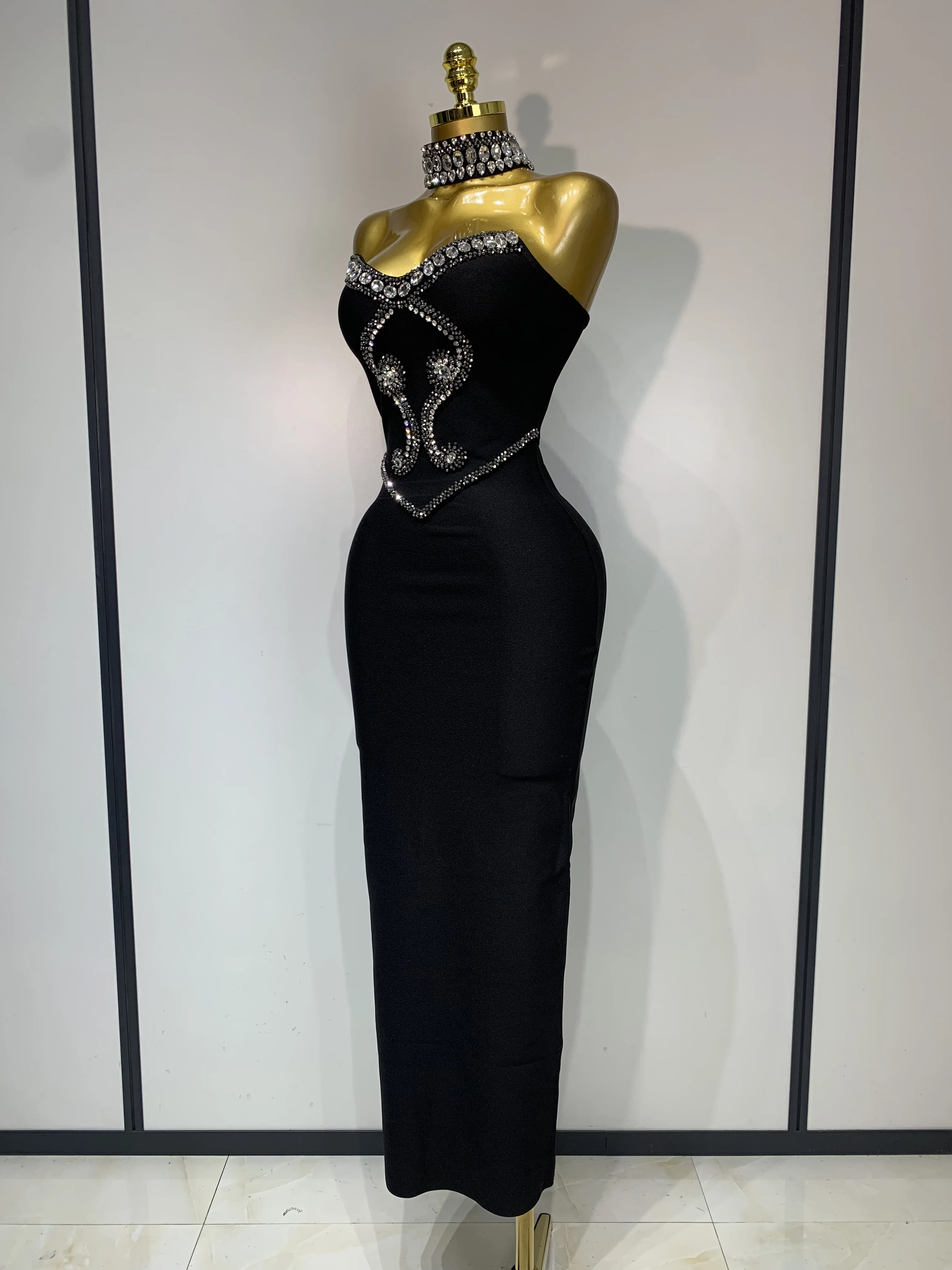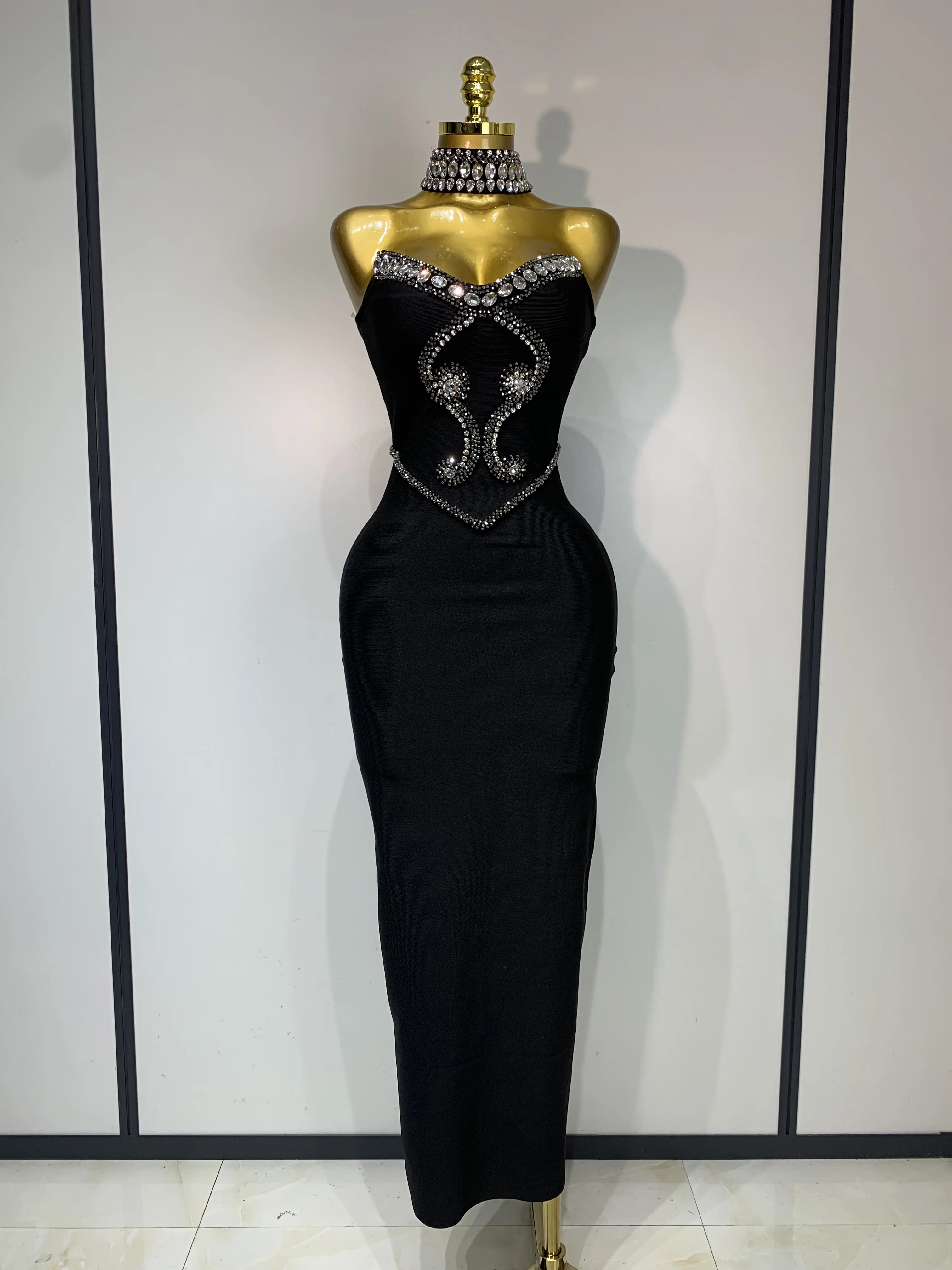 High Quality Strapless Beading With Necklace Bandage Dress Celebrity Elegant Evening Party Fancy Club Birthday Dresses