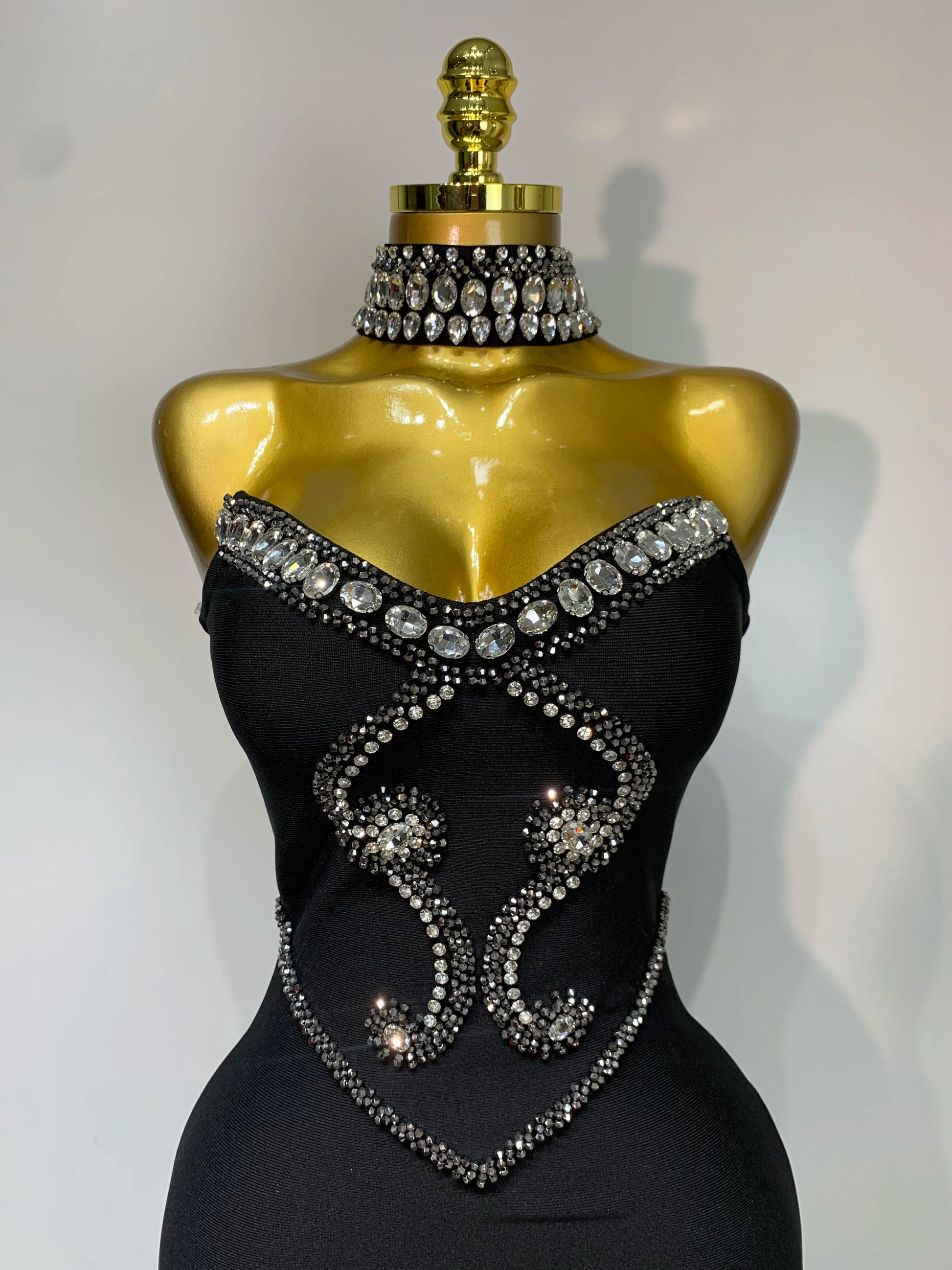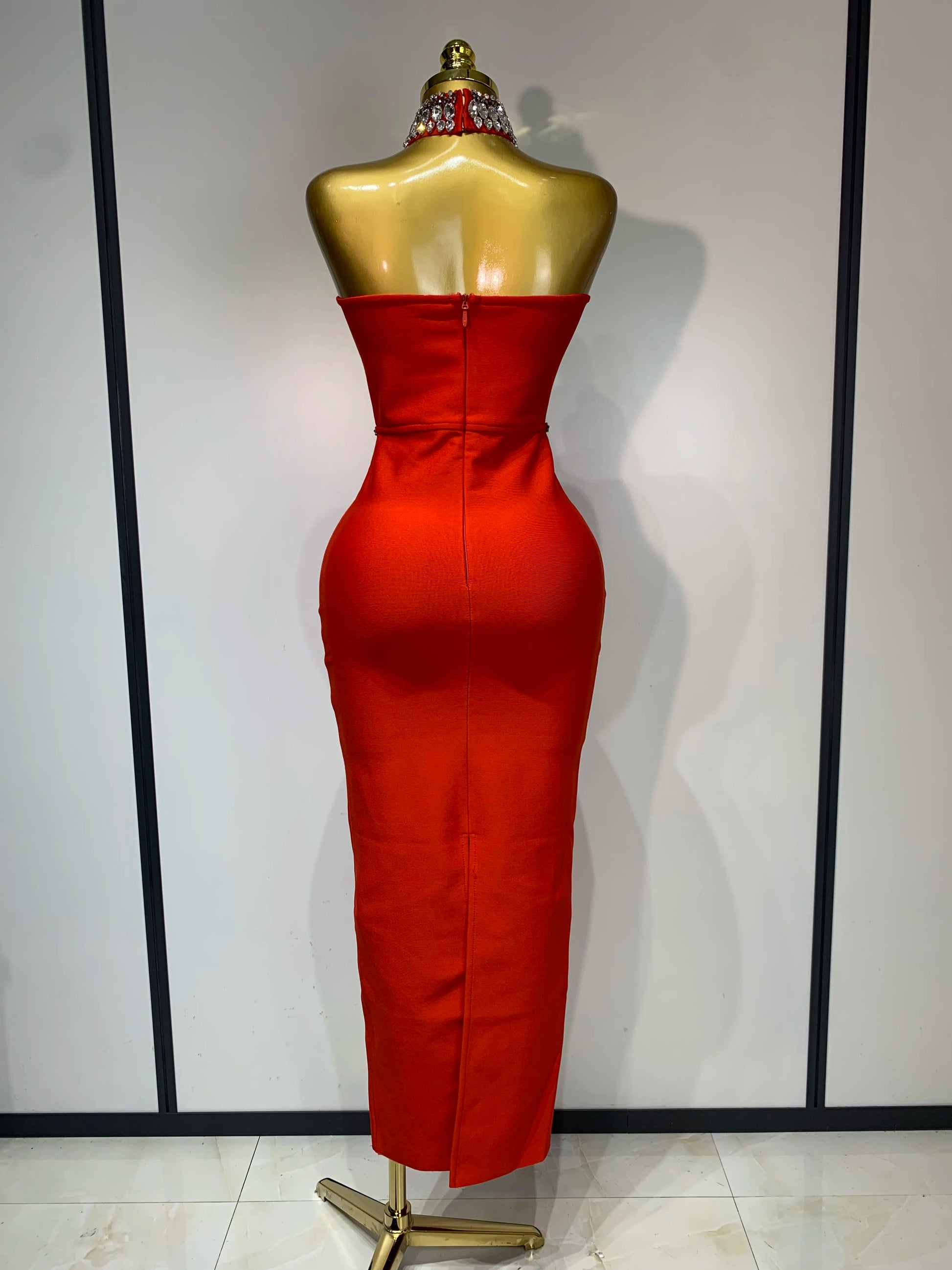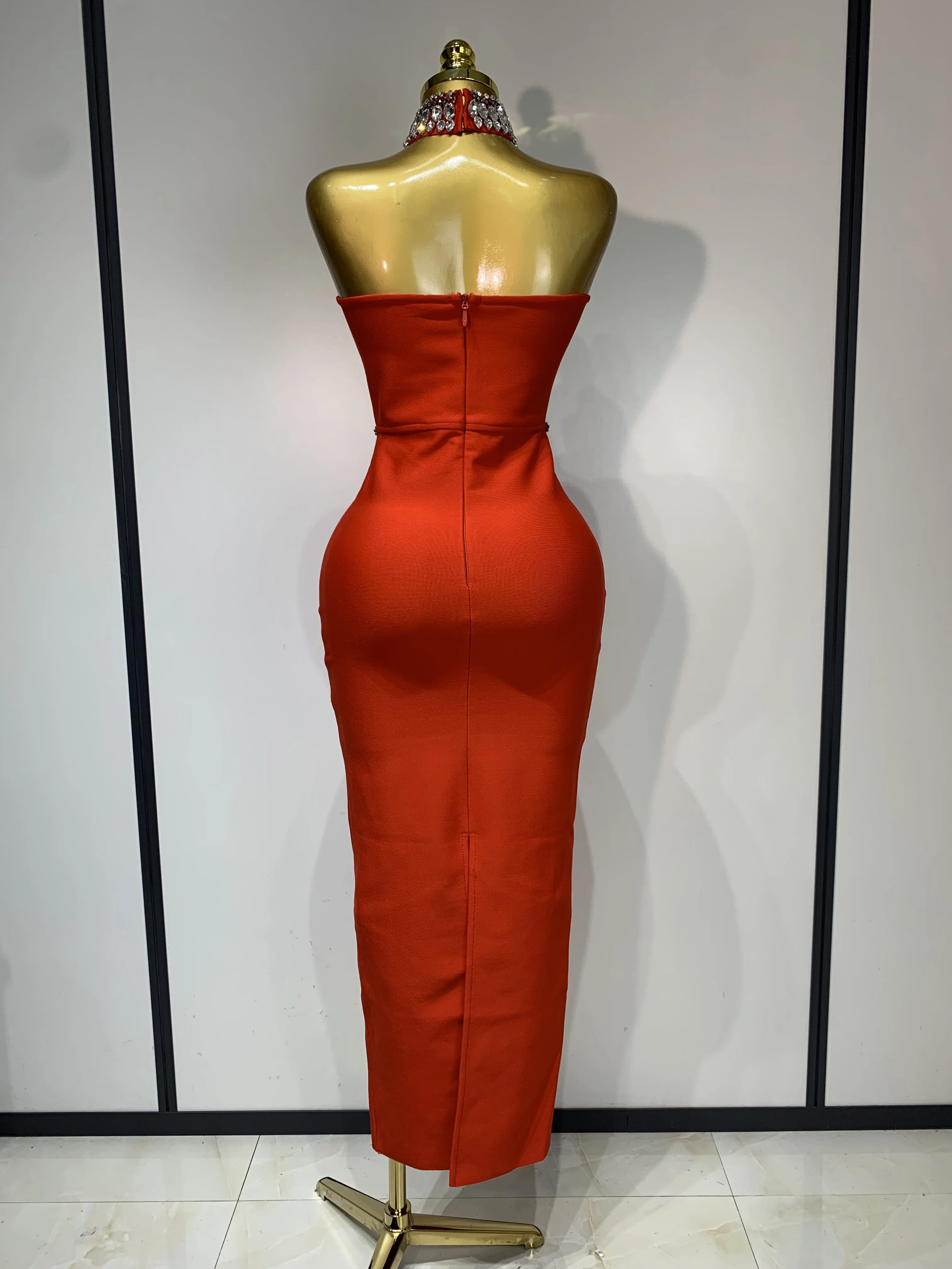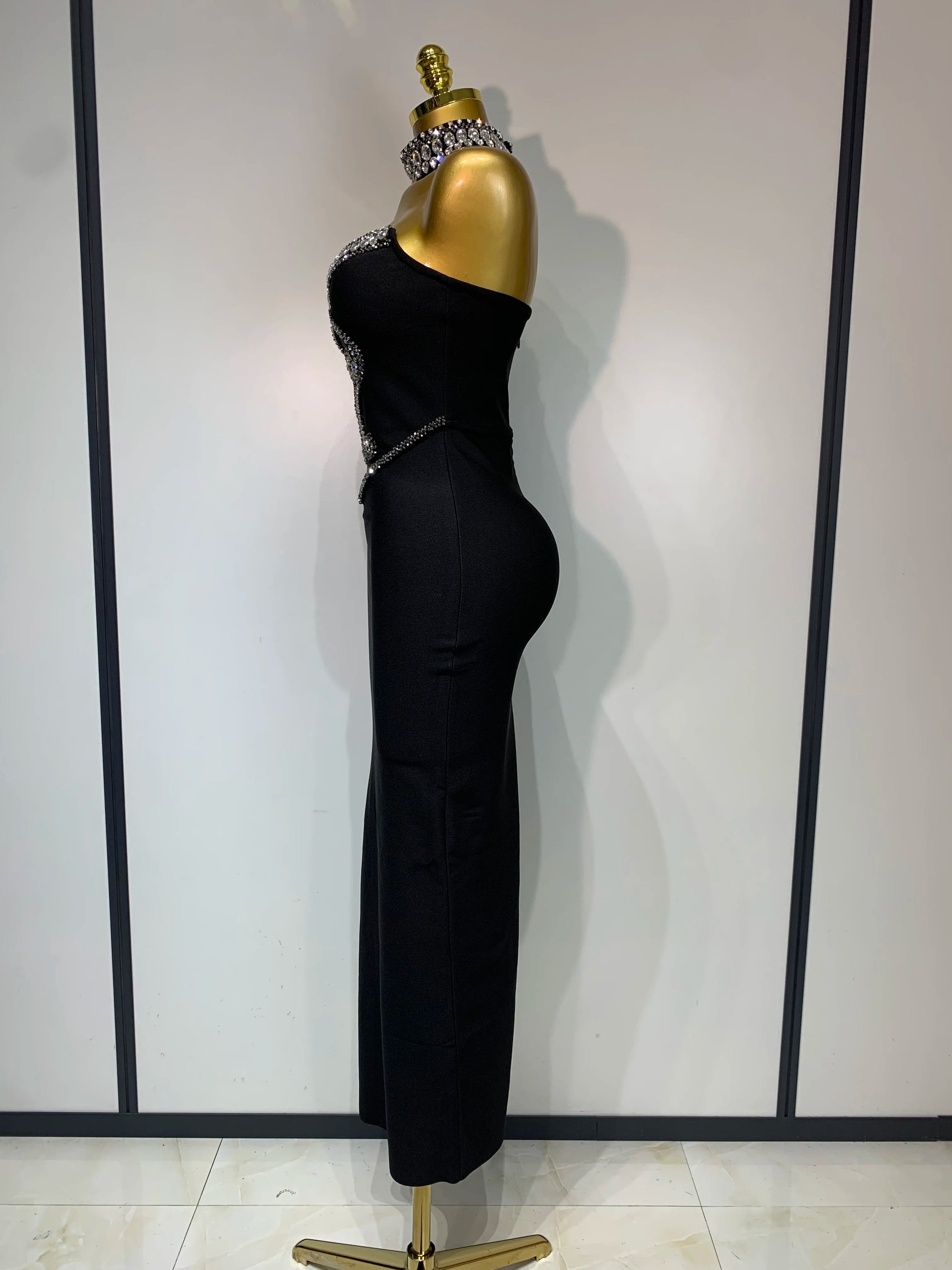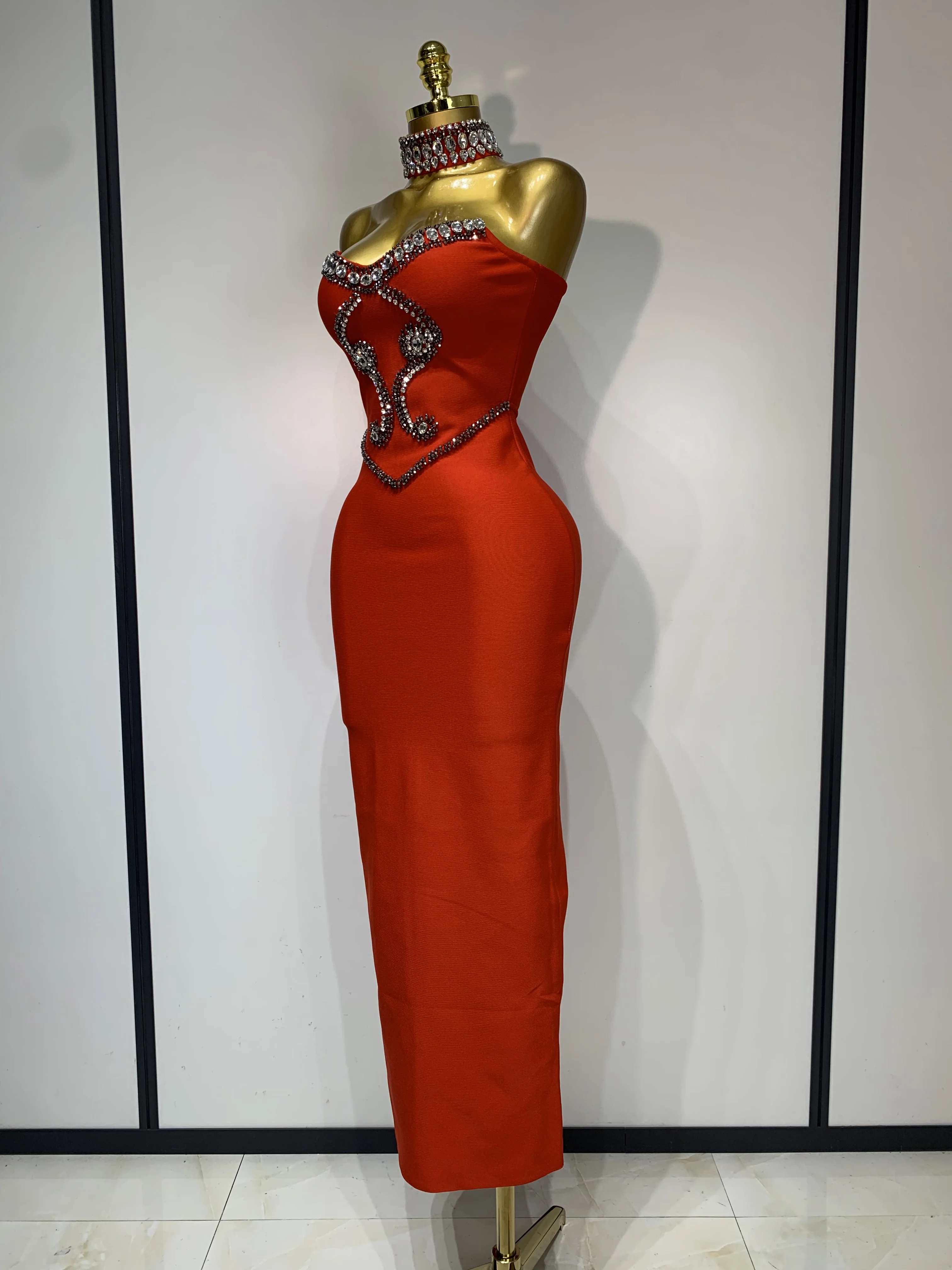 High Quality Strapless Beading With Necklace Bandage Dress Celebrity Elegant Evening Party Fancy Club Birthday Dresses