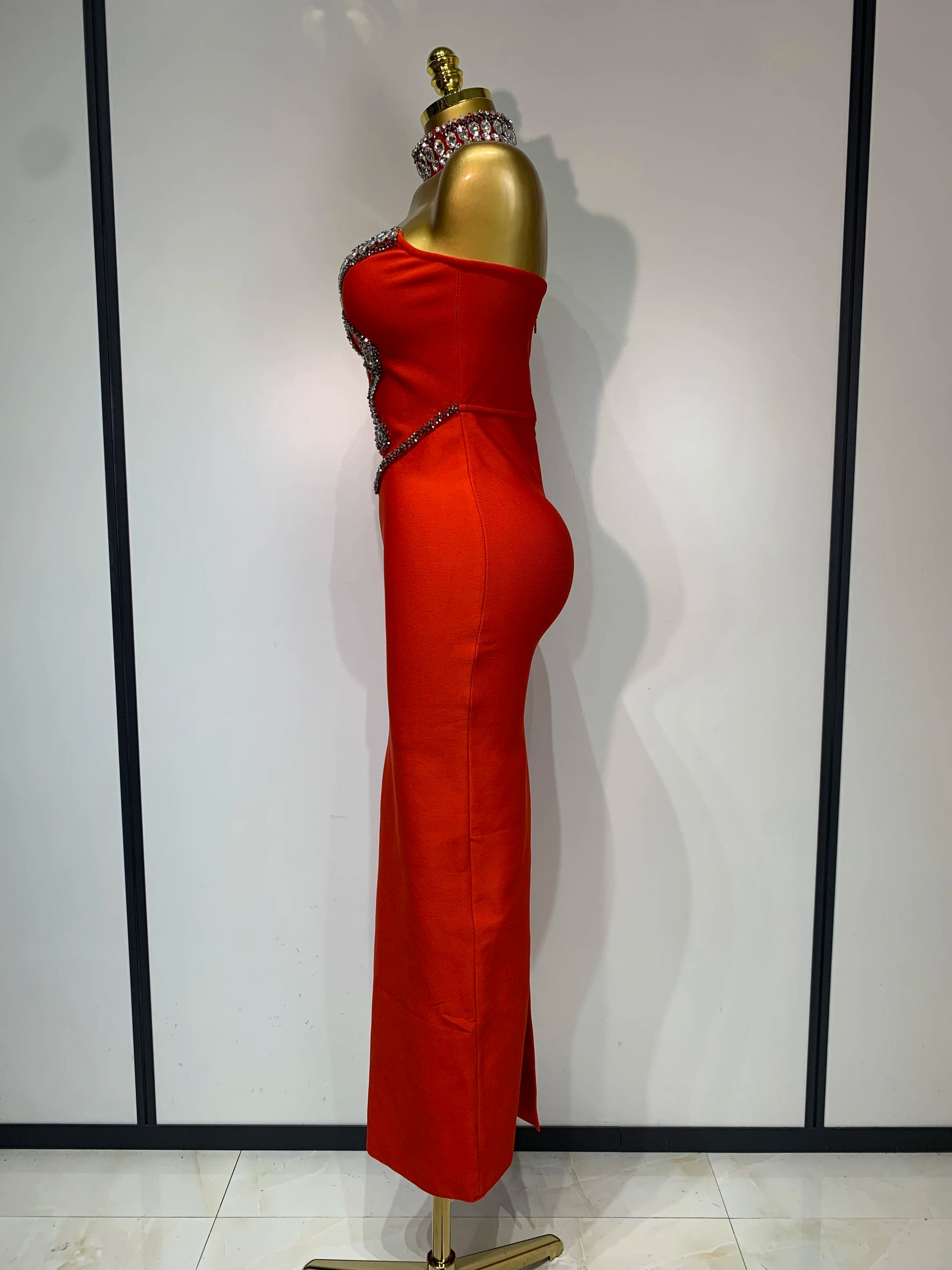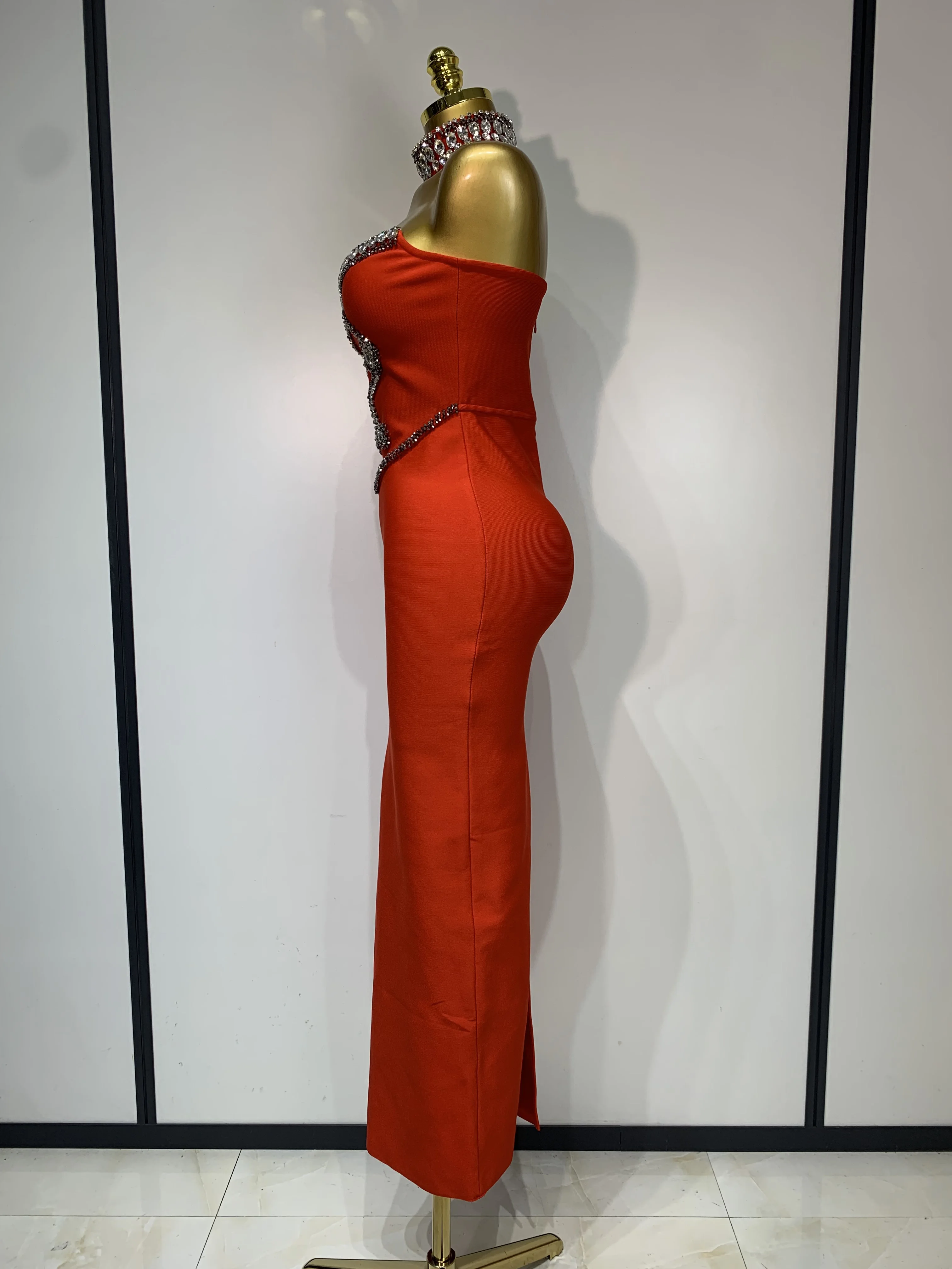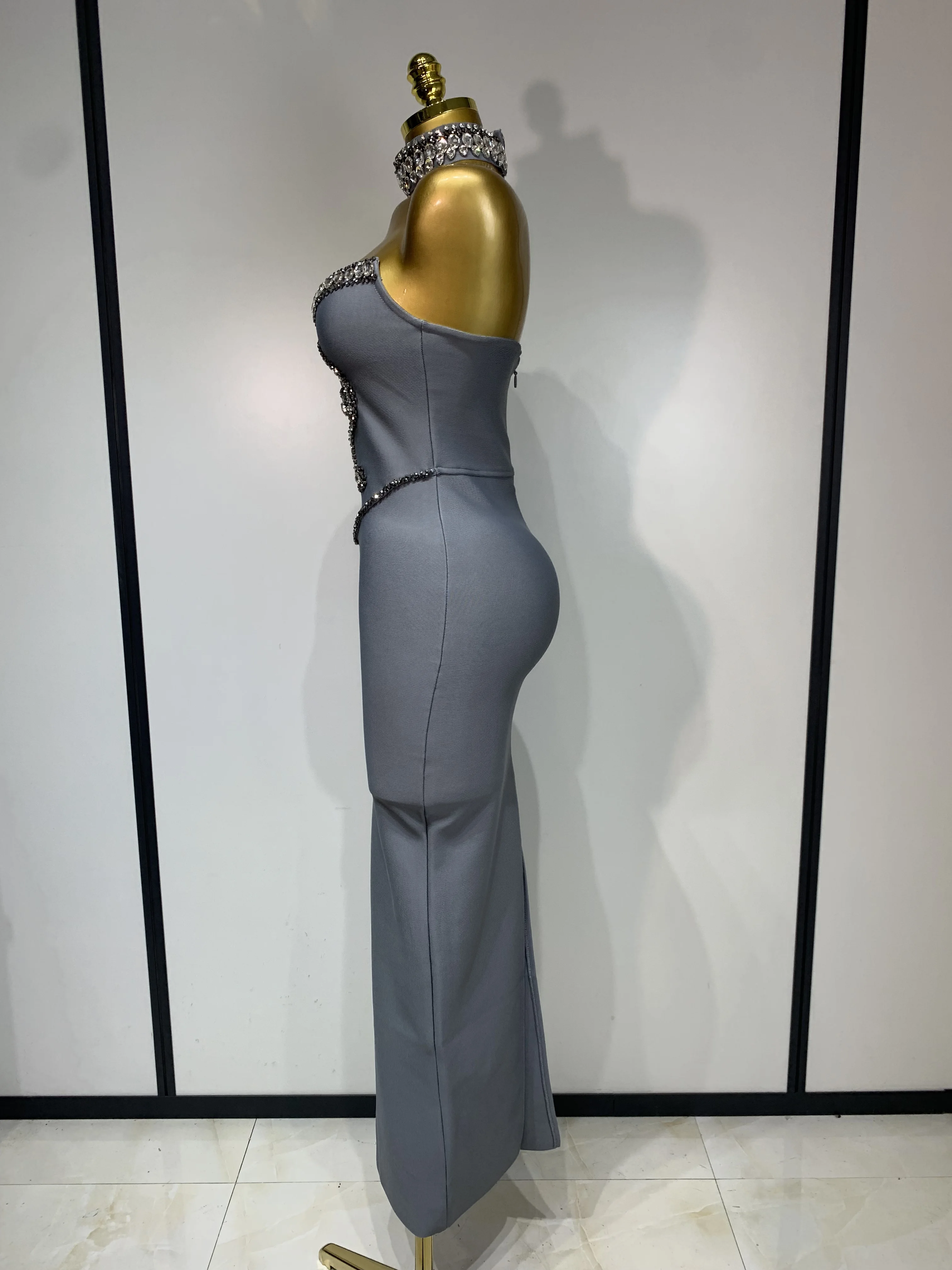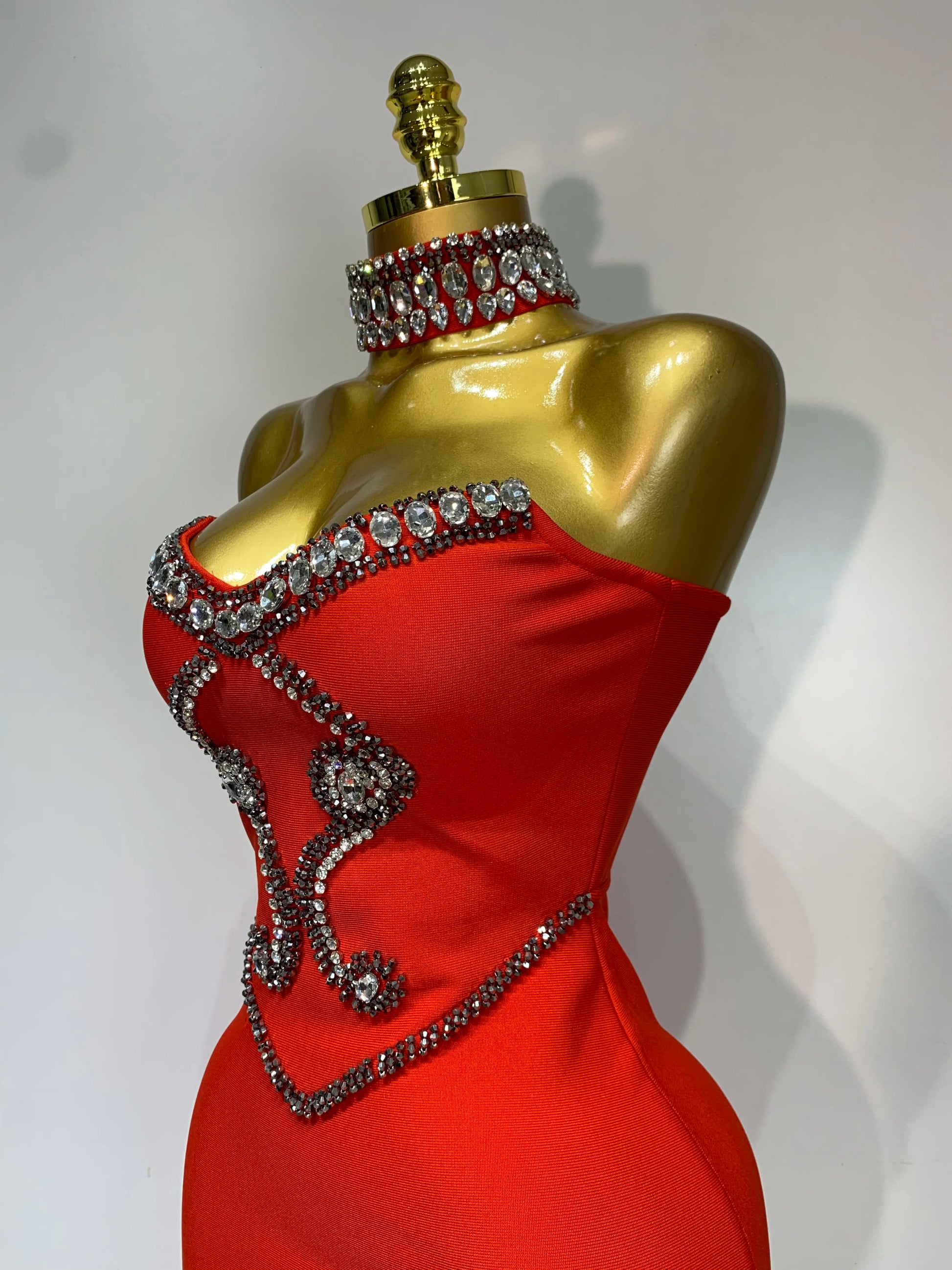 High Quality Strapless Beading With Necklace Bandage Dress Celebrity Elegant Evening Party Fancy Club Birthday Dresses