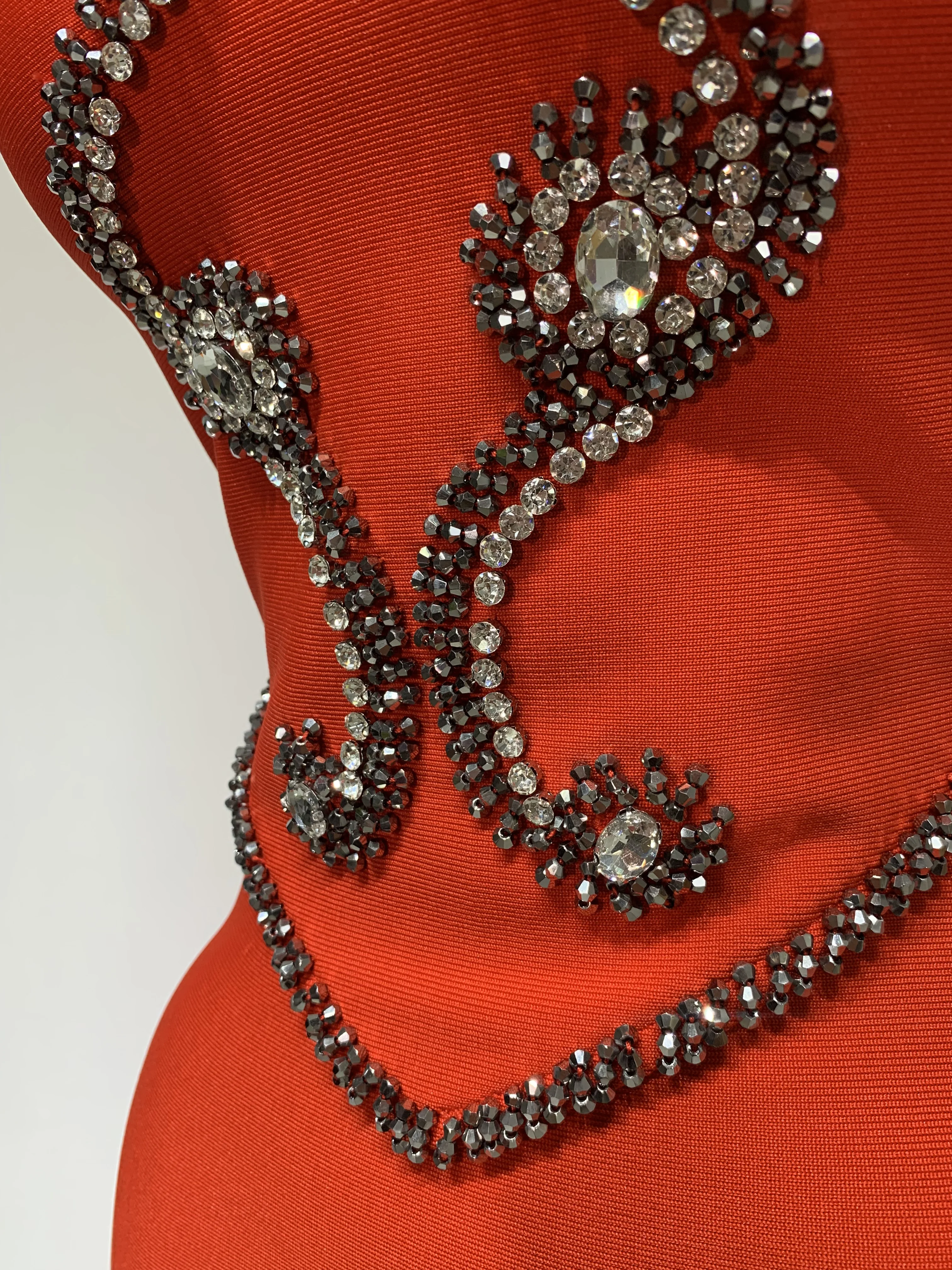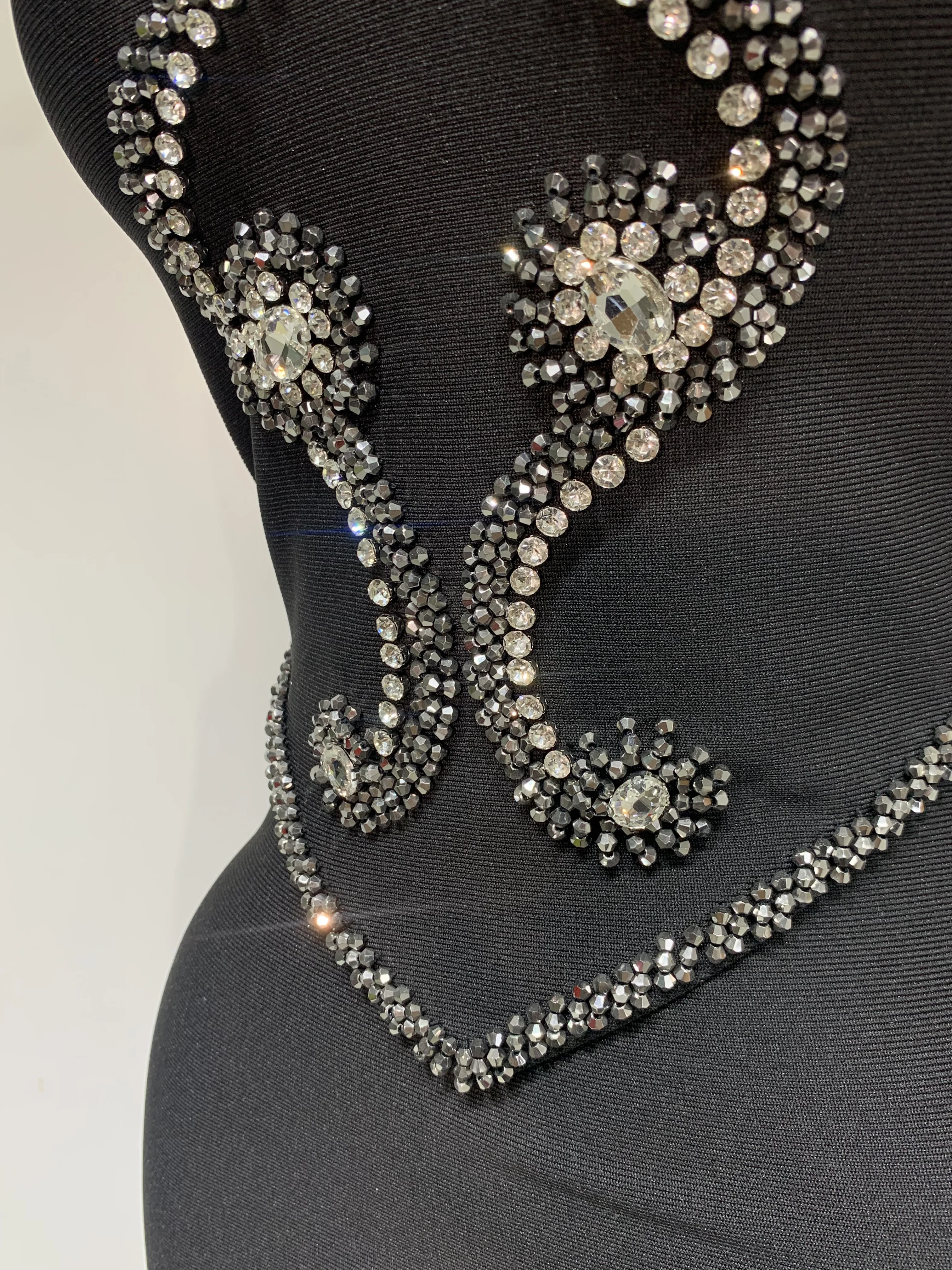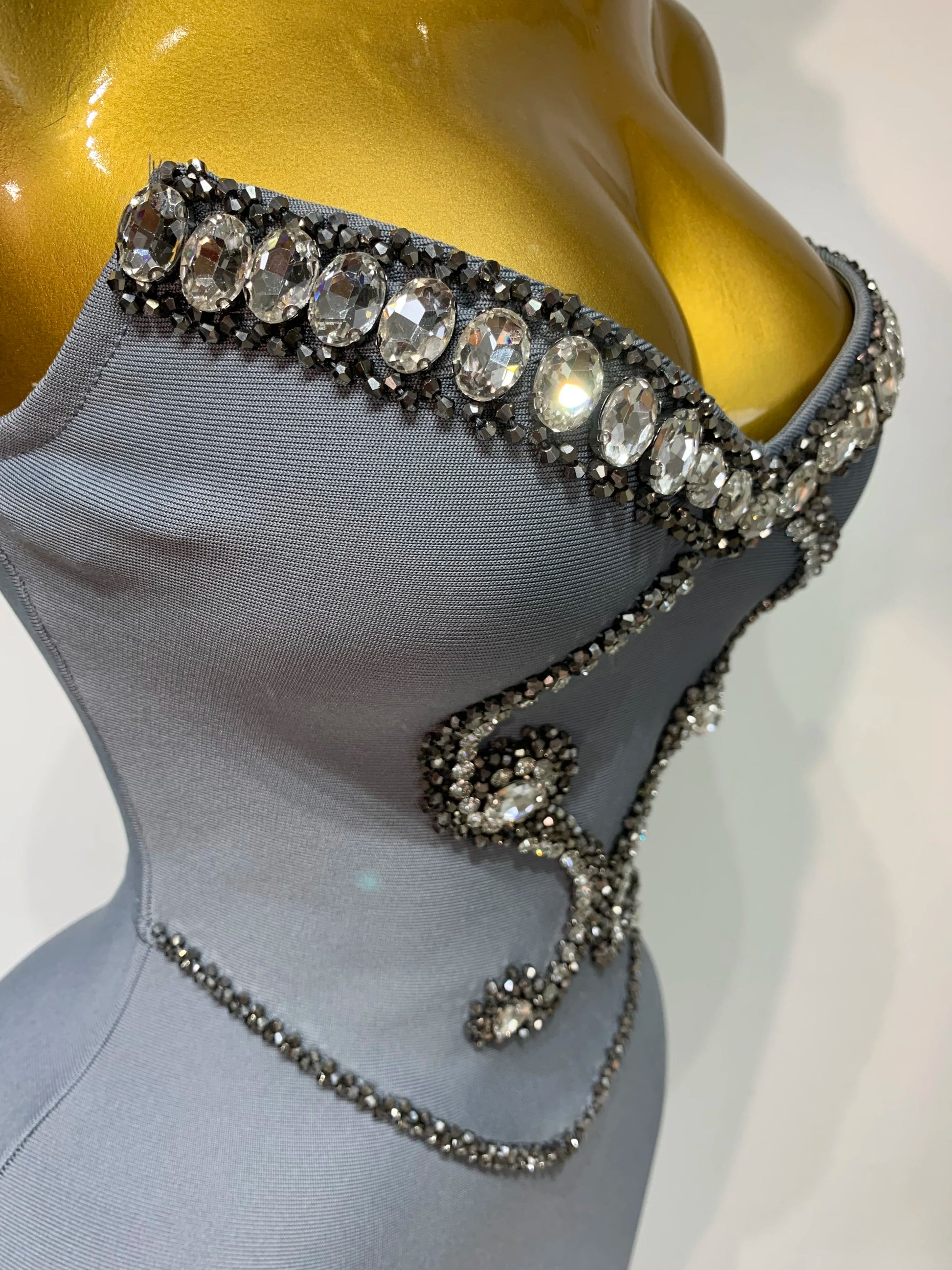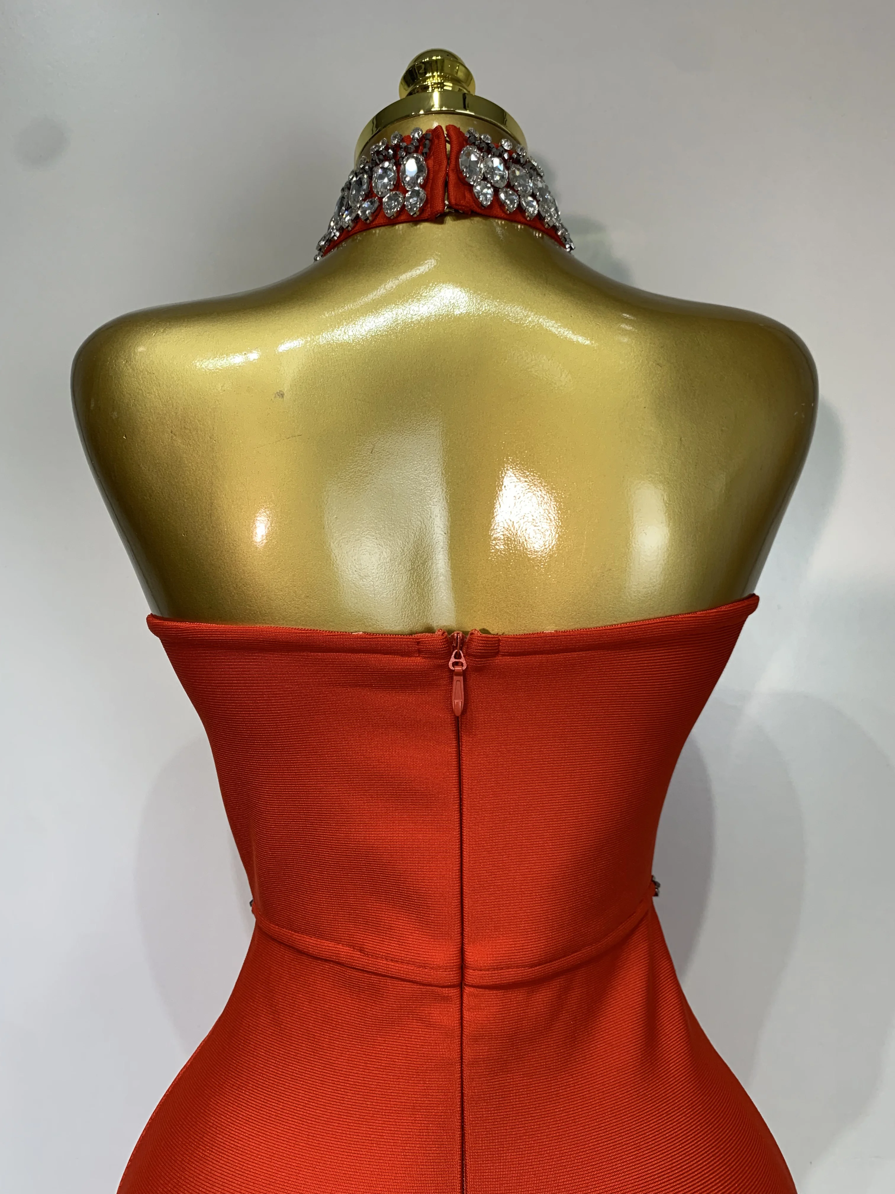High Quality Strapless Beading With Necklace Bandage Dress Celebrity Elegant Evening Party Fancy Club Birthday Dresses