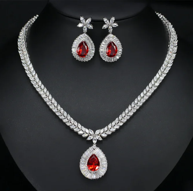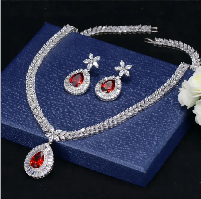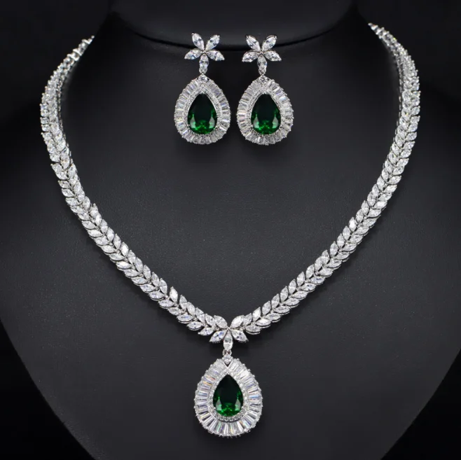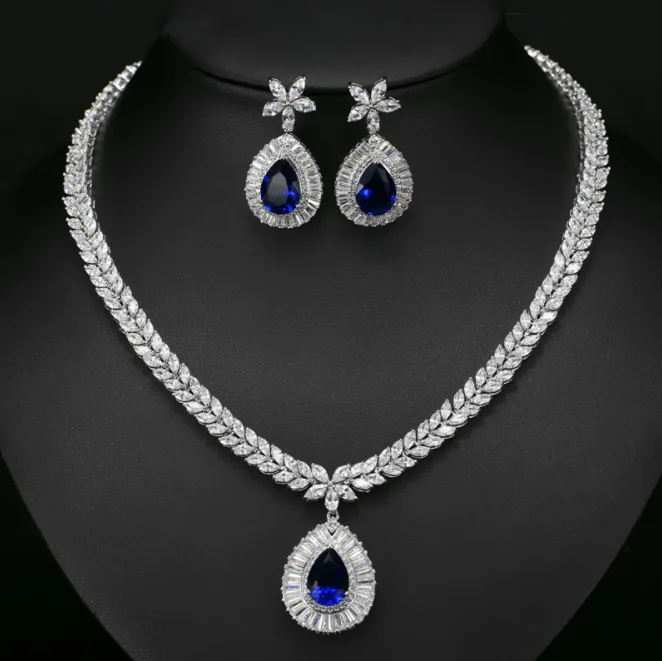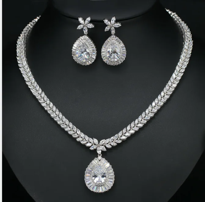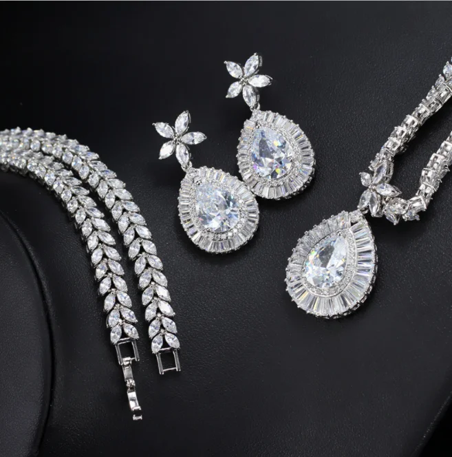 high quality stylish sliver plated zirconia bridal jewelry set for wedding women